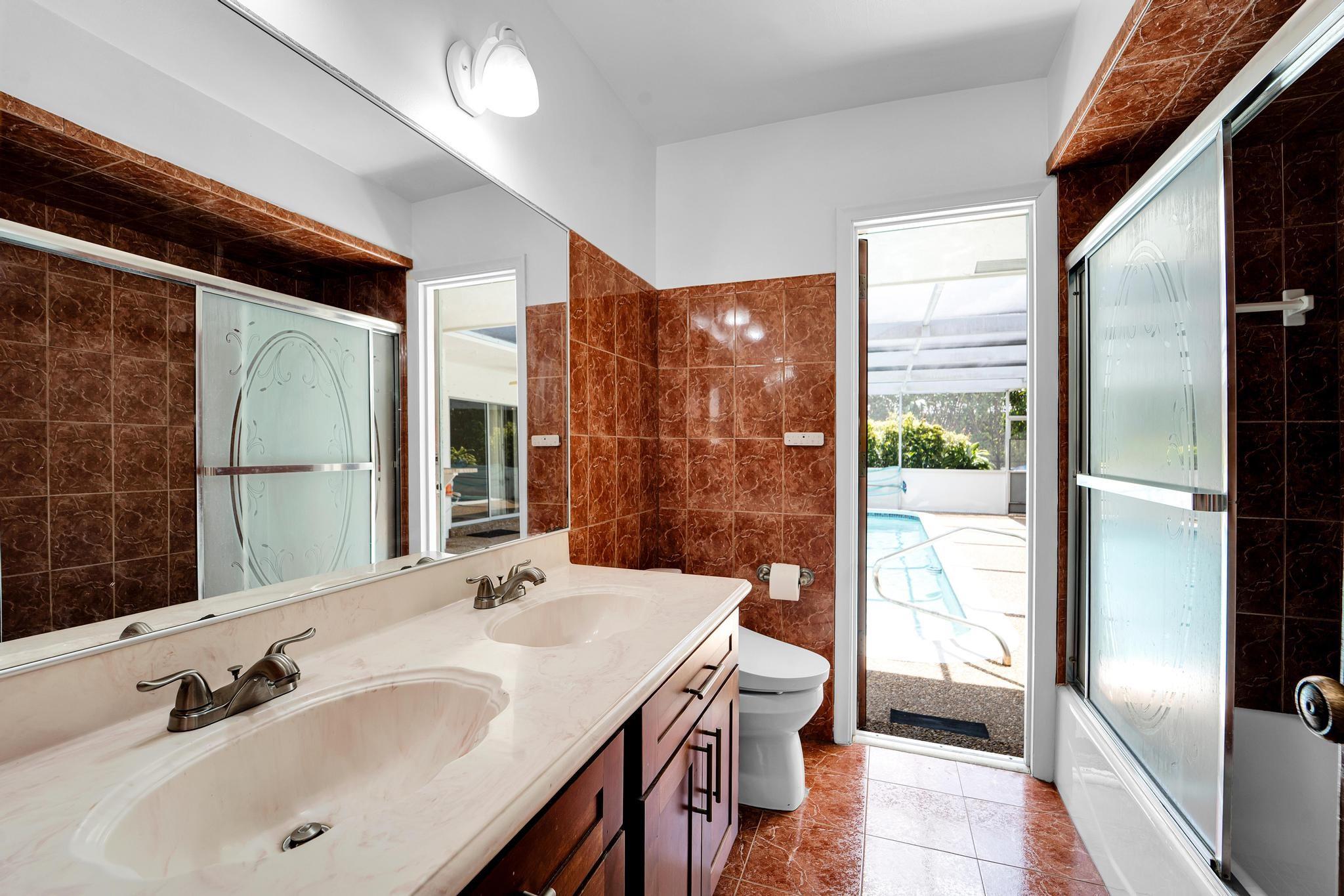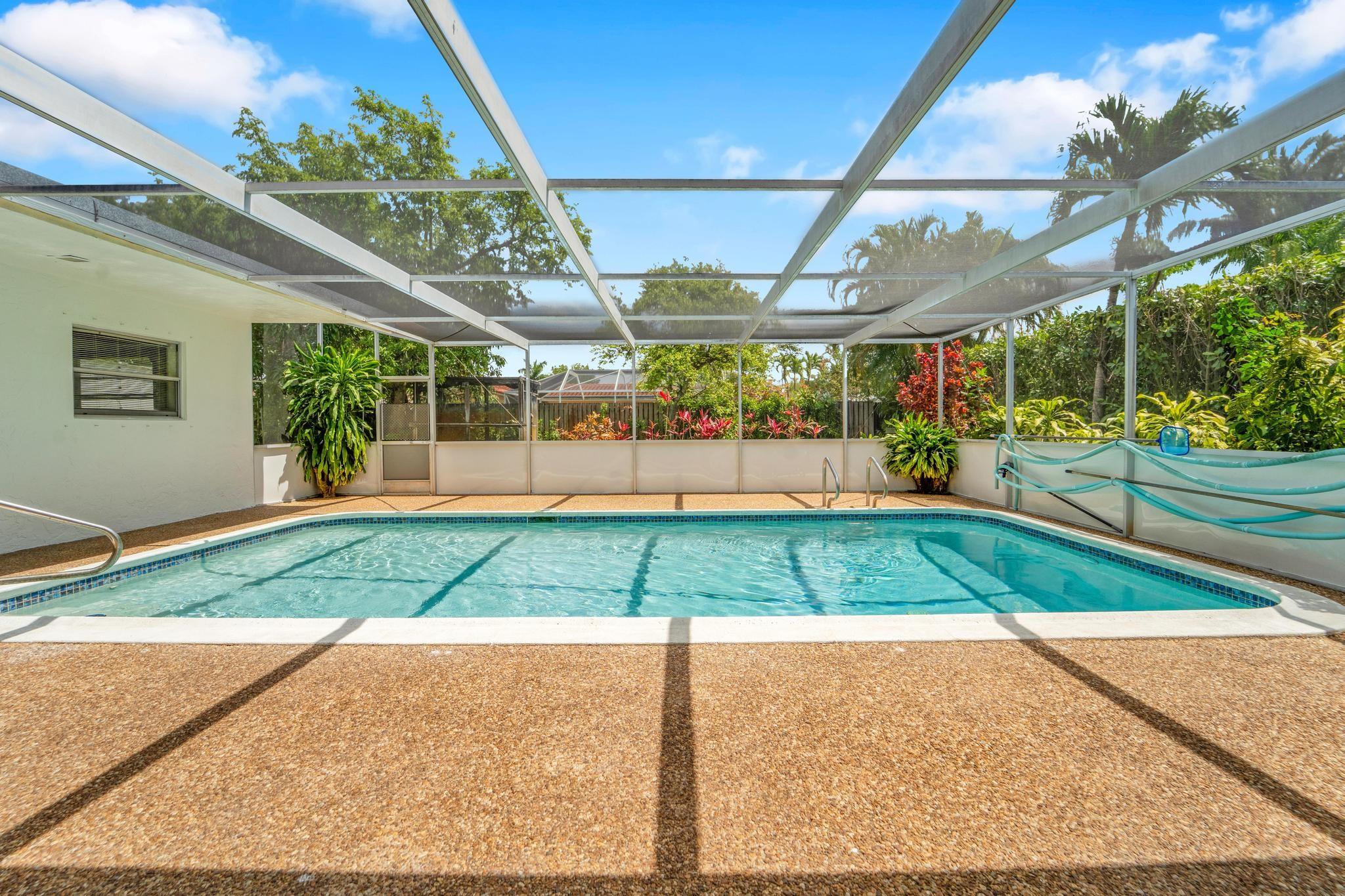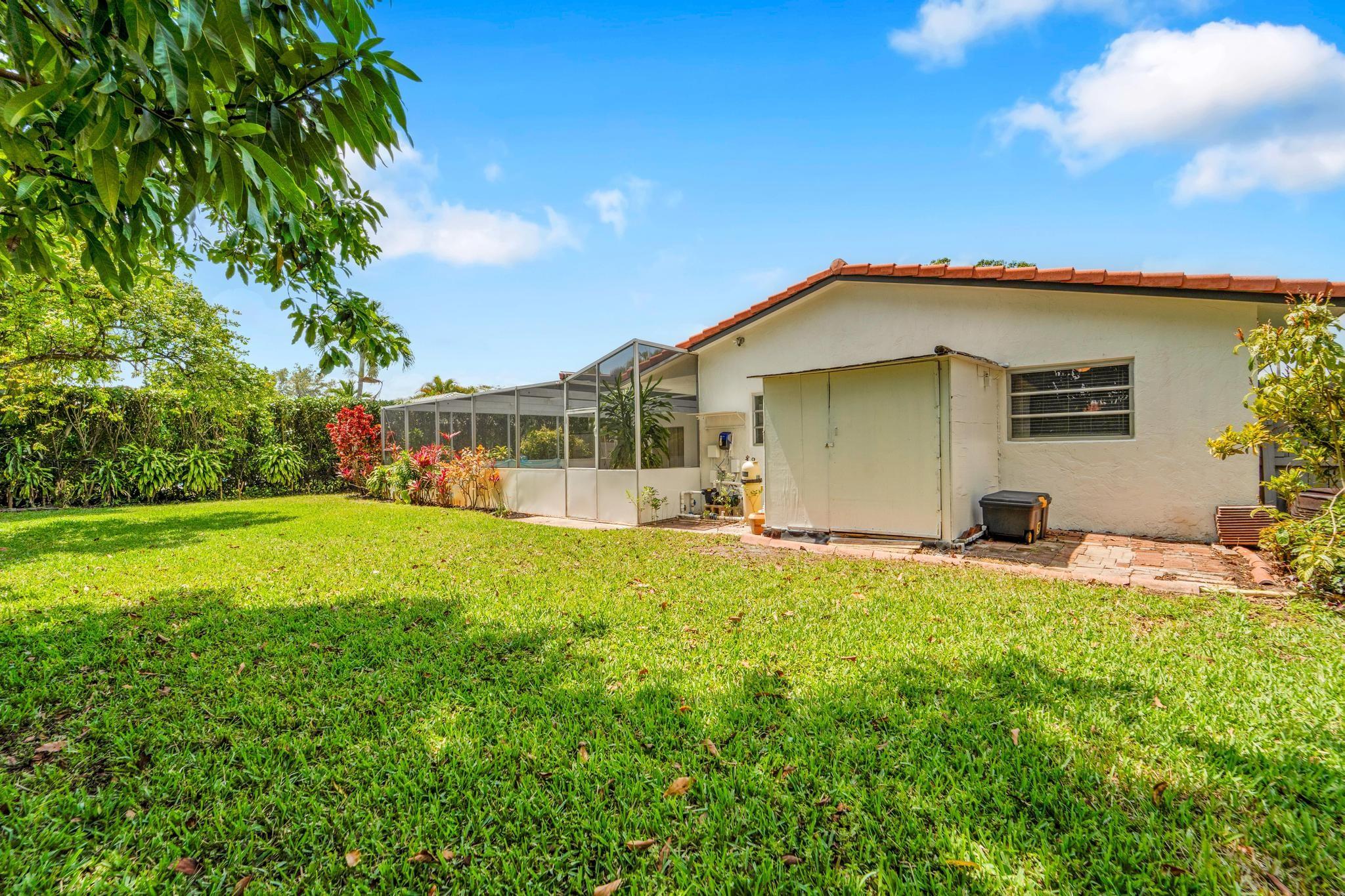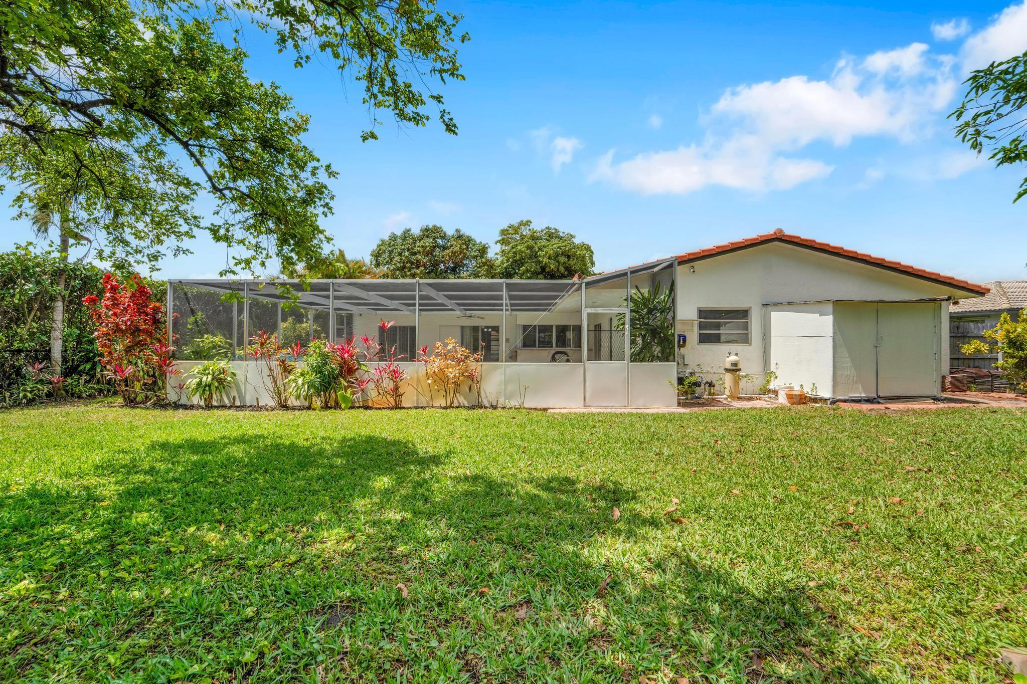 This well-built 20th century 4/2 ranch-style pool home in Ramblewood in Coral Springs is ready to move into. The interior and exterior were just painted. New landscaping was just added. The home offers desirable features such as a floorplan that wraps around a large, screen-enclosed cool deck and saltwater pool (30'x15'), cabana bathroom, spacious bedrooms, private homesite with mature fruit trees (avocado, mango, & star fruit), and a circular driveway. Great curb appeal. Covered entry way. Tile & laminate flooring throughout. Custom kitchen has real wood cabinetry, beveled edge granite countertops, SS appliances, undermount double sink, & more. Over 2,650 sq. ft. with an oversized garage. No HOA. Walk to schools and parks. Good location close to everything. Too many details to write here