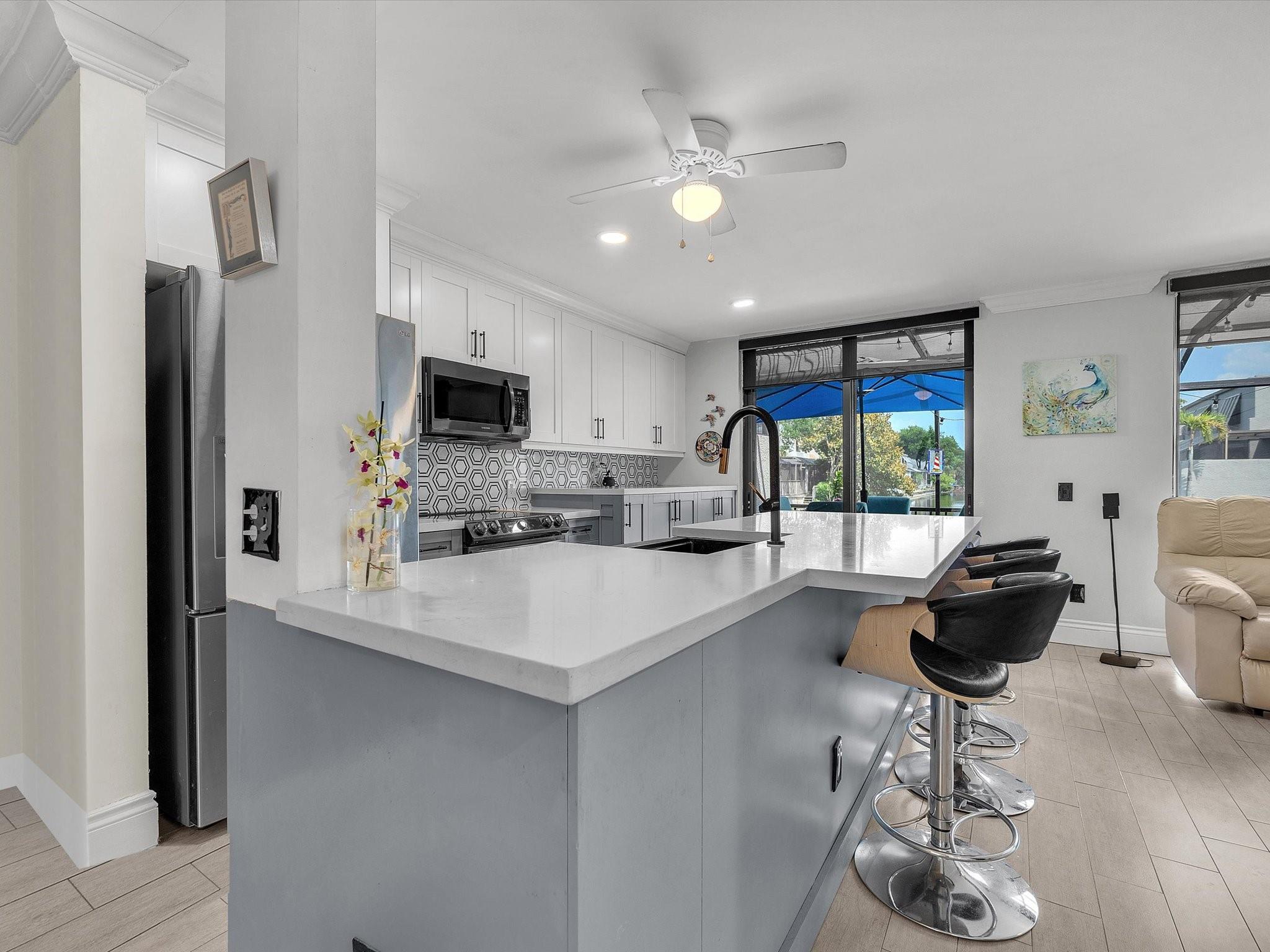 Waterfront Paradise Awaits! Discover this stunning 3-bed, 2-bath spacious sanctuary offering direct lake access perfect for kayaking or dinghy adventures right from your backyard! Wake up each day to breathtaking water views from kitchen/ family room. Step inside to a bright, open-concept layout that effortlessly blends style and comfort. The chef’s kitchen is a showstopper, featuring brand-new modern appliances, custom cabinetry, and quartz perfect for entertaining everyday living. The spacious primary suite is your personal retreat generous closet space. Two additional bedrooms family or guest . *Featuring Crown molding*Custom window treatments. Two parking space in front* Located minutes from Pembroke Pines Mall, top-rated restaurants, shops, schools this home truly has it all!