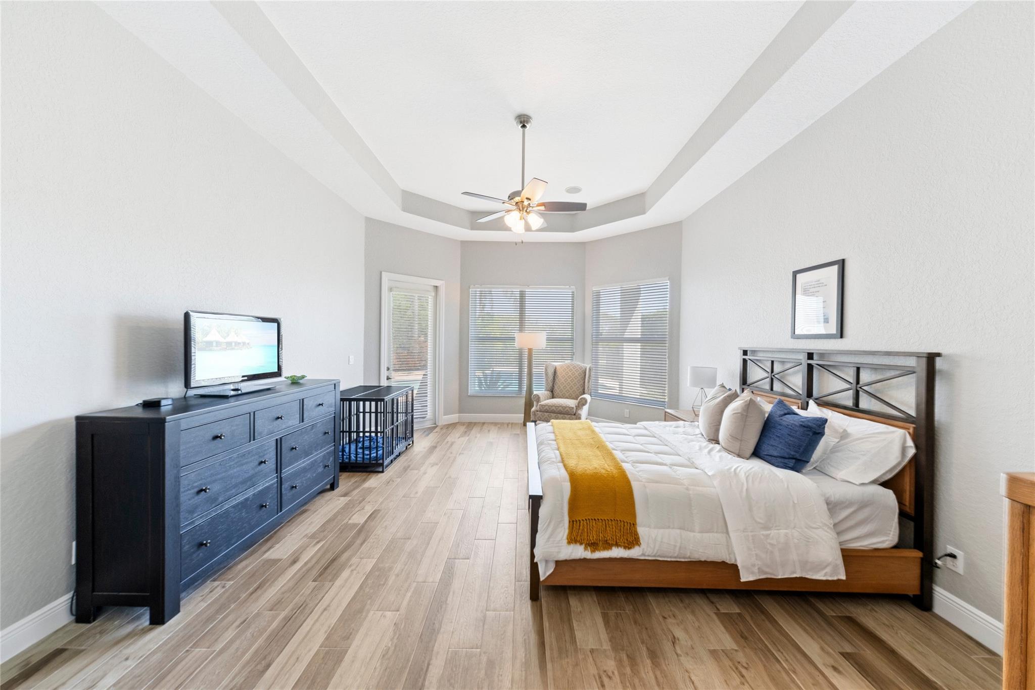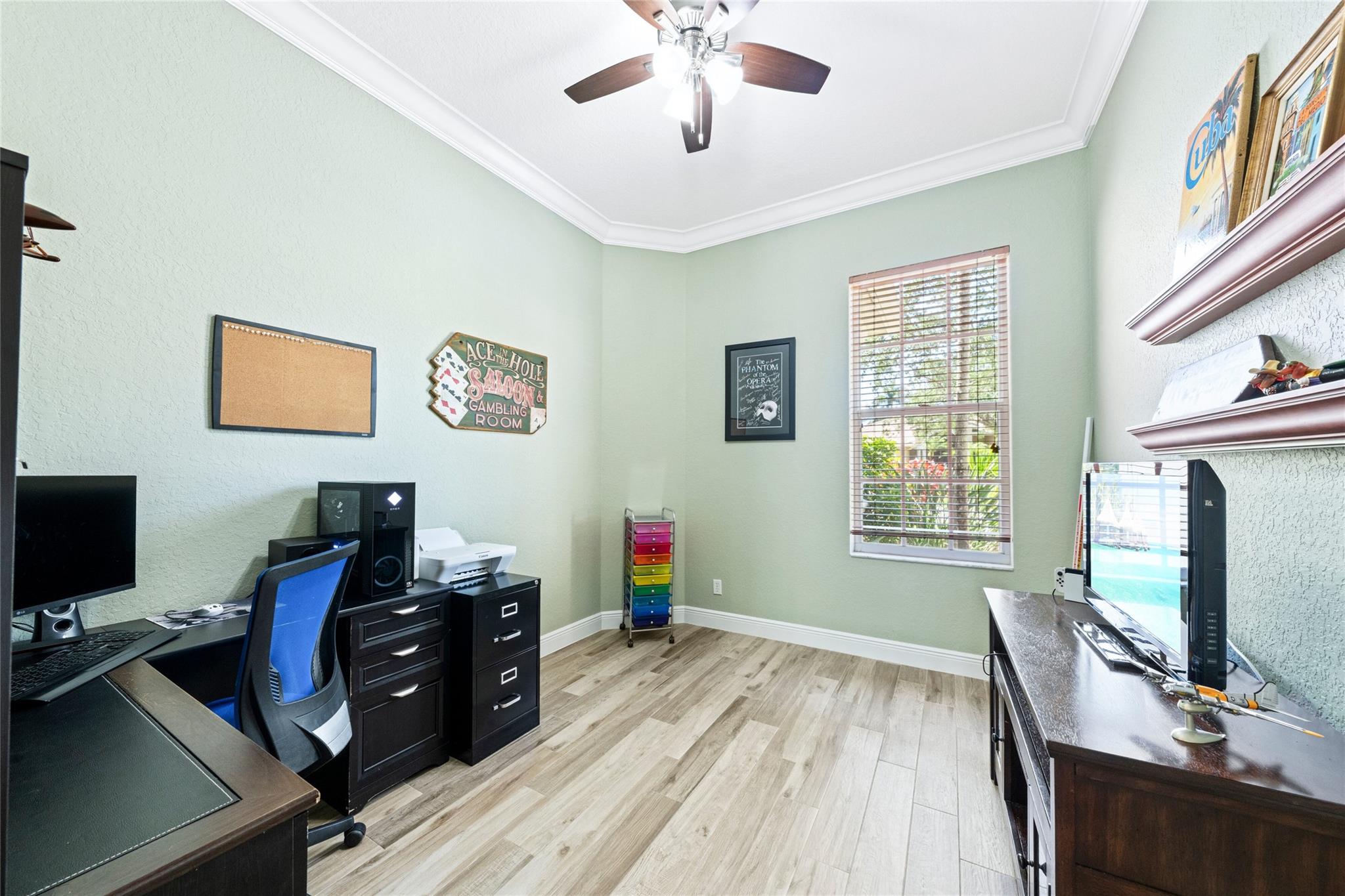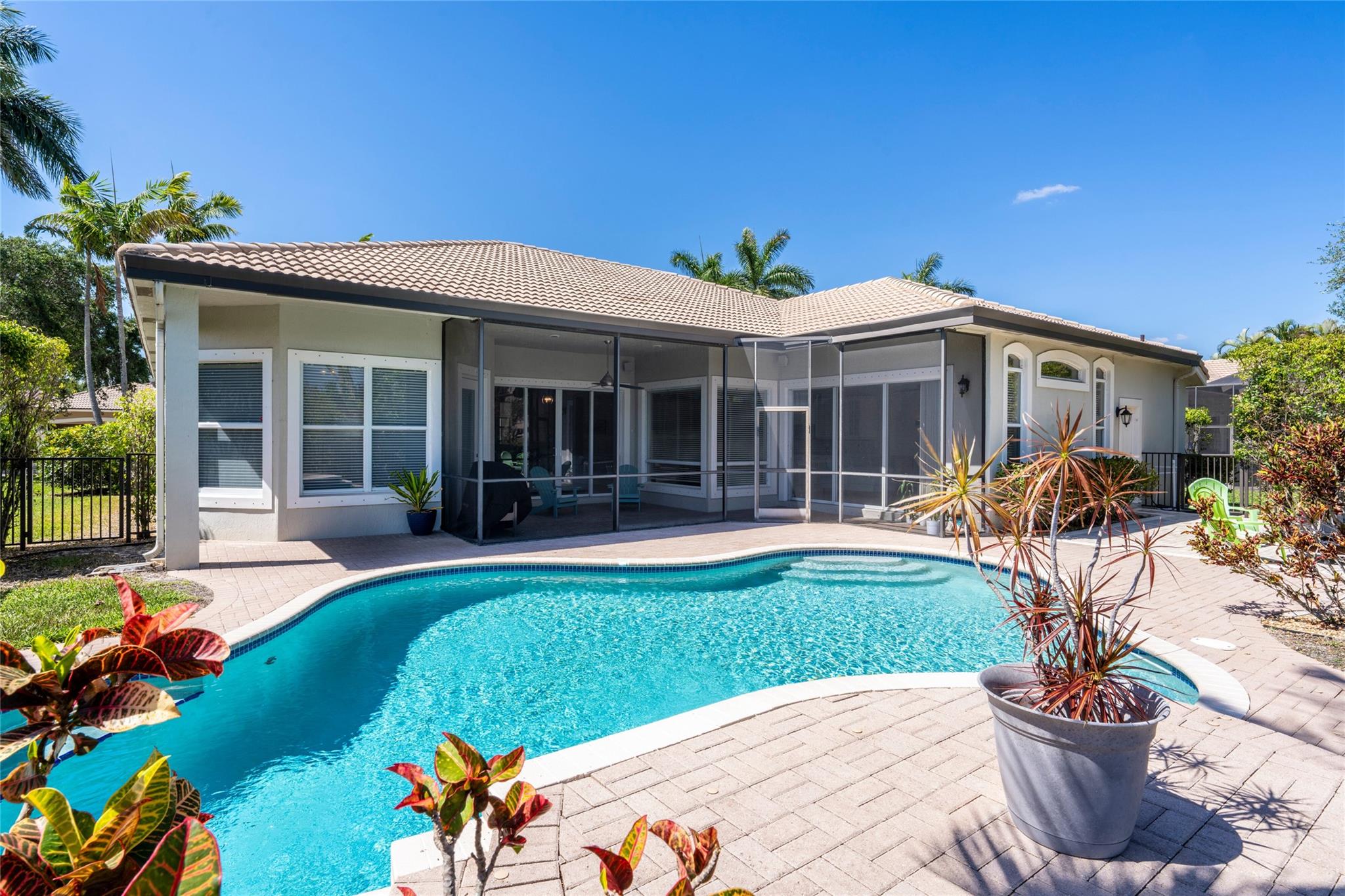 The home you’ve been waiting for in Fox Ridge is here! Situated on a waterfront lot, this home offers the desirable triple split floor plan with 5 bedrooms & 4 full bathrooms. Features include volume ceilings, crown molding, neutral tile in living areas, wood-look tile in bedrooms/baths, an open kitchen w/warm white cabinets, tumblestone backsplash, granite countertops & newer appliances (refrigerator/dishwasher), spacious laundry room w/new washer, dryer, sink, marble countertops, and ample storage. Additional upgrades: newer A/C units, new ceiling fans throughout, LED recessed lighting, upgraded copper piping, new smoke/fire detectors, lush landscaping and a screen-enclosed lanai that opens to your private pool and patio with tranquil water views. All A-rated schools & low HOA fees!