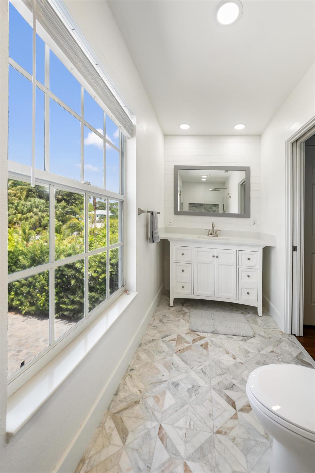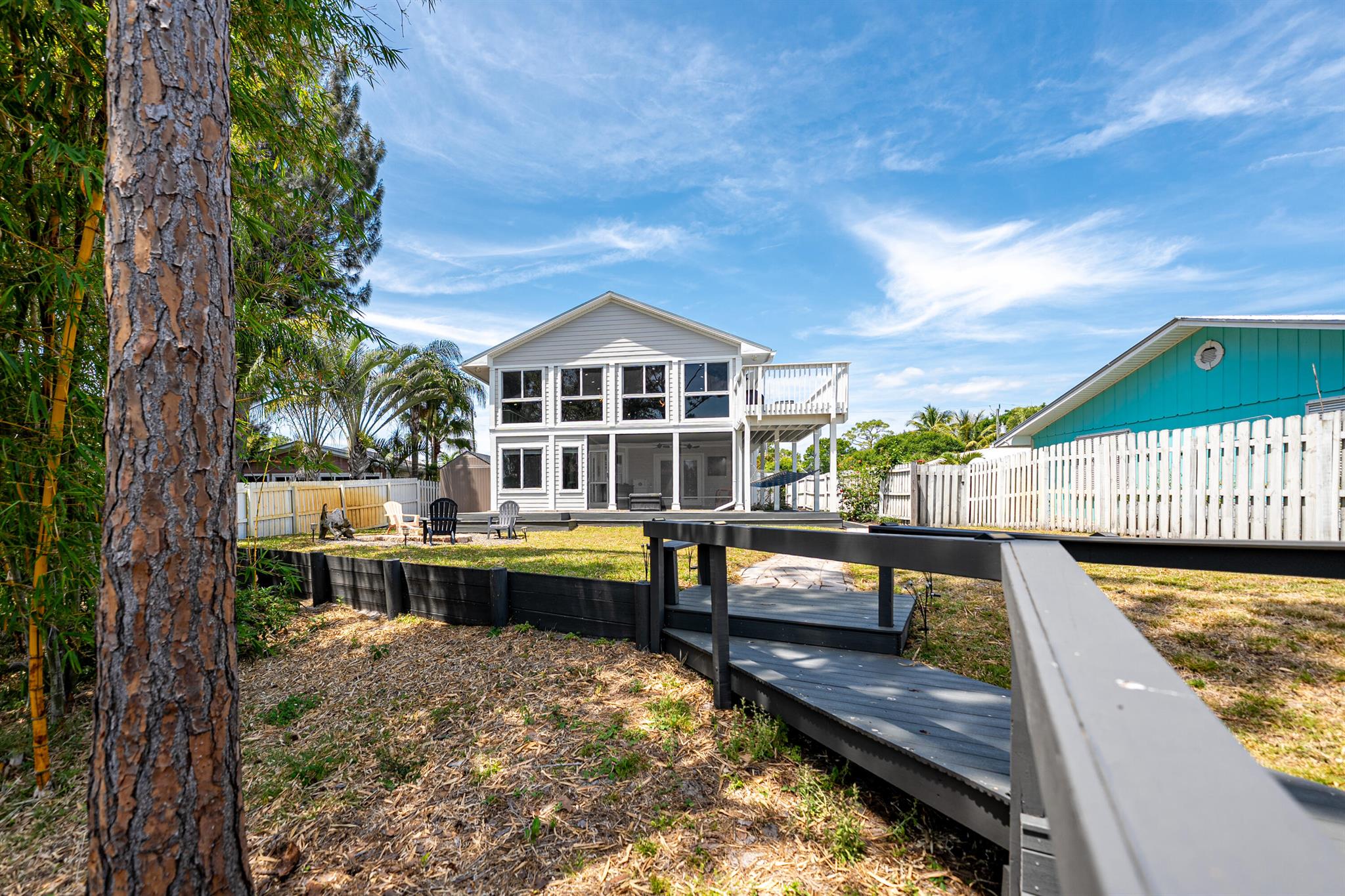 WATERFRONT, OCEAN ACCESS! Discover this gorgeous four-bedroom, three-bath Key West style home in Rustic Hills! Wide open floor plan w/over 2,600 SF of living area! Beautiful waterfront property with 74 feet of frontage on Bessey Creek, and updated 34' private dock with ocean access! Entertainer's dream home! Completely remodeled and updated with new quartz kitchen, custom cabinets, backsplash, stainless hood & wall oven, 6 burner gas stove, sub-zero fridge and more! Wide open upstairs living area with beautiful canal, dock view and French doors to deck! Master bedroom with ensuite bath, guest bed & bath upstairs with two additional bedrooms, bath and huge living area with wet bar downstairs! Great for in-laws/teens! NEWER METAL ROOF and AC SYSTEM!