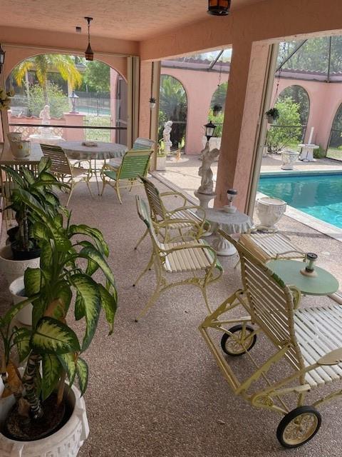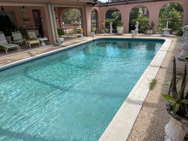 Easy show on Supra lockbox! New Barrel Tile roof in 2023! Ready to move in home. Owner will sell furniture. Wide open plan from kitchen and kitchen seating area to the swimming pool. Separate formal dining room, two and a half baths. Large two car garage and separate laundry room. Quiet neighborhood.