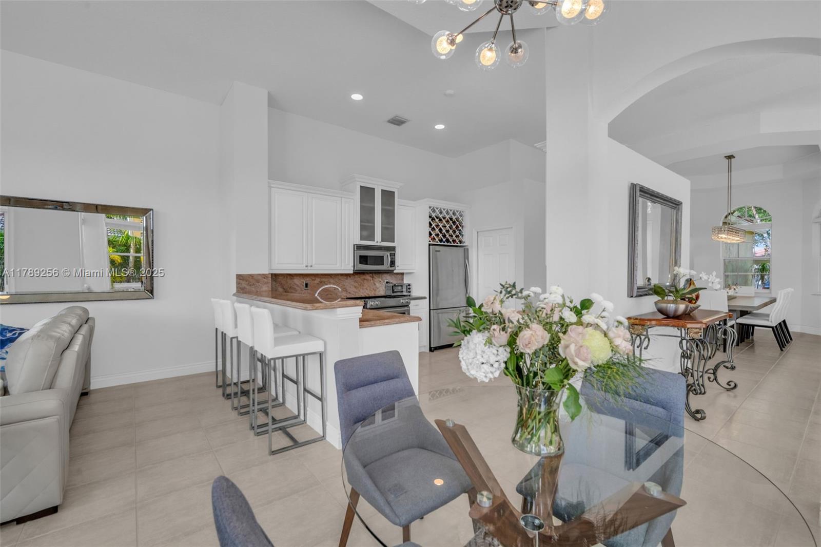Waterfront Beauty in The Ridges of Weston, PRIME LAYOUT. Welcome to this stunning 5 bed, 3 bath one-story home in the gated community of The Ridges. Featuring a triple-split floor plan, this layout offers privacy, functionality & flow. Take in the soothing pool & lake views, a truly peaceful welcome. Soaring ceilings & natural light fill the living spaces, creating a warm & airy feel. The 5th bedroom doubles as an office with custom bookcases, while the elegant living & dining room are perfect for hosting. Two bedrooms share a Jack/Jill bath, & the cabana bath serves the guest room or in-law suite. The spacious primary suite offers a retreat of its own with a generous bath & two walk-in closets. Enjoy the resort-style backyard, heated pool, A+ schools & all the amenities of The Ridges.