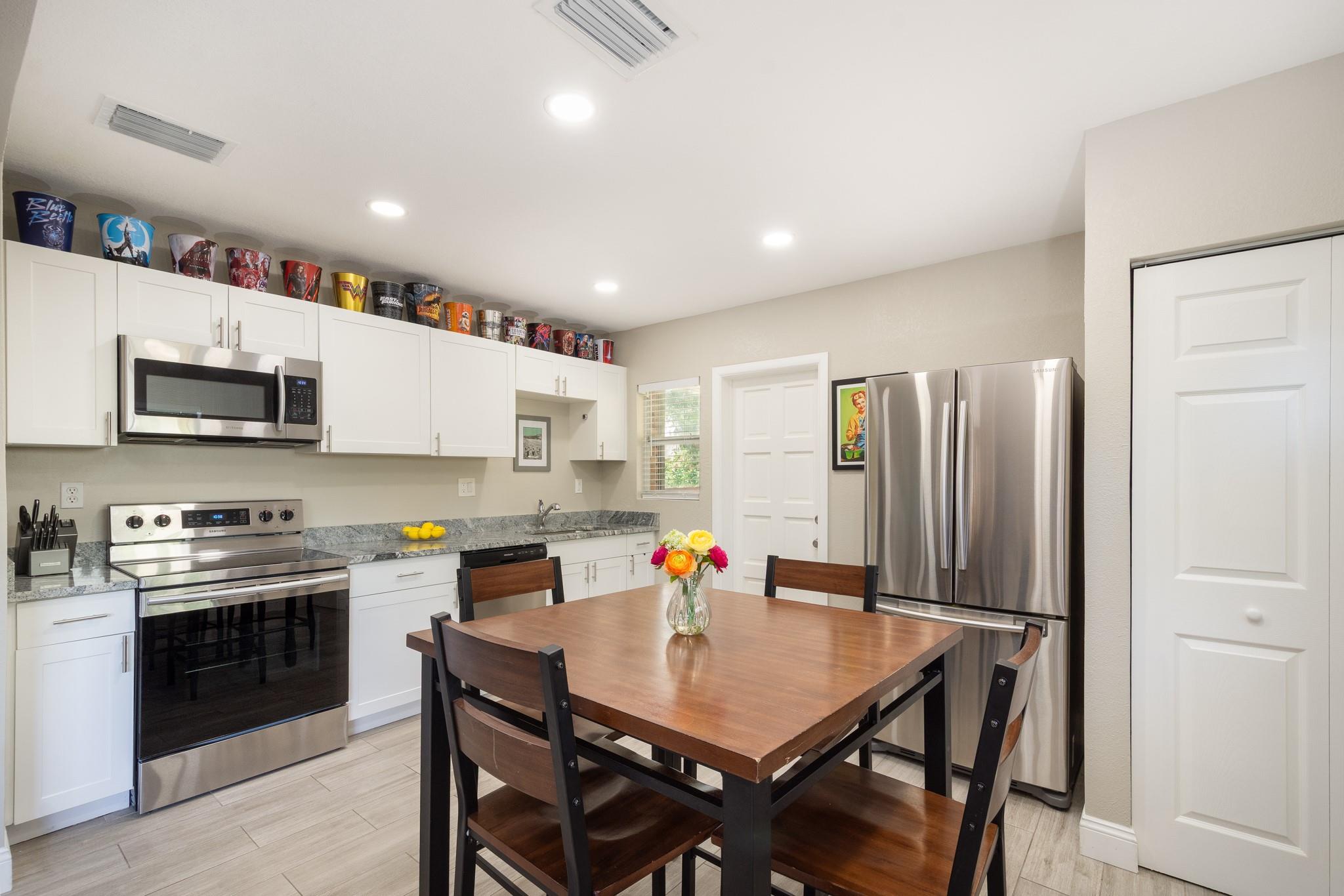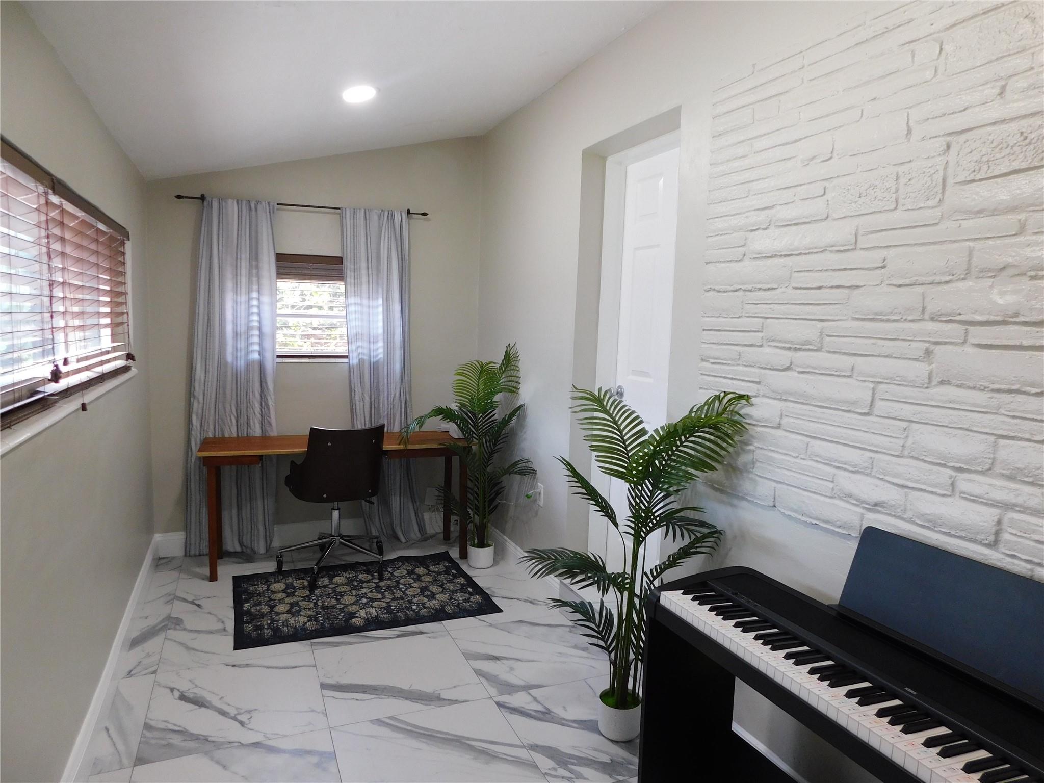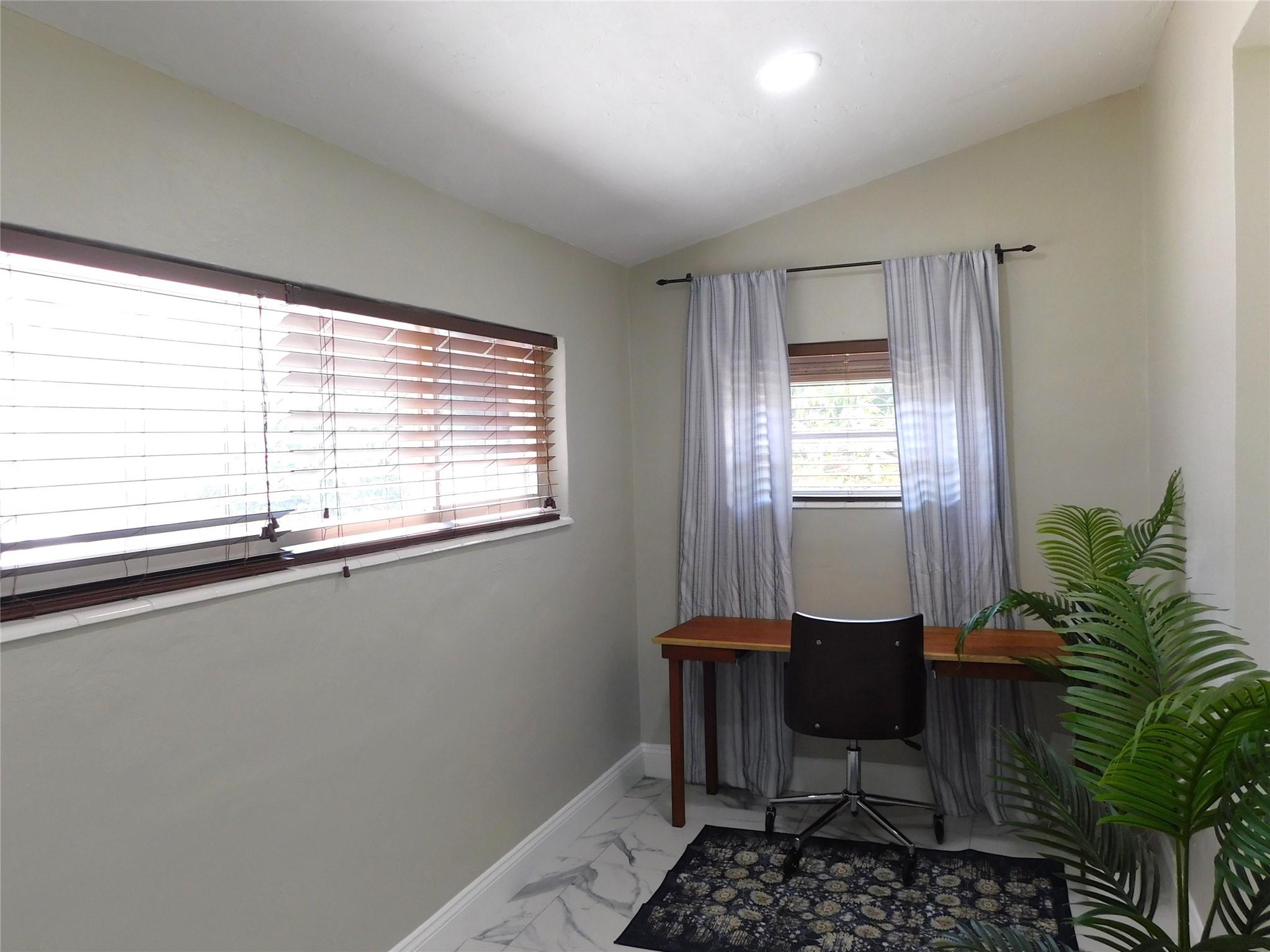 Beautifully updated 2BR/1BA home with den and accessory building just minutes from Wilton Manors, Las Olas, and Fort Lauderdale beaches. Features include newer flooring, cabinets, granite counters, SS appliances, LED lighting, updated bath, new engineered hardwood floors in the bedrooms, 2017 roof, 2020 central A/C, and hurricane shutters. A 2-car tandem carport offers gated storage for cars or a small boat. The fenced backyard features a fire pit, and tropical trees and a bonus 12’x16’ detached studio with high ceilings, water, and electric. The possibilities are endless to create the perfect she-shed, mancave, artist studio, office, or woodshop. HOME HAS A 3.375% VA ASSUMABLE LOAN available to a qualified buyer. Prime location, 2.6 miles to the beach, 4.9 miles to FLL airport.