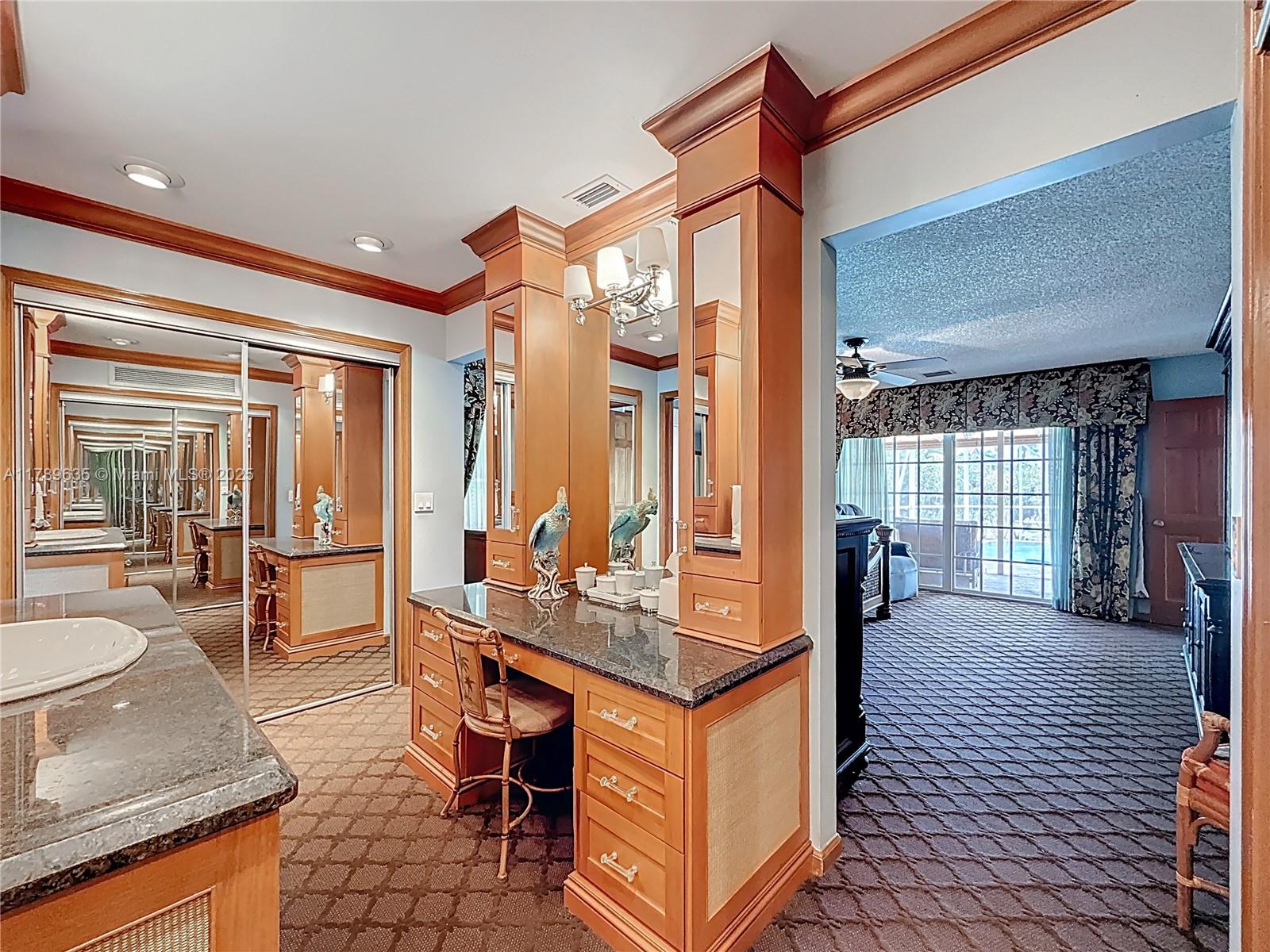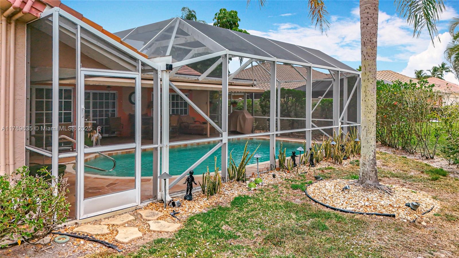 Must See see this beautifully furnished, remodeled 3-bedroom 3-bath home features serene lake views & a heated screened-in pool in the exclusive Golf Estates section of Deer Creek. This luxury home boasts impact windows and doors, a show-stopping kitchen with newer appliances, spacious living/dining areas, & a luxurious primary suite overlooking the pool and lake. The second bedroom includes a built-in desk and drawers, ideal for a home office that overlooks the pool. The home has been tastefully updated with the finest materials, from the quartz countertops to the custom carpentry for the wood-burning fireplace to the window treatments. No expense was spared. Exterior of home just painted in June, (new photos coming) along with new sprinkler system, and new sod will be planted in June.