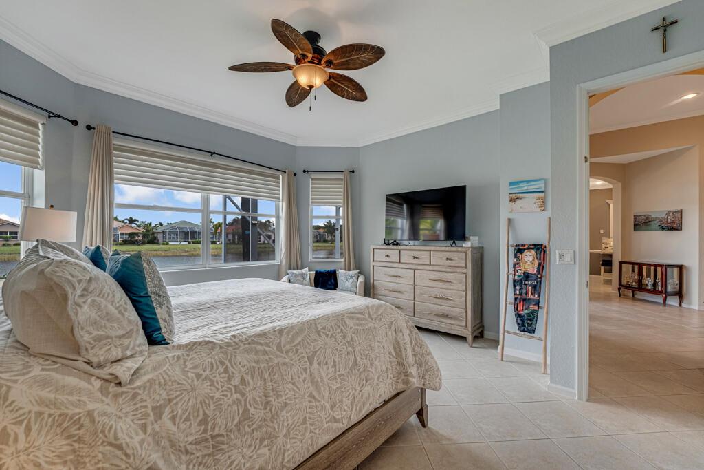 Stunning lakview, and gorgeous landscaping on a private cul de sac location!! Beautiful and Pristine Venetian Floor Plan offers 3 FULL BEDROOMS (TWO OF WHICH HAVE PRIVATE BATHS) PLUS DEN/OFFICE! Beautiful new kitchen has an extra large eating area that can double as another den. The large great room looks onto oversized screened patio. No Carpet! The primary suite offers a lovely bay window that overlooks a panoramic lakeview. Crown molding newer washer and dryer, hunter douglas window treatments, attic stairs, automatic door locks, and so many more perks to this immaculate home. Venetian Isles is the latest rage! Resort living at its finest! Brand New & exquisite clubhouse is not only stunningly gorgeous but truly has it all!