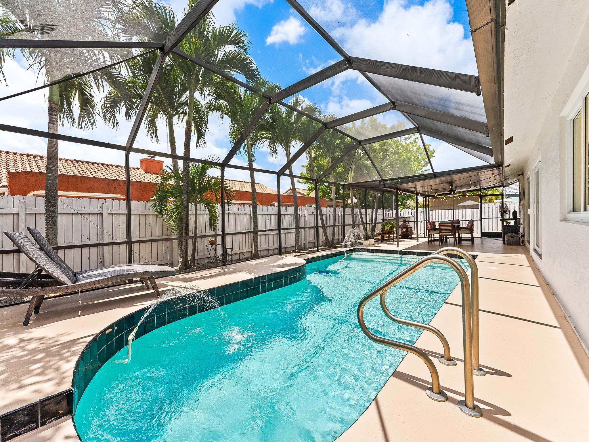 Tucked within a serene community, this beautifully appointed 4-bedroom, 2-bathroom home blends comfort, style, and functionality. A chef-inspired kitchen with a breakfast bar and open-concept layout seamlessly flows into a formal dining area—perfect for both casual and elegant gatherings. Enjoy flexible living with a private office, home gym, and spacious, light-filled family areas. Generously sized bedrooms offer comfort and relaxation, while the screened patio and sparkling pool create the ultimate outdoor retreat. Conveniently located near top shopping, dining, major highways, and the Country Club of Miami golf course, this home offers the perfect balance of tranquility and accessibility. SQFT from IMAP