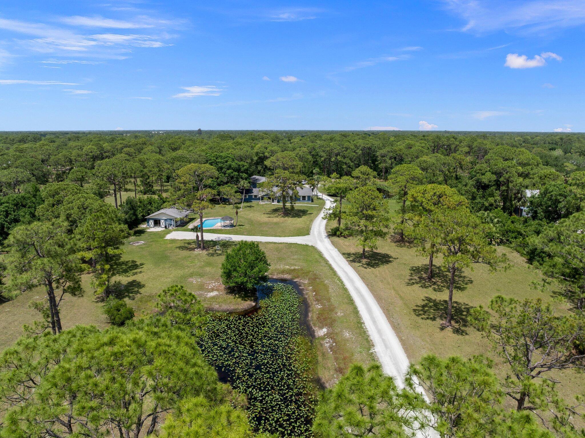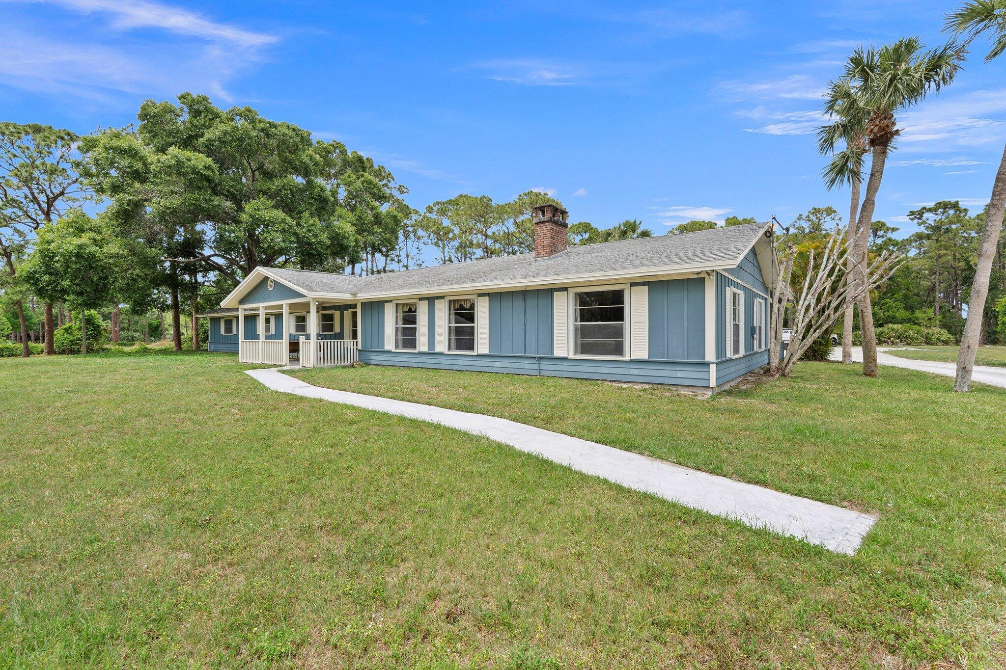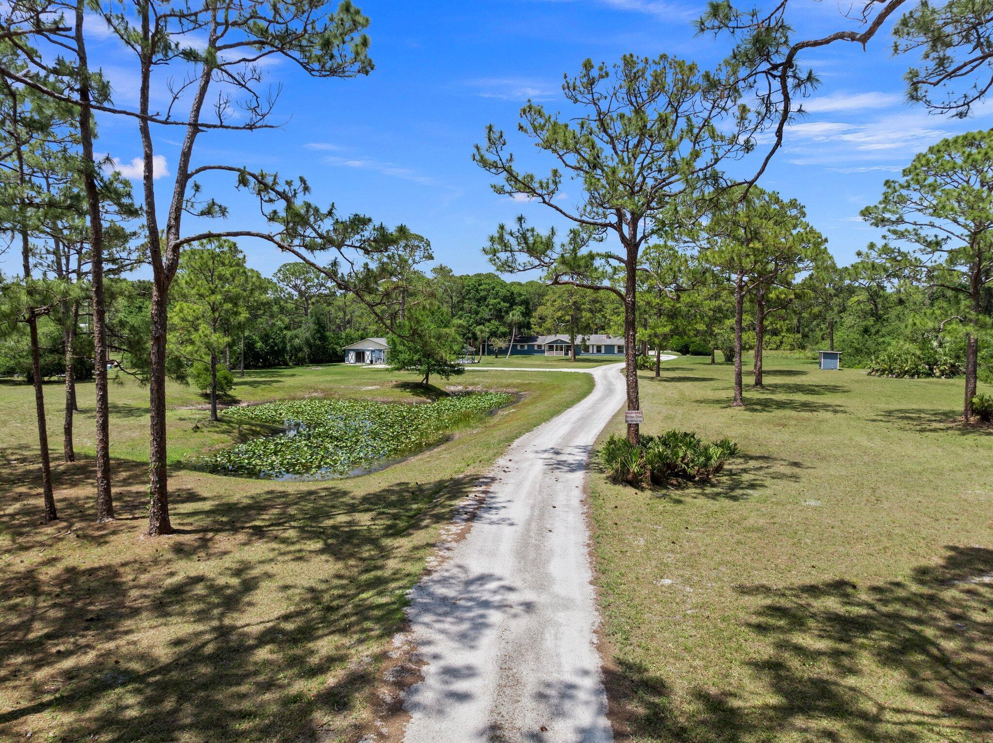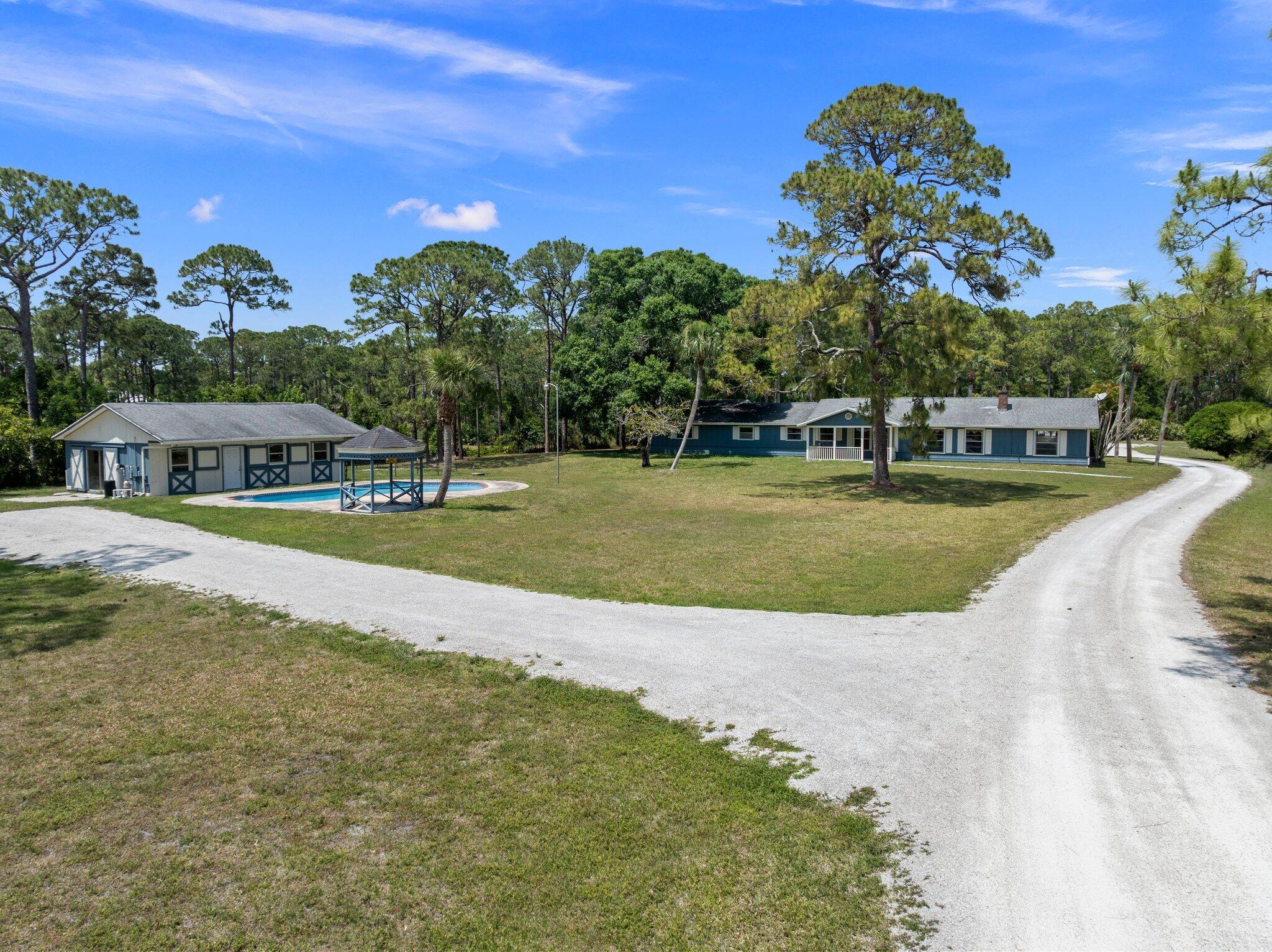 Welcome to your own little slice of Palm City Farms paradise. Tucked away on one of the most sought-after streets in Palm City Farms, this 9.5-acre property has all the charm and space you've been looking for. You've got two ponds, tons of privacy, and so much potential to make it your own. The main house is a ranch-style 3 bed, 3 bath with plenty of space to spread out. It's got a cozy brick fireplace, a good-sized kitchen, and a huge covered patio out back that's perfect for morning coffee or weekend BBQs. The guest house is a total bonus--1 bed, 1 bath with an open floor plan, full kitchen, tile floors throughout, and views of the pool and gazebo that give you all the vacation vibes.