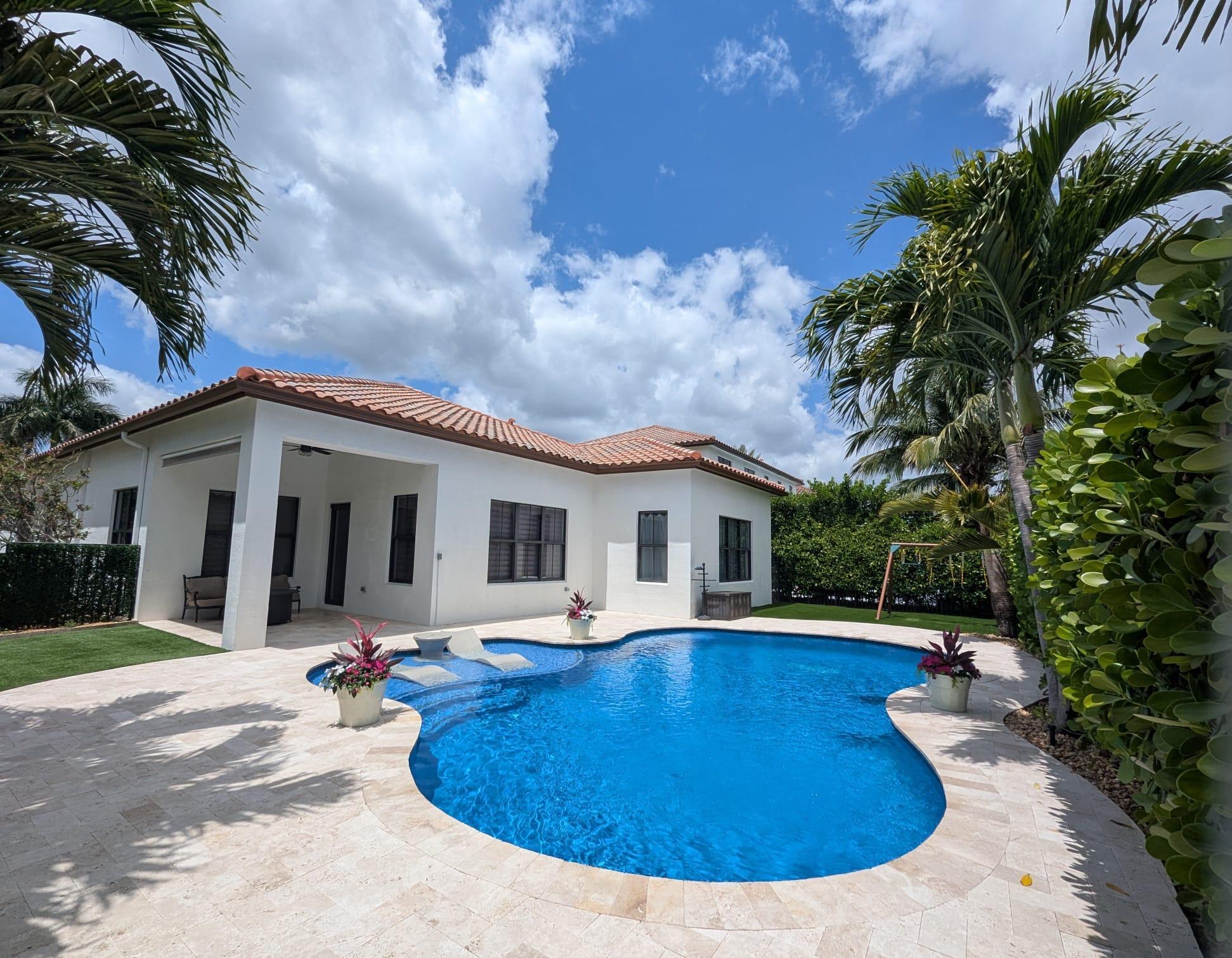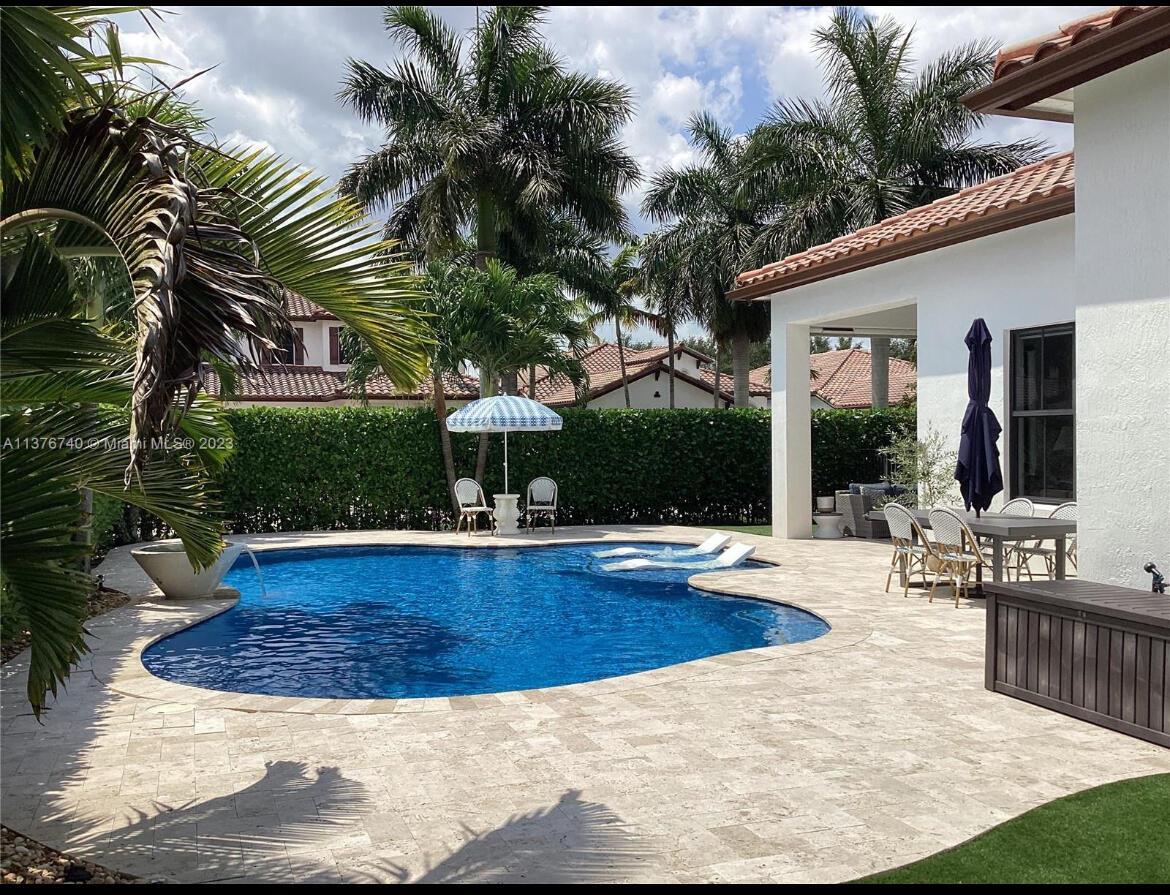 **Experience luxury living in Monterra--Cooper City's premier gated community.**Situated on an oversized 9,000+ sq ft corner lot, this beautifully maintained residence features a stunning, newly upgraded (2024) saltwater pool system with a vibrant super blue finish. Offering 4 generously sized bedrooms and 3 full bathrooms, this home blends comfort, style, and function.Soaring 12-foot ceilings, complete hurricane-impact windows and doors, custom built-in closets, and a smart interior surveillance system add both security and sophistication. The chef's kitchen boasts a new dishwasher and a high-end Bosch induction range, opening effortlessly into spacious living areas and out to a covered lanai with travertine decking--ideal for entertaining or relaxing by the