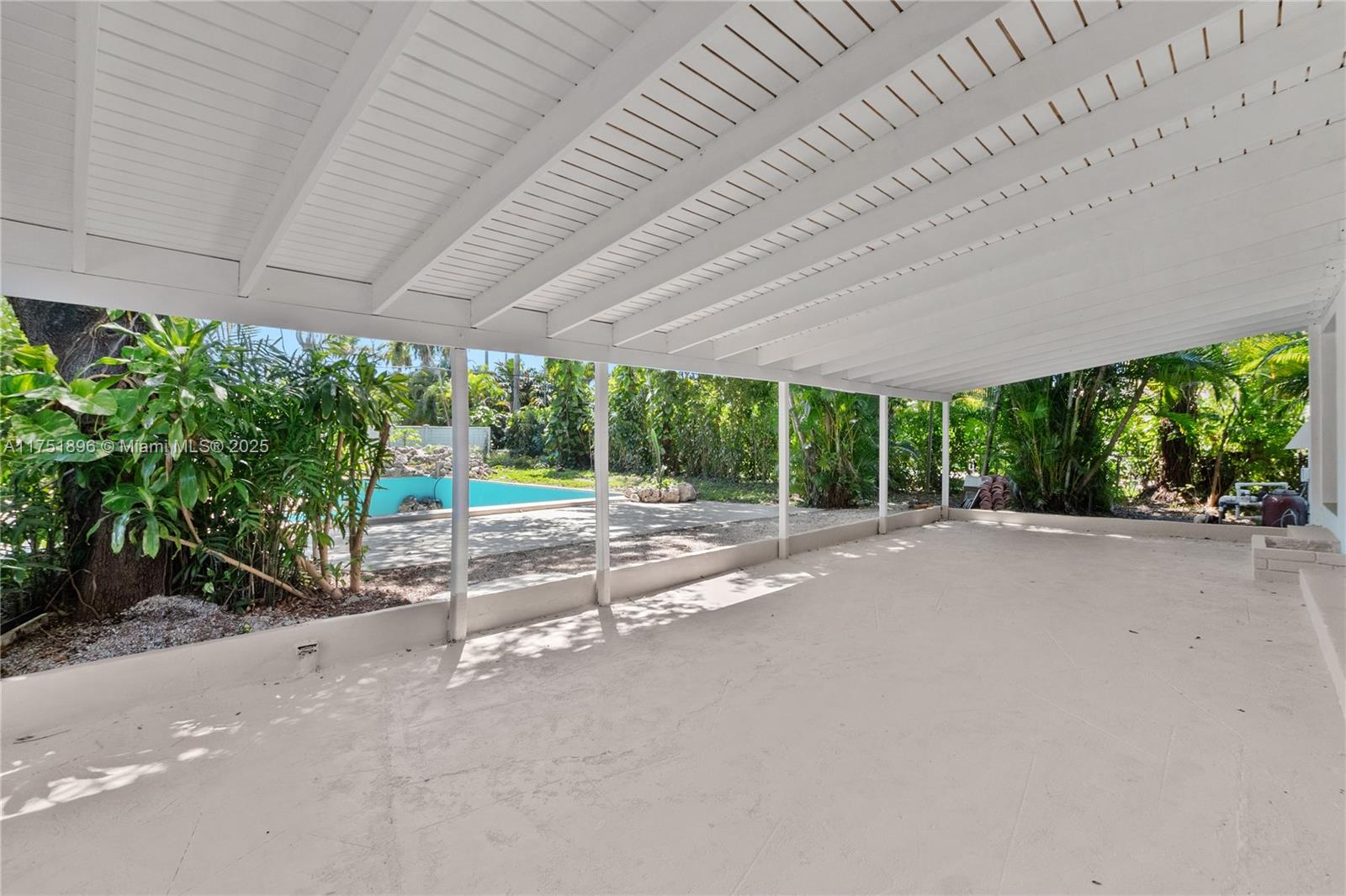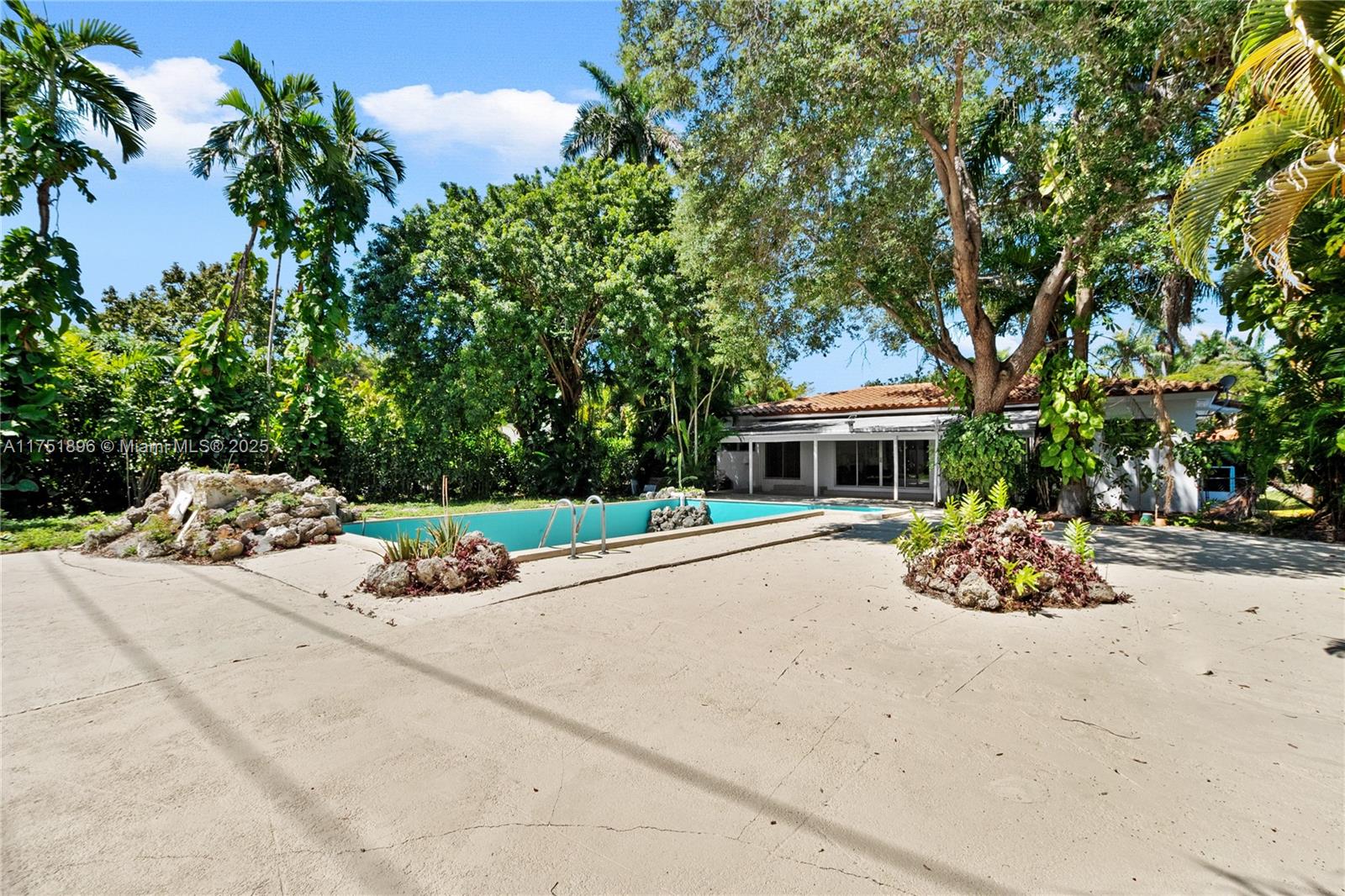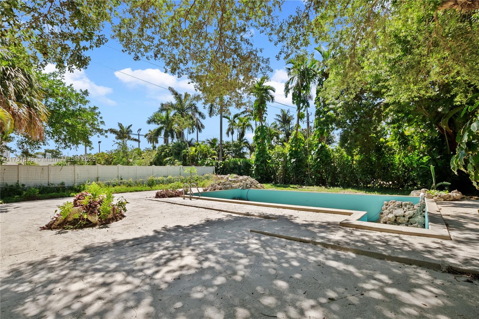 (virtually staged) GREAT DEAL! CASH ONLY offers...Proof of funds first. FIXER-UPPER POOL HOME! NEEDS EVERYTHING ..,Lowest priced pool home w/largest lot (11,550 !!)on a quiet street in Miami Shores! Tucked-away jewel...ranch-style architecture w/soaring high beamed ceilings! Lots of patio around the pool -BBQ's + fun. Enjoy East-West breezes. OVERSIZED POOL* note: equipment NOT operational- previously w/fish. Lots of natural light w/large sliding glass doors from living areas + master bedrm. May be a candidate for new construction.**This area was voted by MSV to DISCONTINUE septic system AND connect to SEWER- mostly gov't. funded w/spec.assessment of $1163 for 20 yrs. for all Owners. **GOOD NEWS**finished garage converted 50+ yrs. ago and VERIFIED IN writing in county records.
