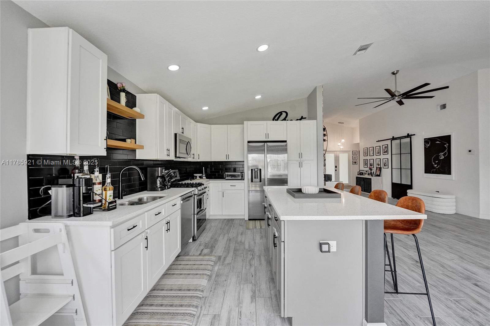 This move-in ready, waterfront 3 bedroom/2 bathroom home is situated on a quiet Cul-de-Sac. It has the largest lot in the community. The newly fenced in backyard has an unobstructed view to the water, privacy clusia and plenty of room for a pool or outdoor kitchen. New impact windows & garage door were installed in 2023. New A/C 2025, newer roof 2019, new appliances 2022, gas stove 2024 & a complete renovation in 2021. Soaring ceilings, custom accent walls, floating shelving, and designer lighting add to the beautiful finish. Central laundry room and a 2-car garage with built in wall system. Low HOA fees. 5 minutes to Sawgrass Mills Mall, Amerant Bank Arena, grocery stores, major highways, dining and more. Motivated sellers, bring your buyers!