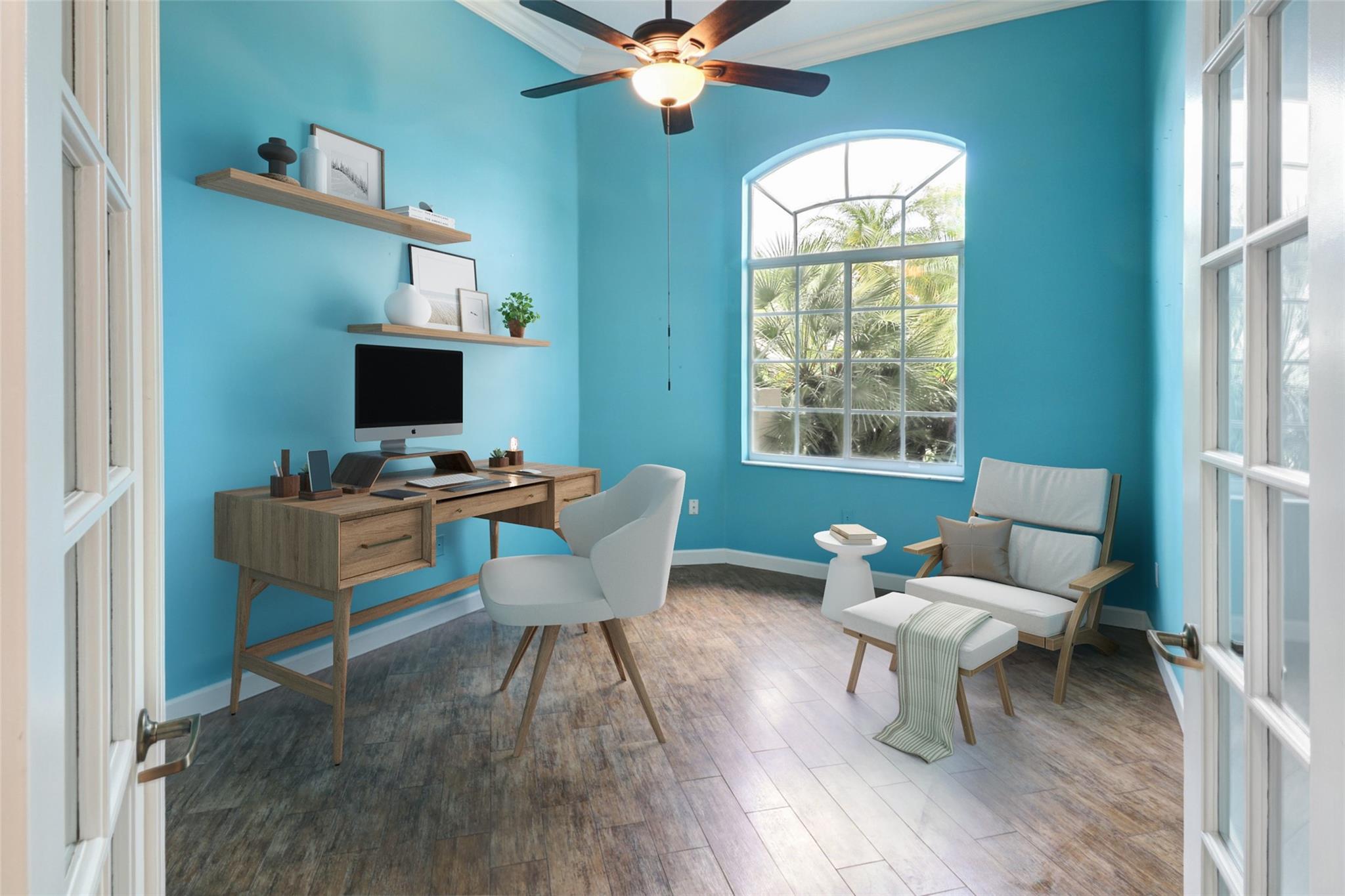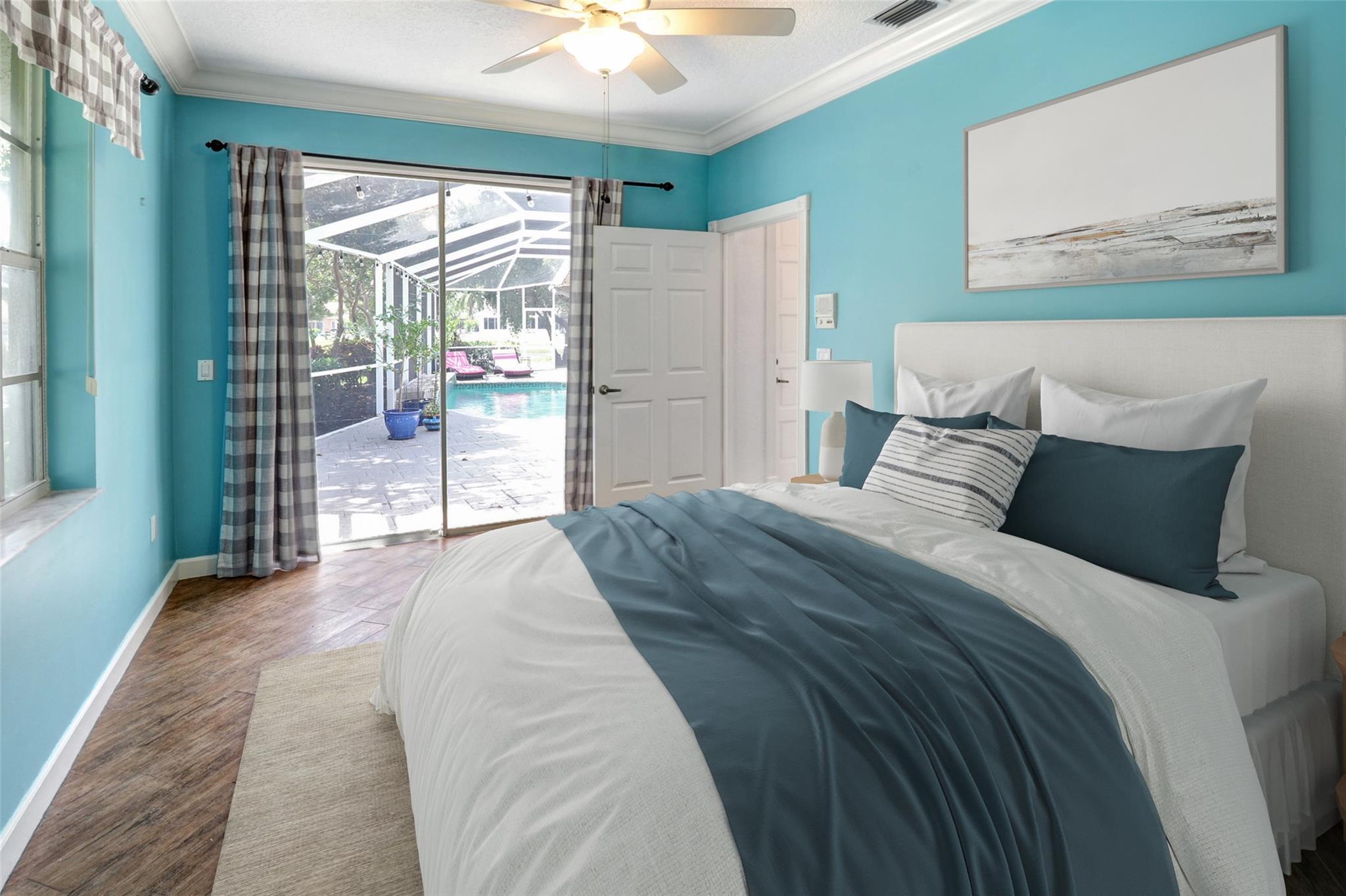 SELLER OFFERING A $20,000 CREDIT TO BUYER for this highly sought after GATED neighborhood of Meadow Run boasting soaring 12" ceilings, 3 car garage, lush landscaping, relaxing SCREENED POOL w/ a view of the AMAZING WATER VIEW, 4 bedrooms, 3 full bathrooms + an office, CUL-DE-SAC & one of the best school districts in the county. The kitchen has ALL WOOD CABINETRY, GRANITE COUNTER TOPS & STAINLESS STEEL APPLIANCES. Enjoy some of the most beautiful sunsets right from your pool patio, overlooking the wide canal. ROOF = 2008 & is in fantastic condition. Double walk-in closets in the primary bedroom. The office can easily be converted to a 5th bedroom. Community has a private park with playground, walking paths & brand new PICKLEBALL, TENNIS & BASKETBALL COURTS. AMAZING SCHOOLS!