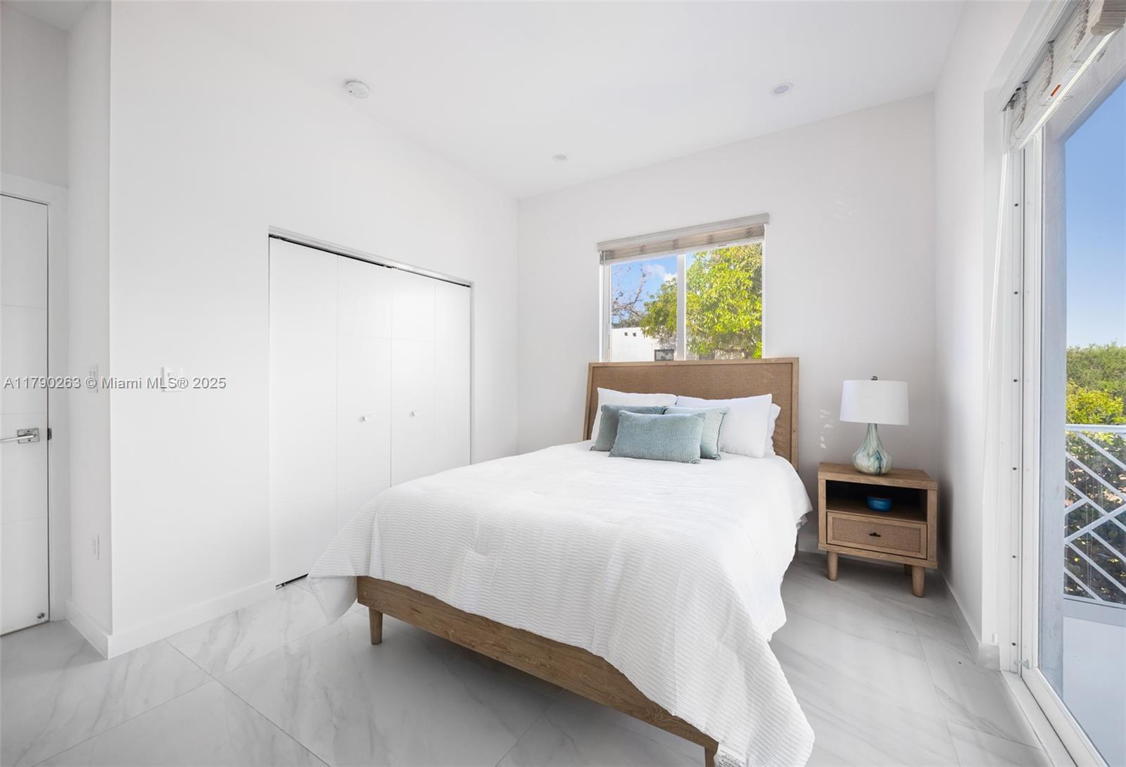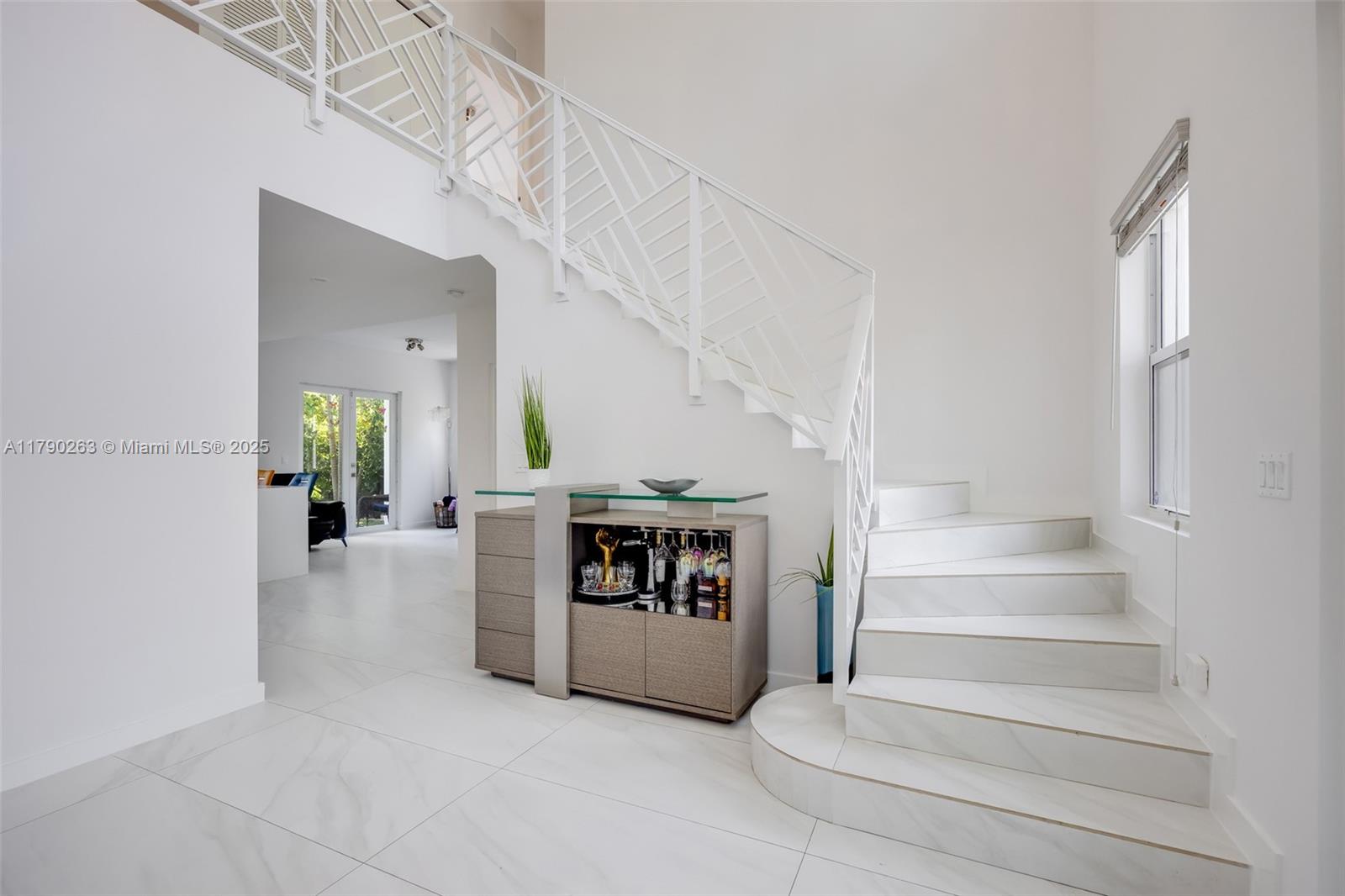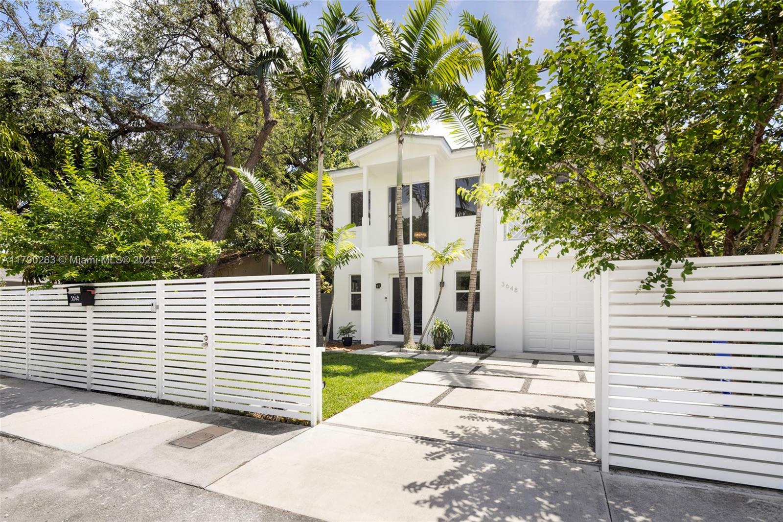 Walk or bike to the historic Grove village from this beautiful 2019-built home, fully gated and surrounded by lush tropical landscaping. Inside, light-filled living spaces feature double-height ceilings, abundant windows, porcelain tile flooring, and an open-concept floor plan. The kitchen is outfitted with high-end stainless steel appliances, quartz countertops, and a breakfast bar with seating. Upstairs, the spacious primary suite and a second bedroom both open to balconies with treetop views. Outdoors, enjoy your own private oasis with an expansive backyard, perfect for entertaining. There is ample space to add a pool, and the Seller will contribute toward pool installation costs as well as pay the Buyer’s first year of homeowner’s insurance premium at closing.