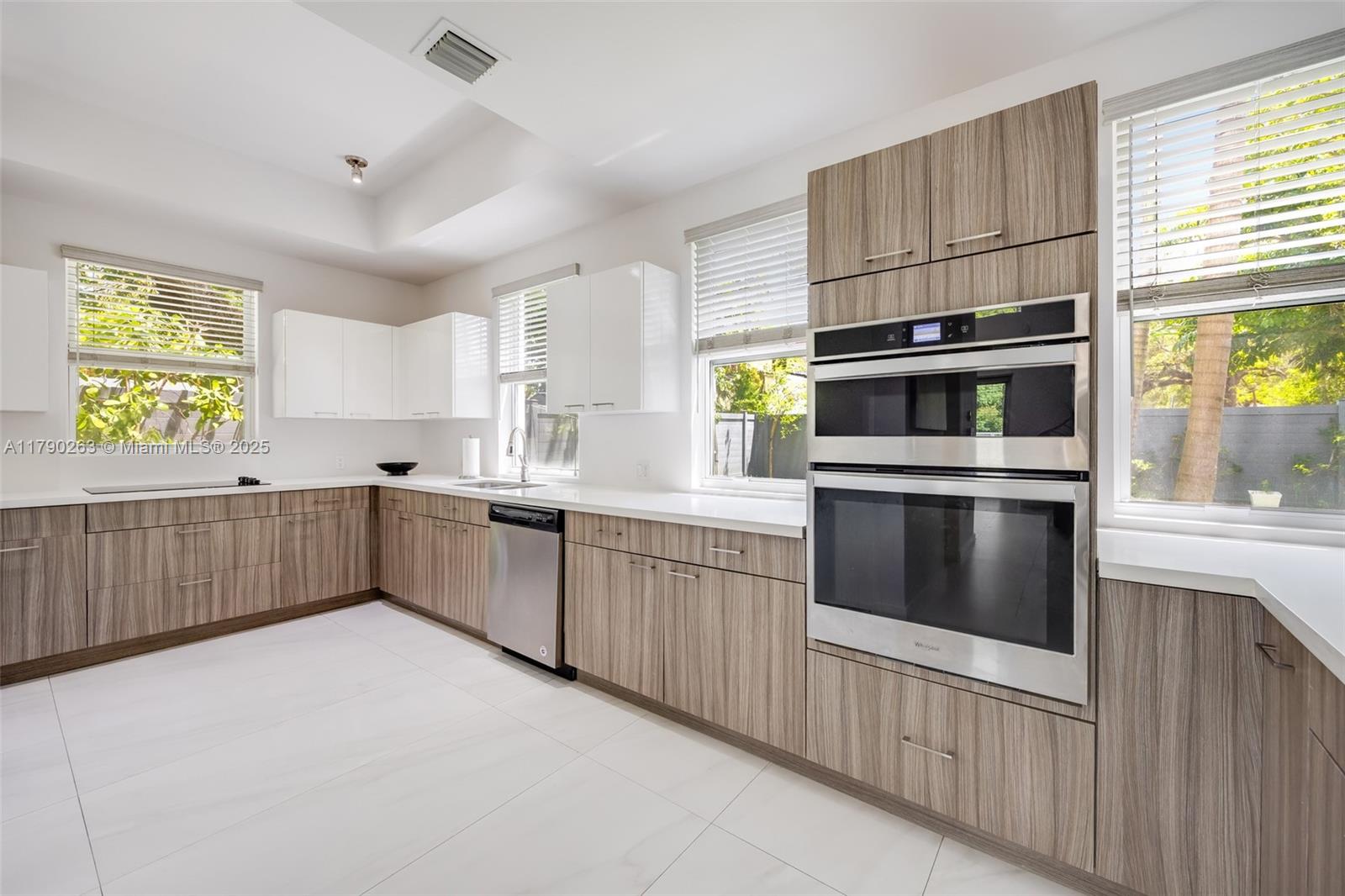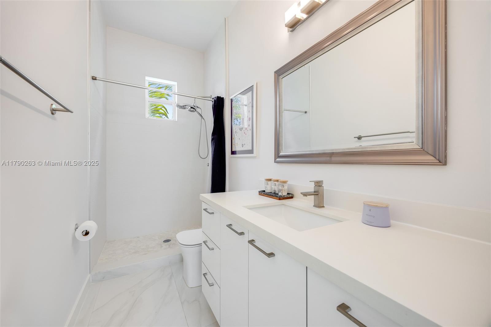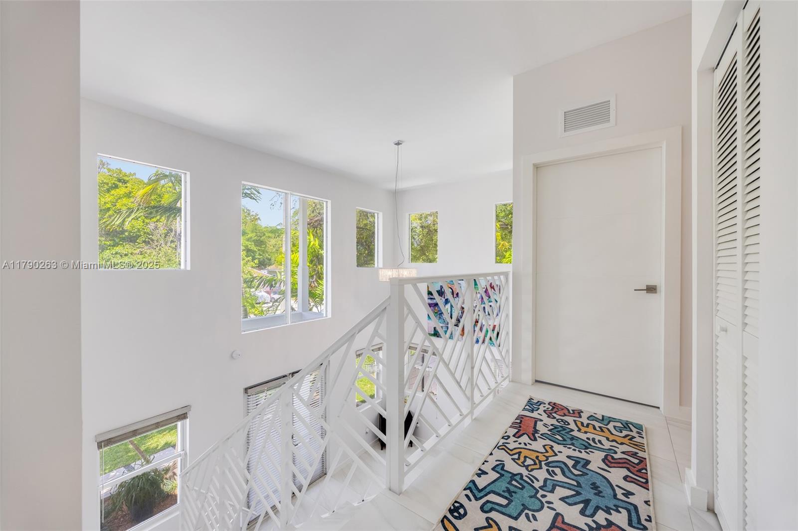 Walk or bike to the historic Grove village from this beautiful 2019-built home, fully gated and surrounded by lush tropical landscaping. Inside, light-filled living spaces feature double-height ceilings, abundant windows, porcelain tile flooring, and an open-concept floor plan. The kitchen is outfitted with high-end stainless steel appliances, quartz countertops, and a breakfast bar with seating. Upstairs, the spacious primary suite and a second bedroom both open to balconies with treetop views. Outdoors, enjoy your own private oasis with an expansive backyard, perfect for entertaining. There is ample space to add a pool, and the Seller will contribute toward pool installation costs as well as pay the Buyer’s first year of homeowner’s insurance premium at closing.