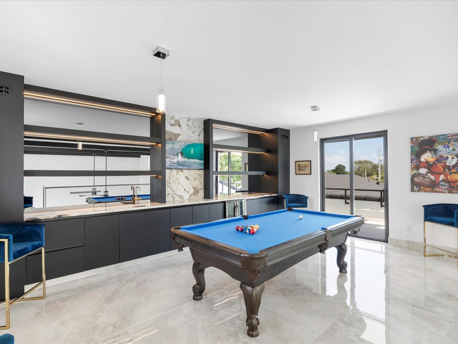 This beautifully renovated 5-bedroom, 4-bathroom home is situated on just over an acre lot in the heart of Sunset. This exceptional property offers both luxury and potential, with half of the expansive lot awaiting your vision.Step inside through a gated entrance, past the protective embrace of a concrete wall, and into a sanctuary of privacy and security. Revel in the beauty of new flooring, a completely renovated kitchen and new bathrooms completing the modern transformation.The family room, with its soaring 20-foot ceilings and abundant natural light, is a testament to spacious, bright living. A loft, currently an entertainment haven with a pool table & bar, features a balcony with a breathtaking view of the backyard