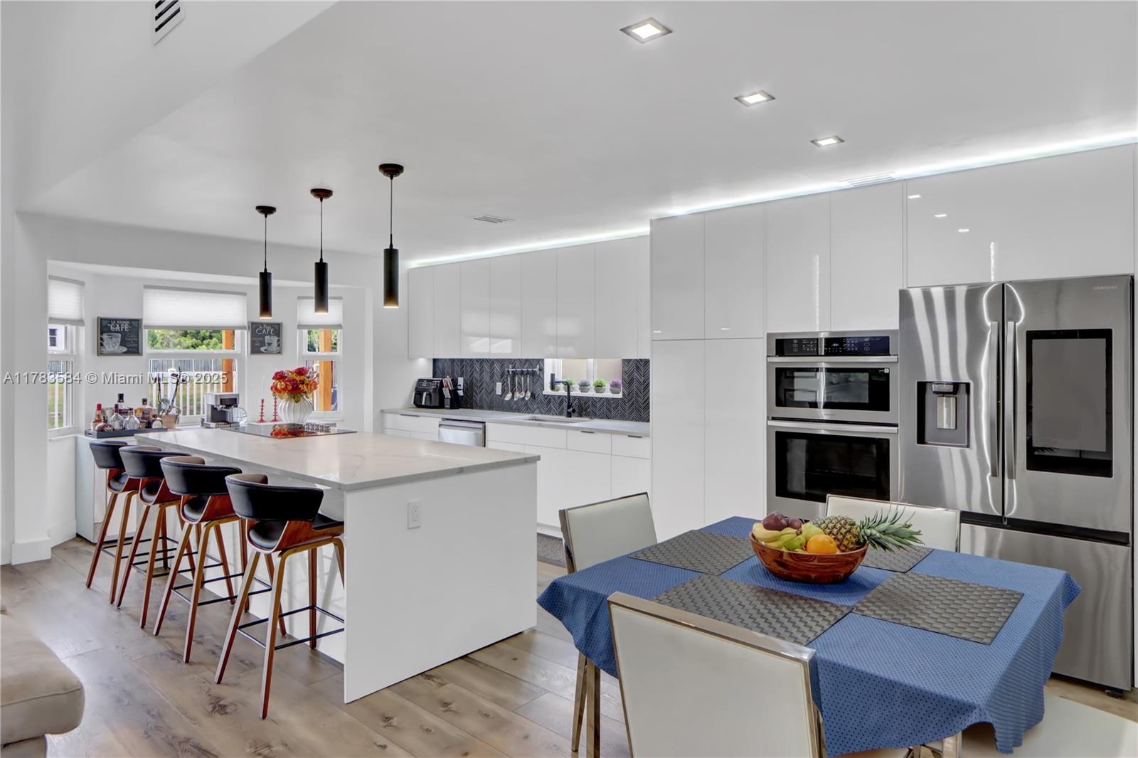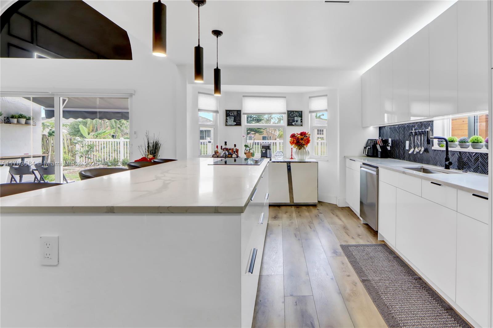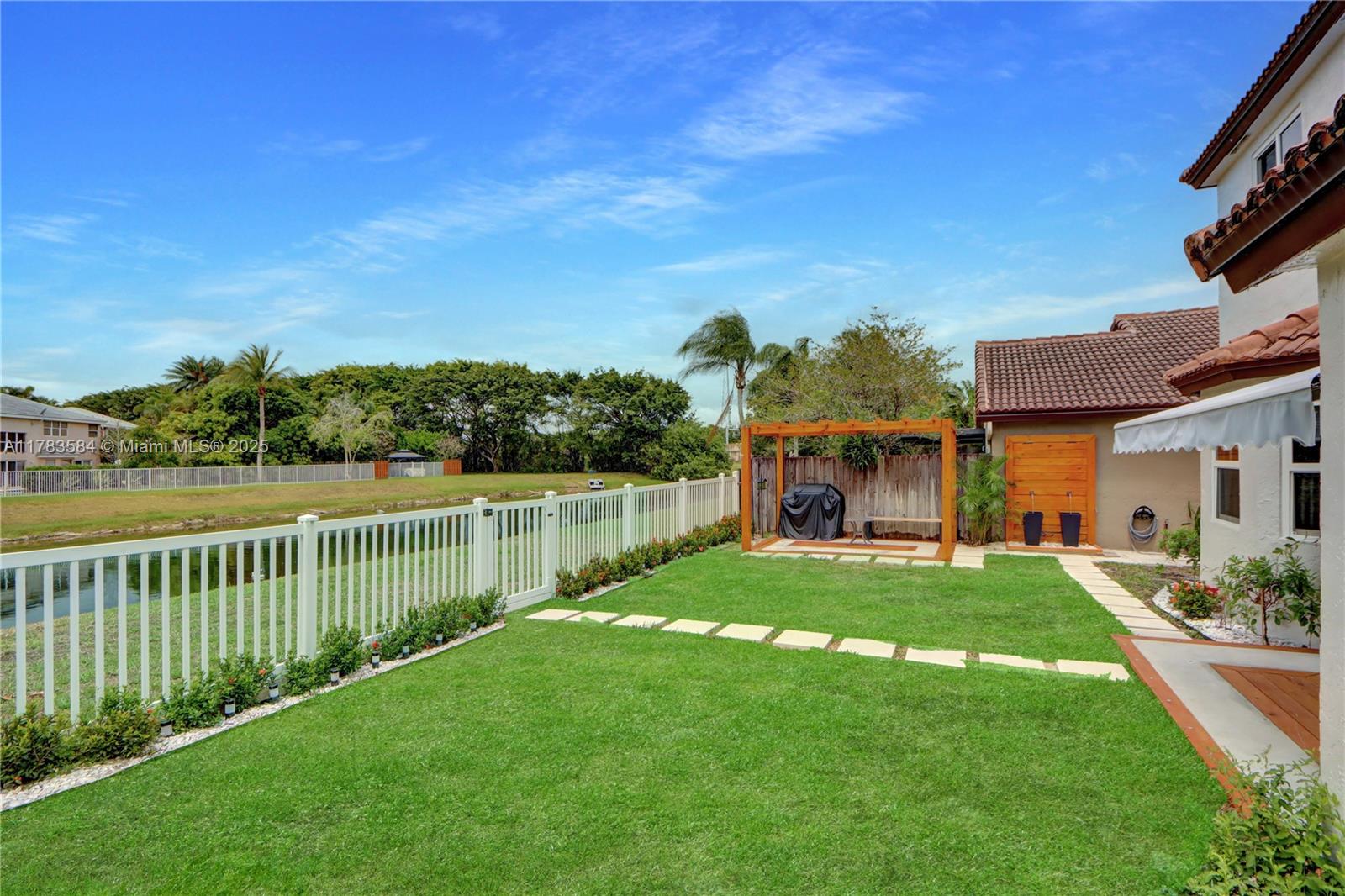 Beautifully updated home, move in ready, located in a gated community, features a freshly painted exterior. Step inside to an extended kitchen with custom Italian cabinetry, quartz countertops, a gorgeous backsplash, top of the line appliances and double wine cooler and rack. Laminate floors throughout, a sleek granite panel tv wall, modern ceiling fan, motorized blind, extra room used as an office. Gorgeous bathrooms, primary bedroom with custom made walk-in closet. Modern glass stair railings. Enjoy relaxing water view, lighted gazebo and water fountain. (Water filtering system and impact windows) over 110k in upgrades