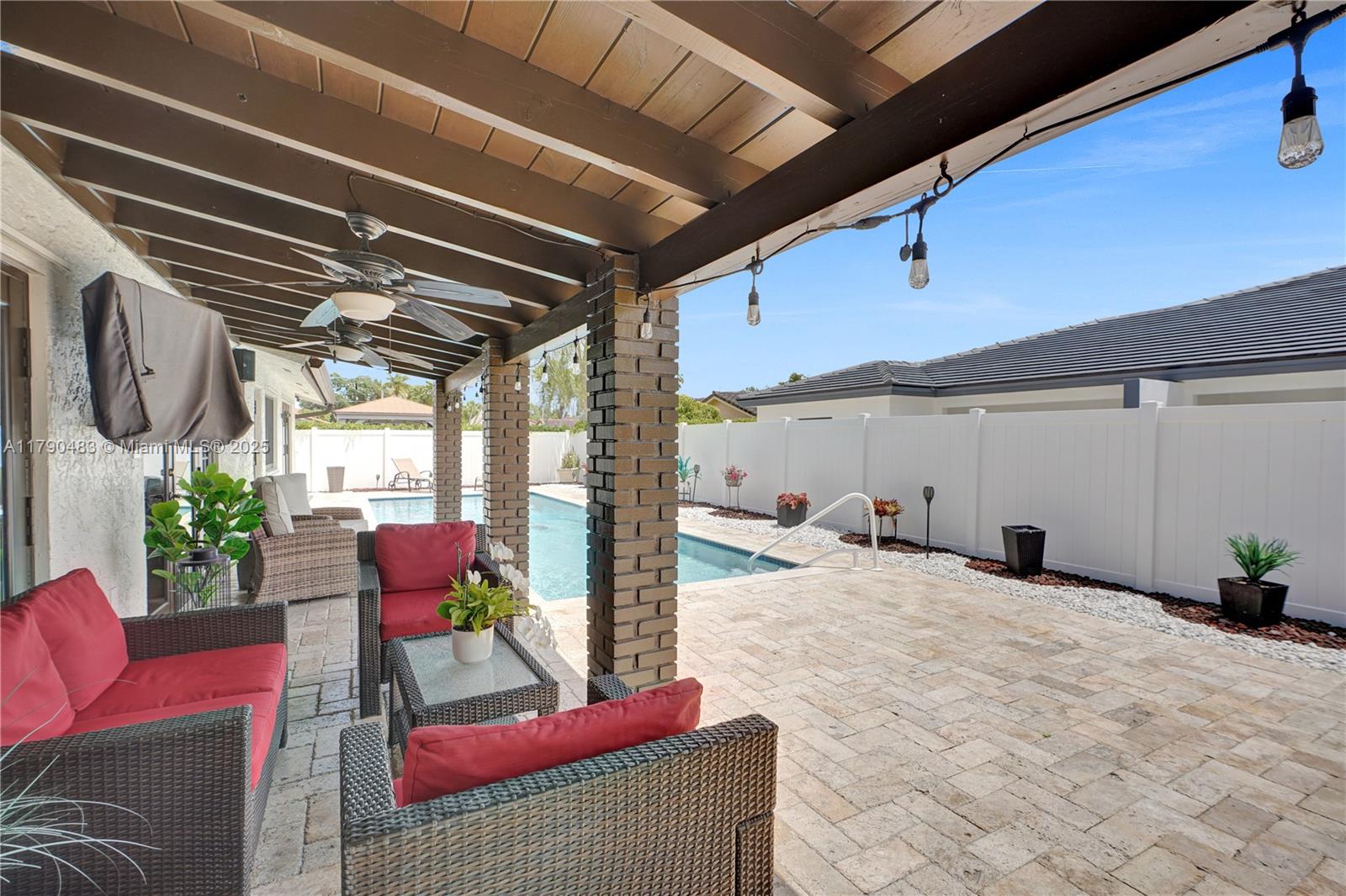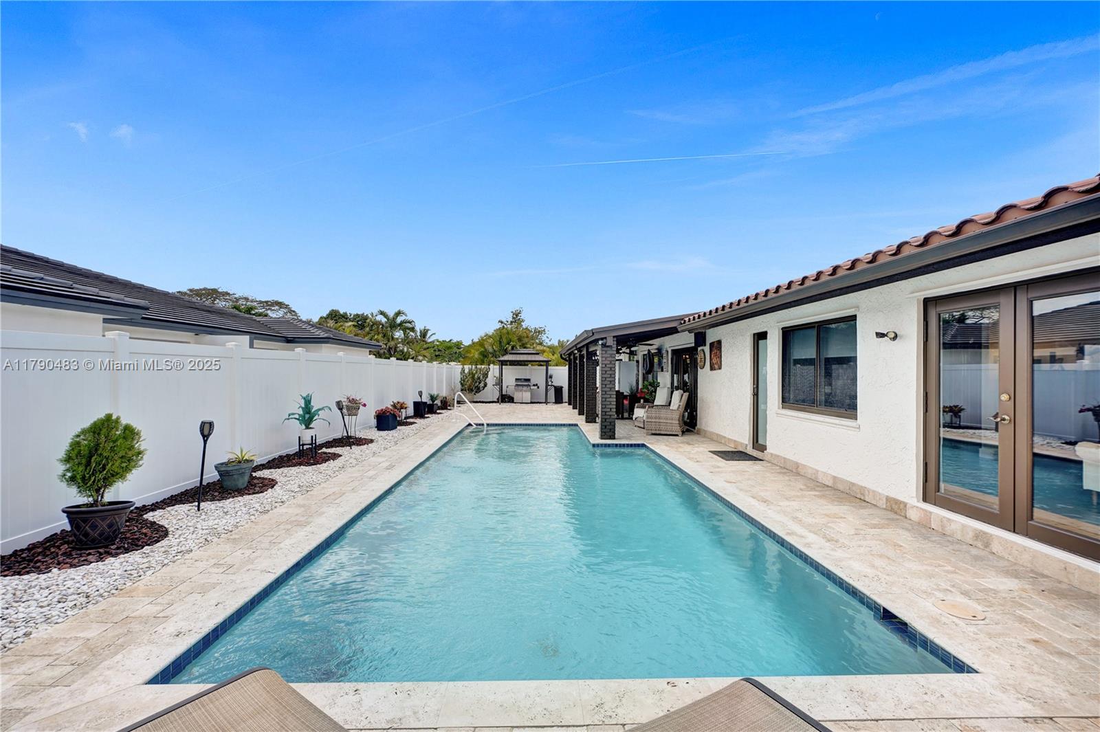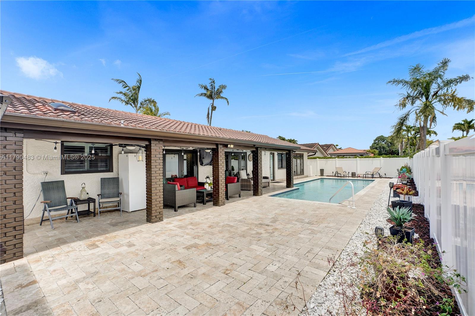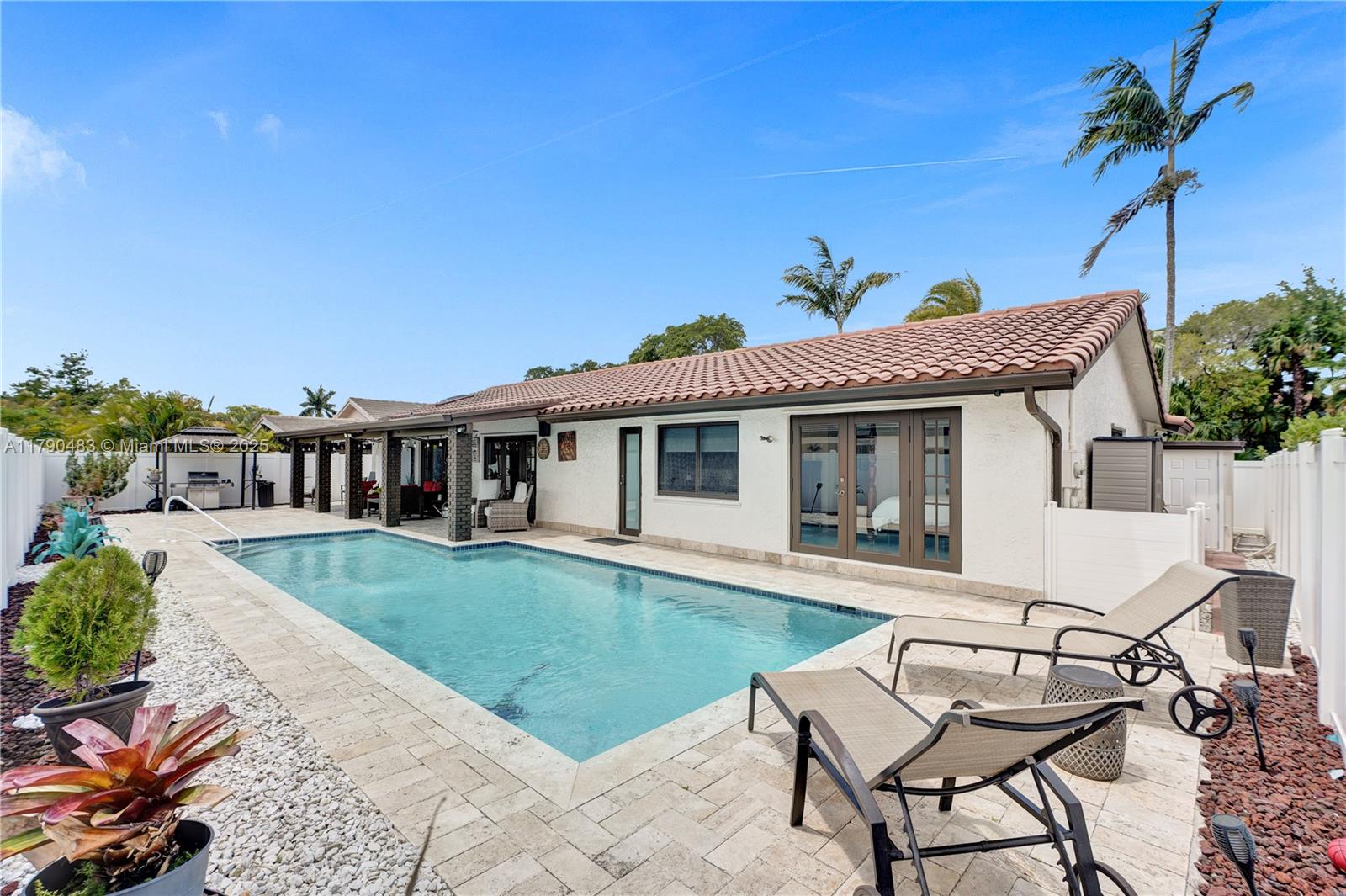Step inside to discover this beautiful 4 bed,2 bath + flex room pool house!! The spacious master suite offers a large walk-in closet and renovated bath.The kitchen is outfitted with high-end GE Café appliances, pantry, & 2 built-in wine/beverage coolers perfect for entertaining. Laundry room includes built-in cabinetry and large washer & dryer.Additional highlights include:2023 HVAC,Nest doorbell & wireless exterior security cameras, dedicated flex room/gym. Impact windows & doors, plantation shutters, & travertine deck around the pool and covered terrace.The decorative landscaping, soffit lighting, and expanded paver driveway add to the home’s curb appeal.This home blends luxury, comfort, and functionality in every corner. Great location , great schools and minutes from Turnpike. NO HOA!