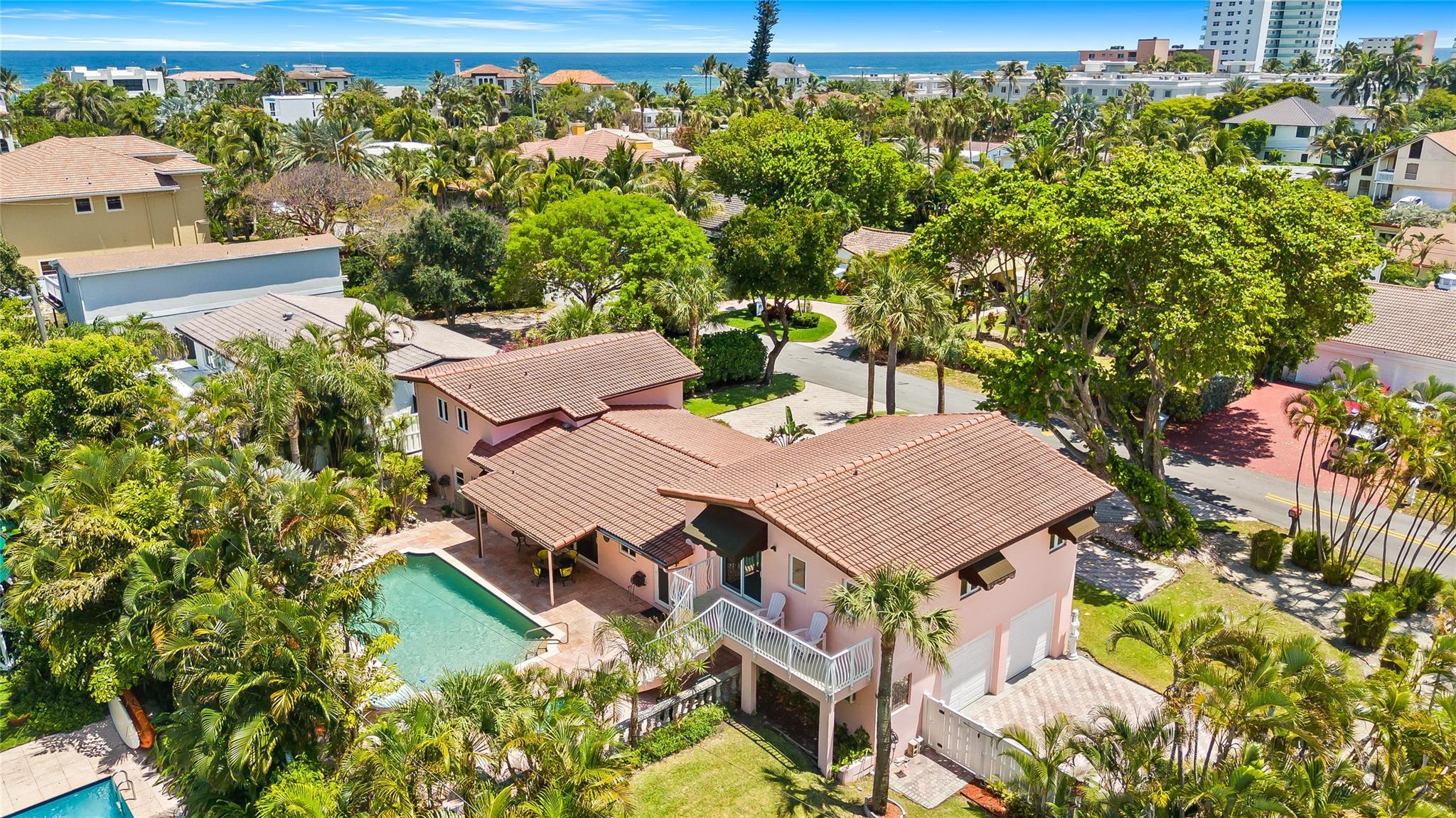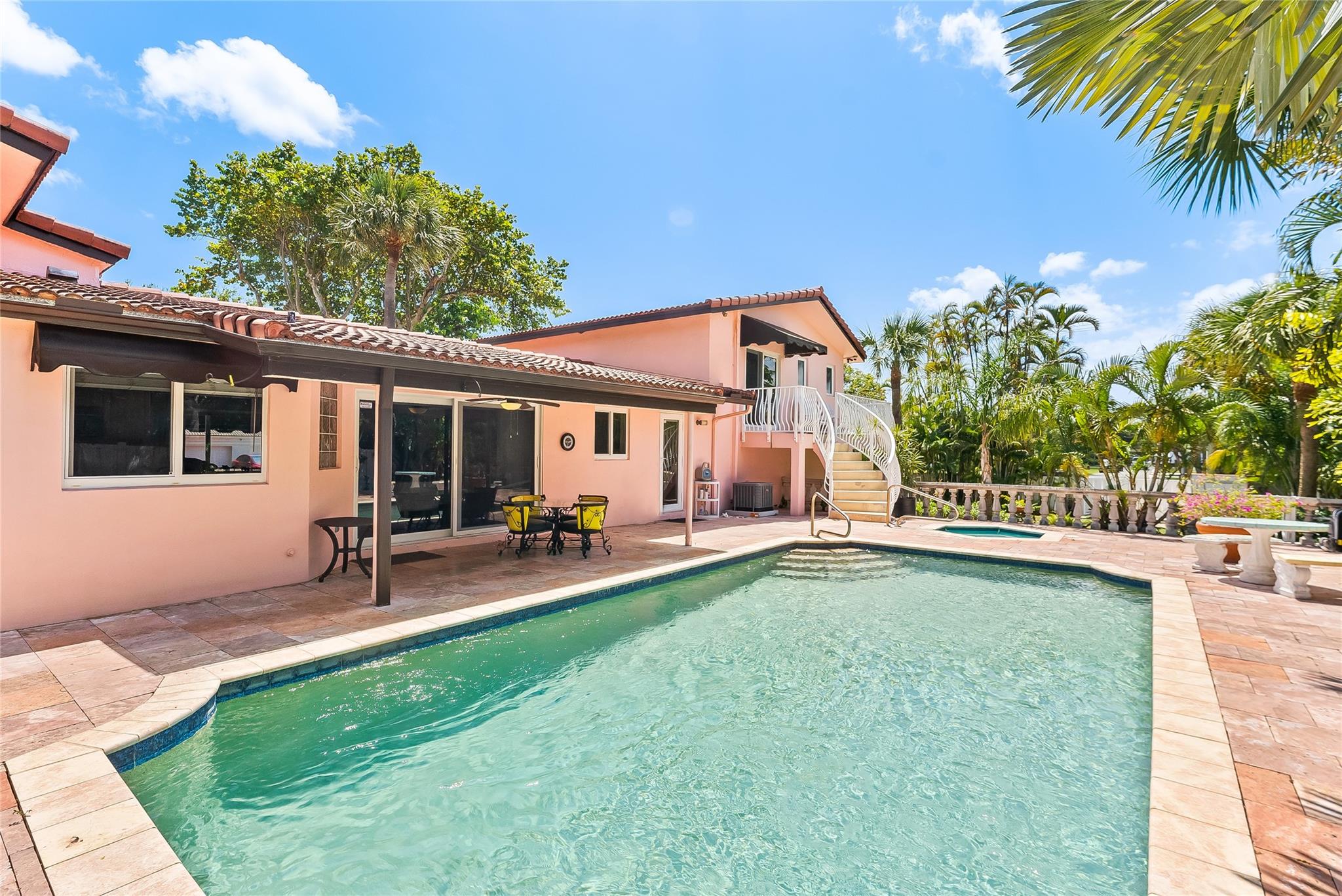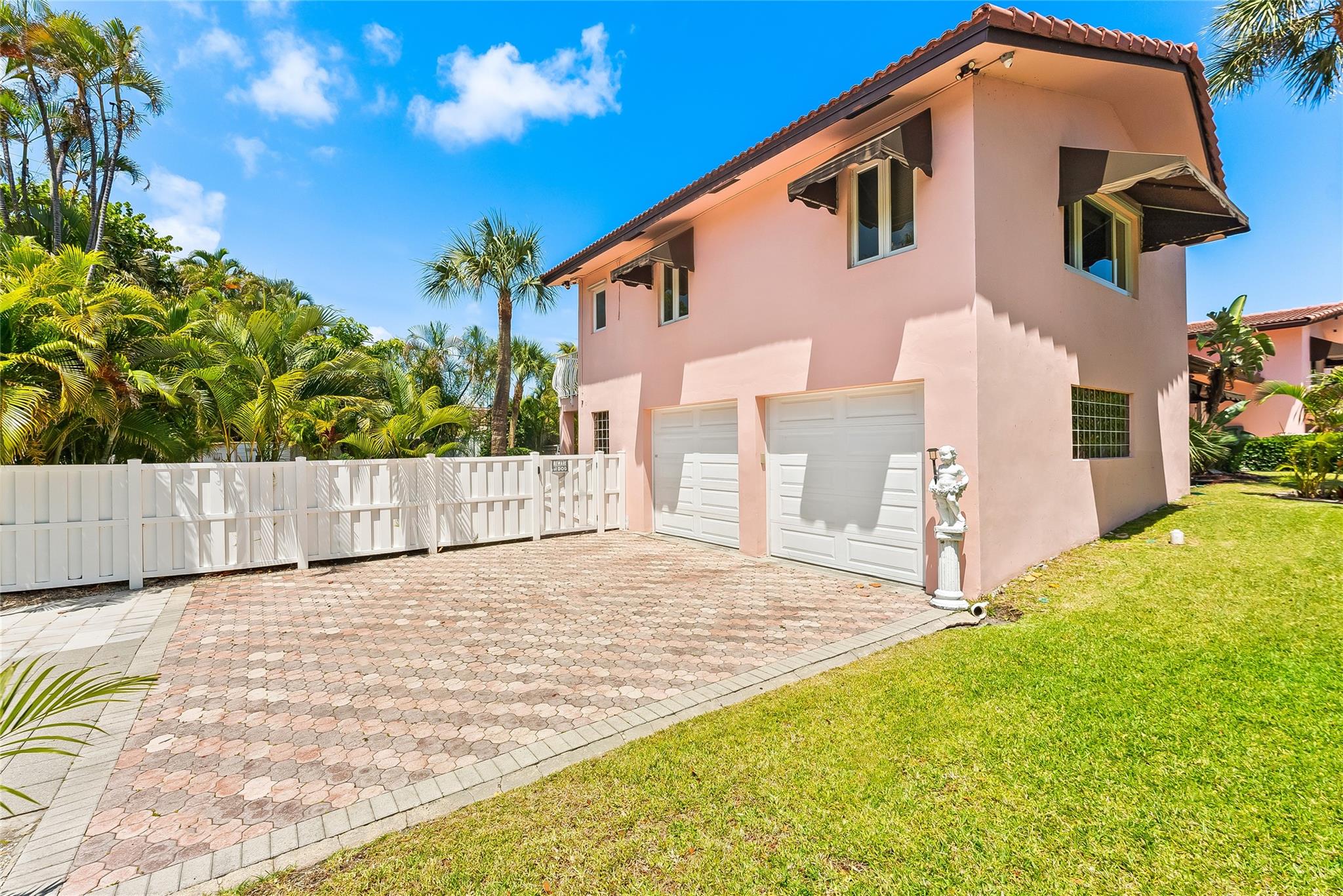 Private beach access! OVERSIZED lot on 8ft elevation. 1 of a kind home in desirable Hillsboro Shores. Lot is almost 13,000 sqft, +features plenty of natural grass on either side of your pool/hot tub. 4 car garage. Over 2700 sq ft of living area w/a split bedroom floor plan. Stairs lead to the primary bedroom on the right side of the house with another primary bedroom on the left, which features a balcony with spiral staircase down to the pool deck. Both primary bedrooms are ultra spacious + boast large bathrooms. Living area, kitchen and bedrooms look out to your pool area making the energy sublime. Take a 2 minute walk down road to reach two private beach access gates only available to Hillsboro Shores residents. Juice/Smoothie bar, sushi, Argentinian restaurant + park just down the road.