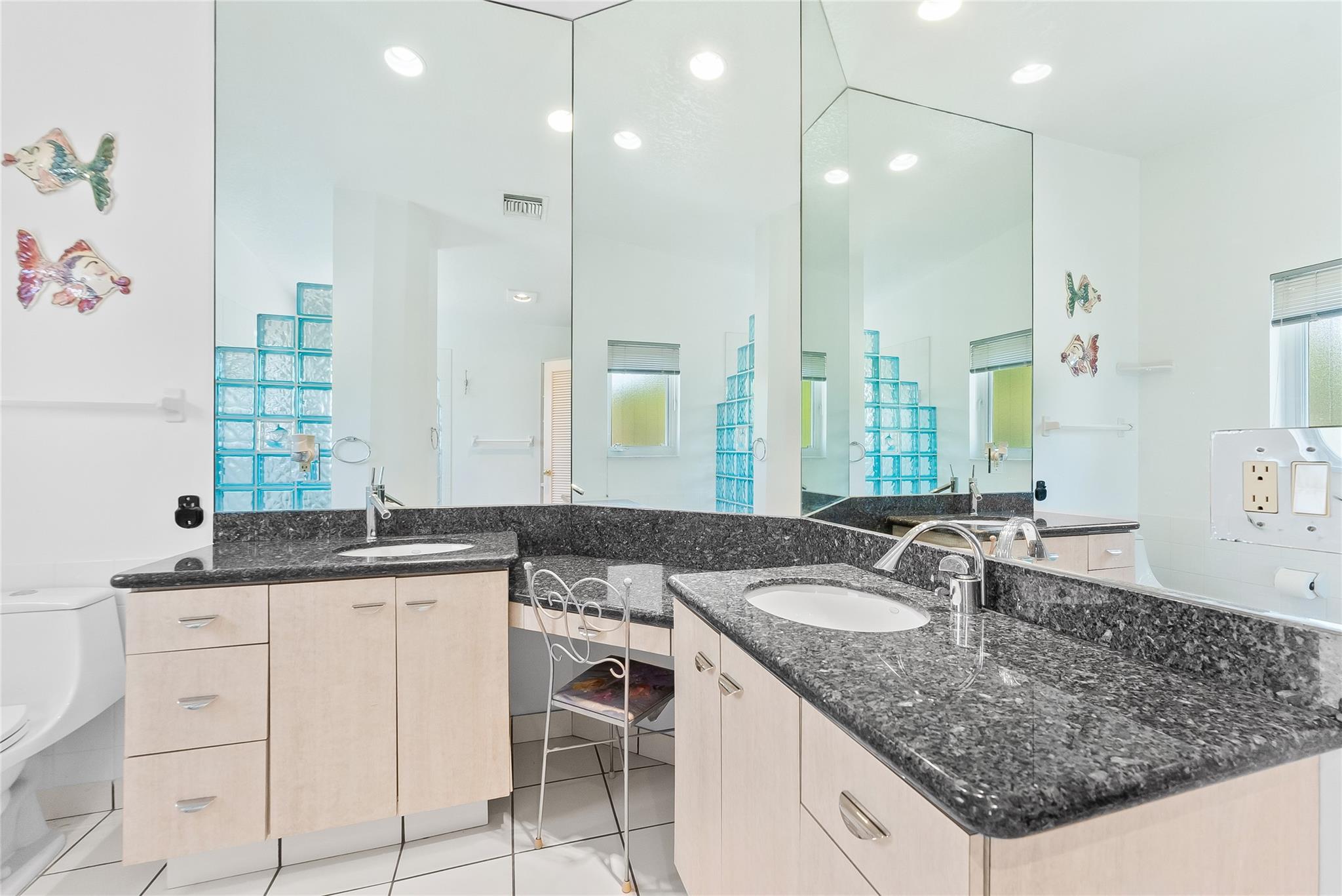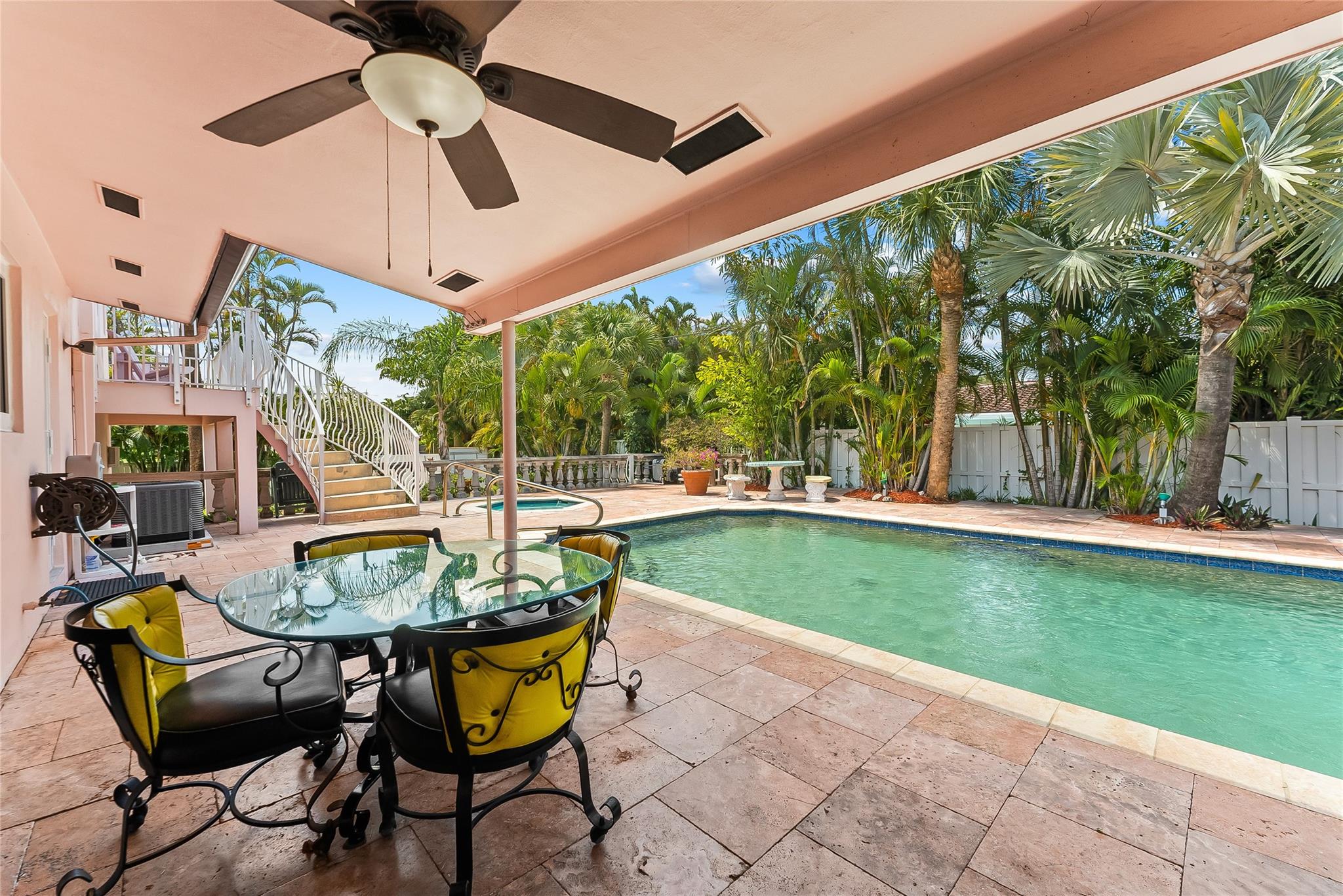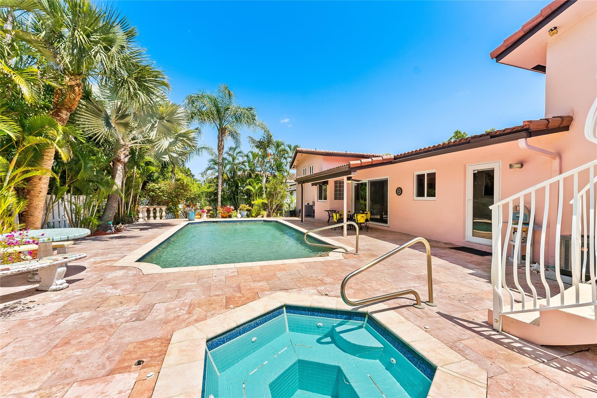 Private beach access! OVERSIZED lot on 8ft elevation. 1 of a kind home in desirable Hillsboro Shores. Lot is almost 13,000 sqft, +features plenty of natural grass on either side of your pool/hot tub. 4 car garage. Over 2700 sq ft of living area w/a split bedroom floor plan. Stairs lead to the primary bedroom on the right side of the house with another primary bedroom on the left, which features a balcony with spiral staircase down to the pool deck. Both primary bedrooms are ultra spacious + boast large bathrooms. Living area, kitchen and bedrooms look out to your pool area making the energy sublime. Take a 2 minute walk down road to reach two private beach access gates only available to Hillsboro Shores residents. Juice/Smoothie bar, sushi, Argentinian restaurant + park just down the road.