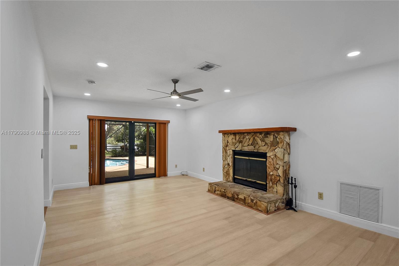 Amazing 4 Bedroom Lakefront Home with Grandfathered Deeded Dock! This spectacular 4-bedroom, 2.5-bath home features a spacious family room, dedicated laundry room, and a two-car garage with an oversized driveway that fits 6+ cars. Nestled on a beautiful lake lot, the backyard is a true tropical paradise complete with a rare, grandfathered deeded dock, newly updated in March 2024 along with a newly paved walkway. Inside, enjoy impact windows and doors throughout, fully renovated bathrooms (2018). The large family room includes a stunning stone fireplace and offers serene lake views. Step outside to a spacious screened-in pool and covered patio—perfect for relaxing or entertaining, all while overlooking the tranquil lake and fabulous dock. Also available For Rent.