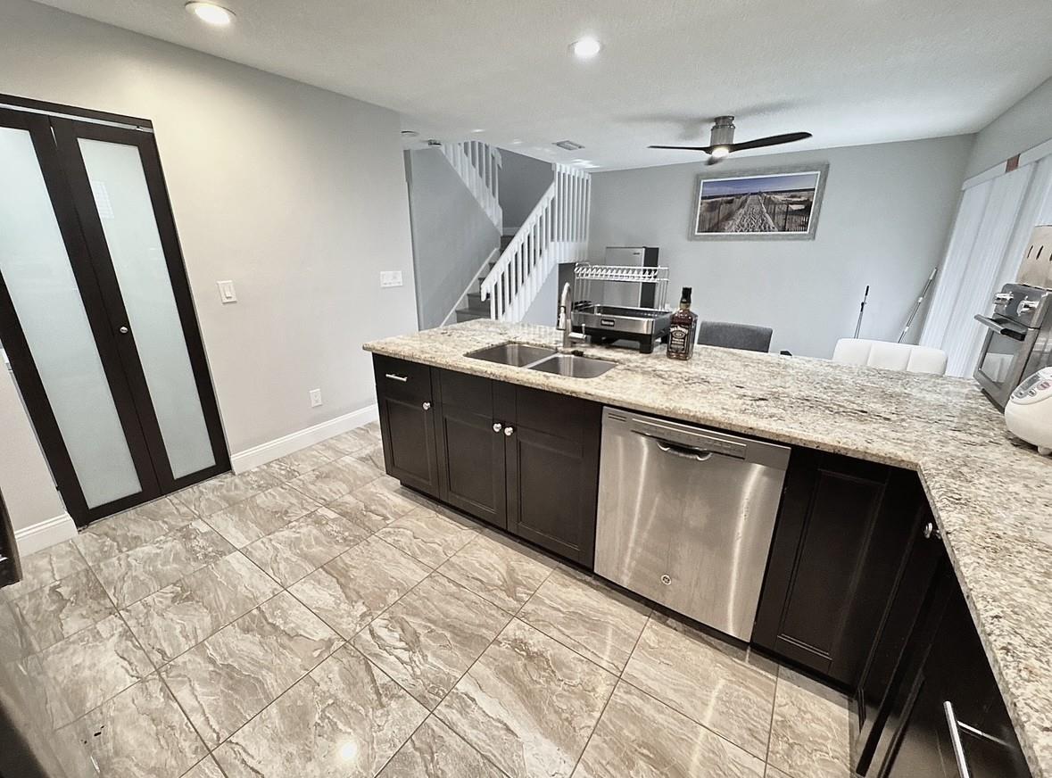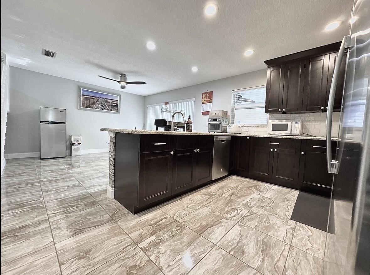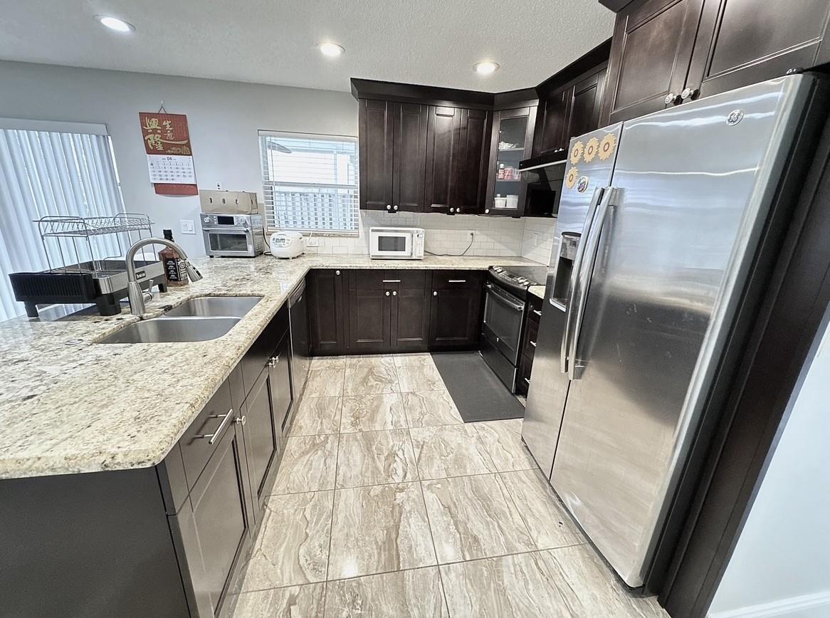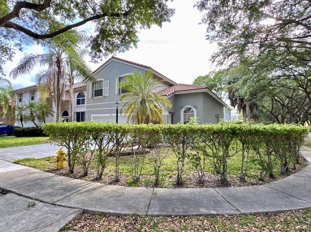 This lovely corner home has 3 beds/2.5 baths in a guard gated sought after community of Embassy Lakes in Cooper City. The kitchen features wood cabinet w. granite countertop, SS appliances & breakfast bar. Living room has a fireplace. Master suite has a walk-in closet, dual sink vanity, separate shower & soaking tub. Screened patio is perfect for relaxation or entertaining. Hurricane protection of accordion shutters & panels. HVAC in 2020, Roof in 2016, water heater & impact garage door in 2022. Embrace a life of comfort and convenience in this exceptional, amenity-rich community. Embassy Lakes amenities include gym, pool, kiddie pool, tennis/volleyball/basketball courts, playgrounds, fishing lakes & more. Centrally located to "A" rated schools, shops, restaurants, sport complex, park etc.