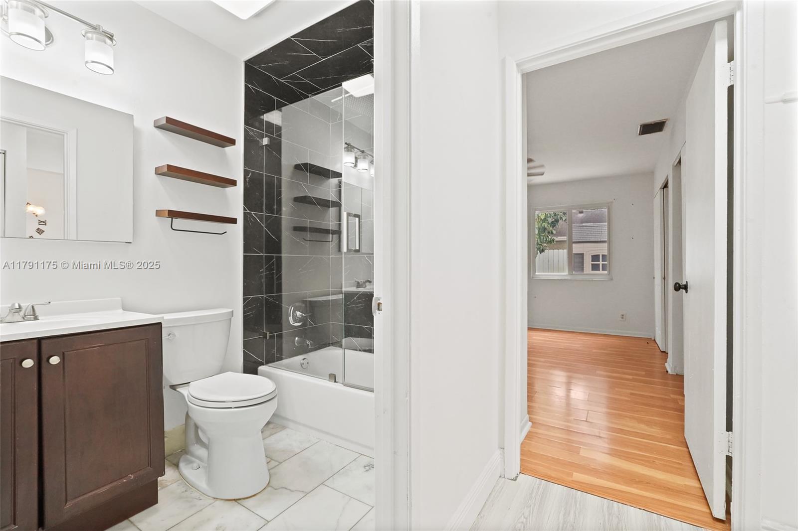 Priced to sell! Beautiful 2BR/2BA single-family home with garage in desirable West Boca neighborhood! Full IMPACT window and back doors. 2020 A/C. Remodeled kitchen (2021) with quartz counters and stainless appliances. Updated bath (2020) with marble floors and rainfall shower. Tile Floors throughout, Wood Floors in Bedrooms. Brand new water Heater (2025). Spacious fenced yard and patio. Quiet interior street with sidewalks. No mandatory membership fee and LOW HOA (~$206/ month) that includes Olympic pool, tennis, basketball, pickleball, playground, cable, and high-speed internet.