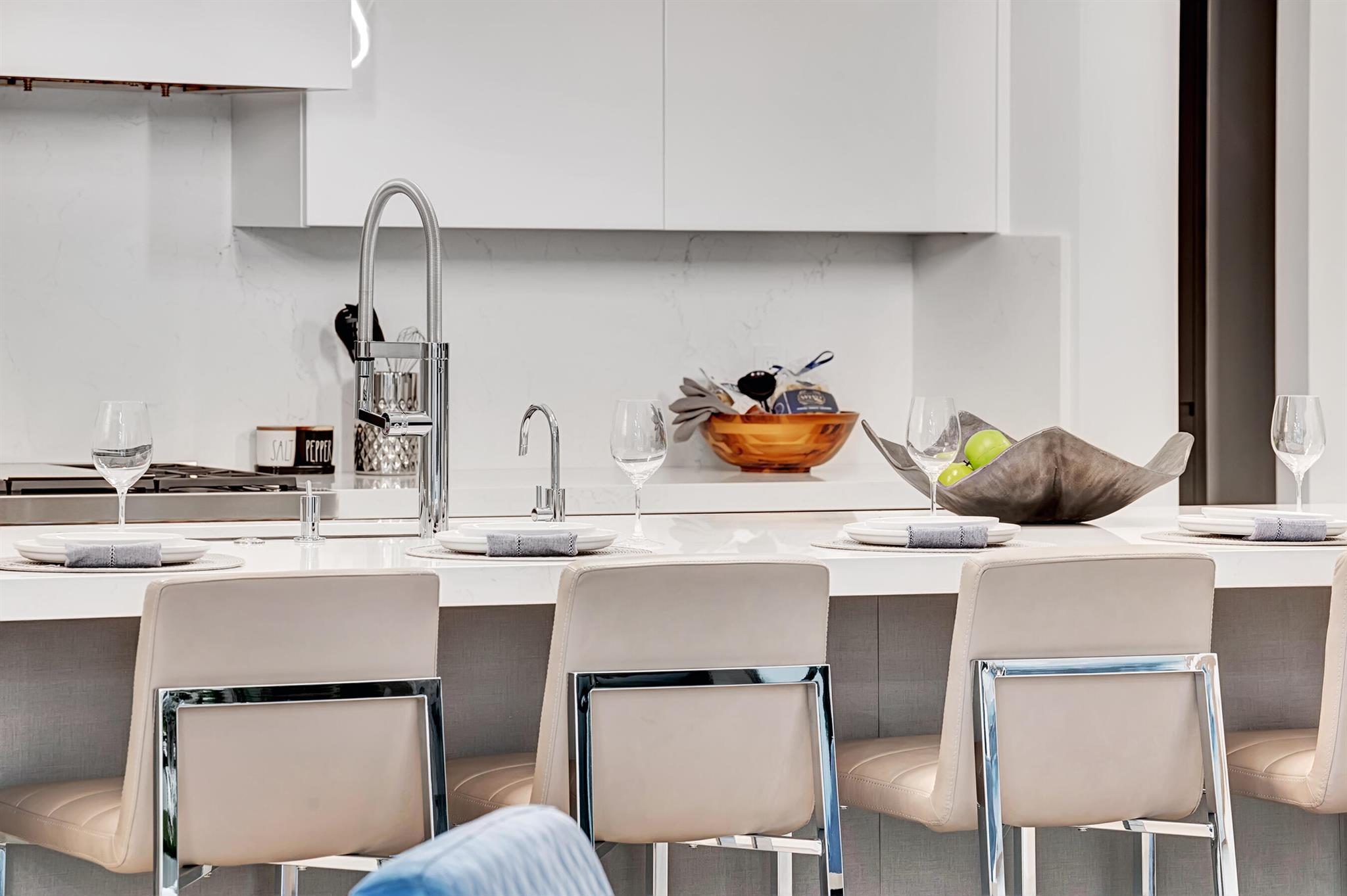 Indulge in the art of exquisite living, just a whisper away from the chic boutiques of Mizner Park and the vibrant pulse of Downtown Boca! This brand-new residence presents a sophisticated twist on Boca Villas living, where every detail exudes effortless elegance and playful charm. Imagine a sprawling floor plan gracefully unfolding around a breathtaking, oversized kitchen, a culinary masterpiece appointed with coveted Wolf and Sub-Zero appliances. From this epicurean haven, step into your own private tropical sanctuary, boasting a sleek marble-clad pool deck, a dazzling saltwater pool that beckons for leisurely dips, and abundant space to unwind or host dazzling soirees.A beautifully appointed first-floor suite offers delightful versatility - a serene haven for cherished guests or