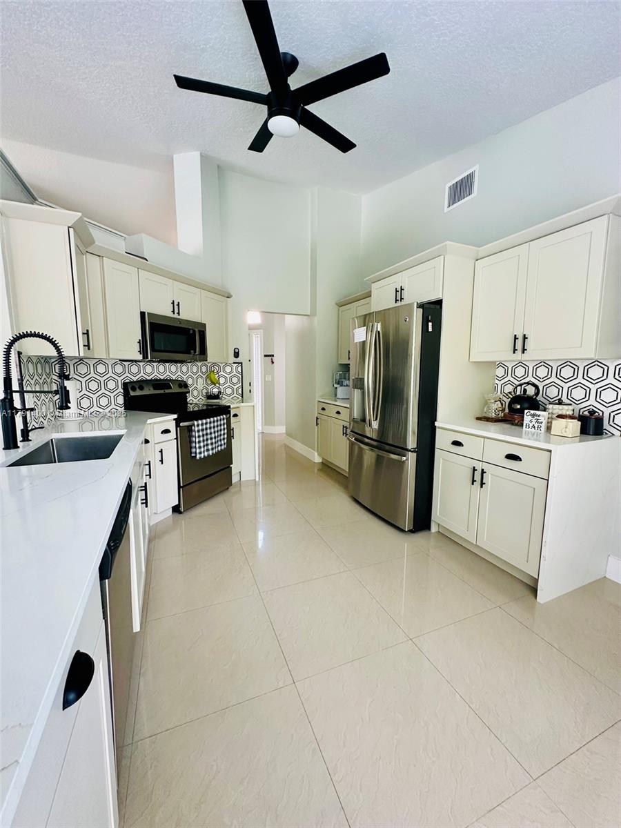 Discover resort-style living in this beautifully updated 3B/2.5B home, on a lushly landscaped large corner lot in the exclusive gated Boca Country Club. Renovated with style and care, it features updated flooring throughout, a stunning chef’s kitchen with light cabinetry, granite countertops, stainless steel appliances, and a designer tiled backsplash. Spa-inspired bathrooms, soaring cathedral ceilings, and an airy open layout enhance the appeal. The spacious master suite offers excellent closet space. Enjoy a saltwater pool, 2-car garage, separate laundry room, and low-maintenance living with lawn care and cable included. No mandatory membership—luxury living made easy. New Garage door & Roof: 2017; Saltwater Pool + Jacuzzi:2018; A/C & Accordian Shutters: 2019; Tankless Water Heater: 2020
