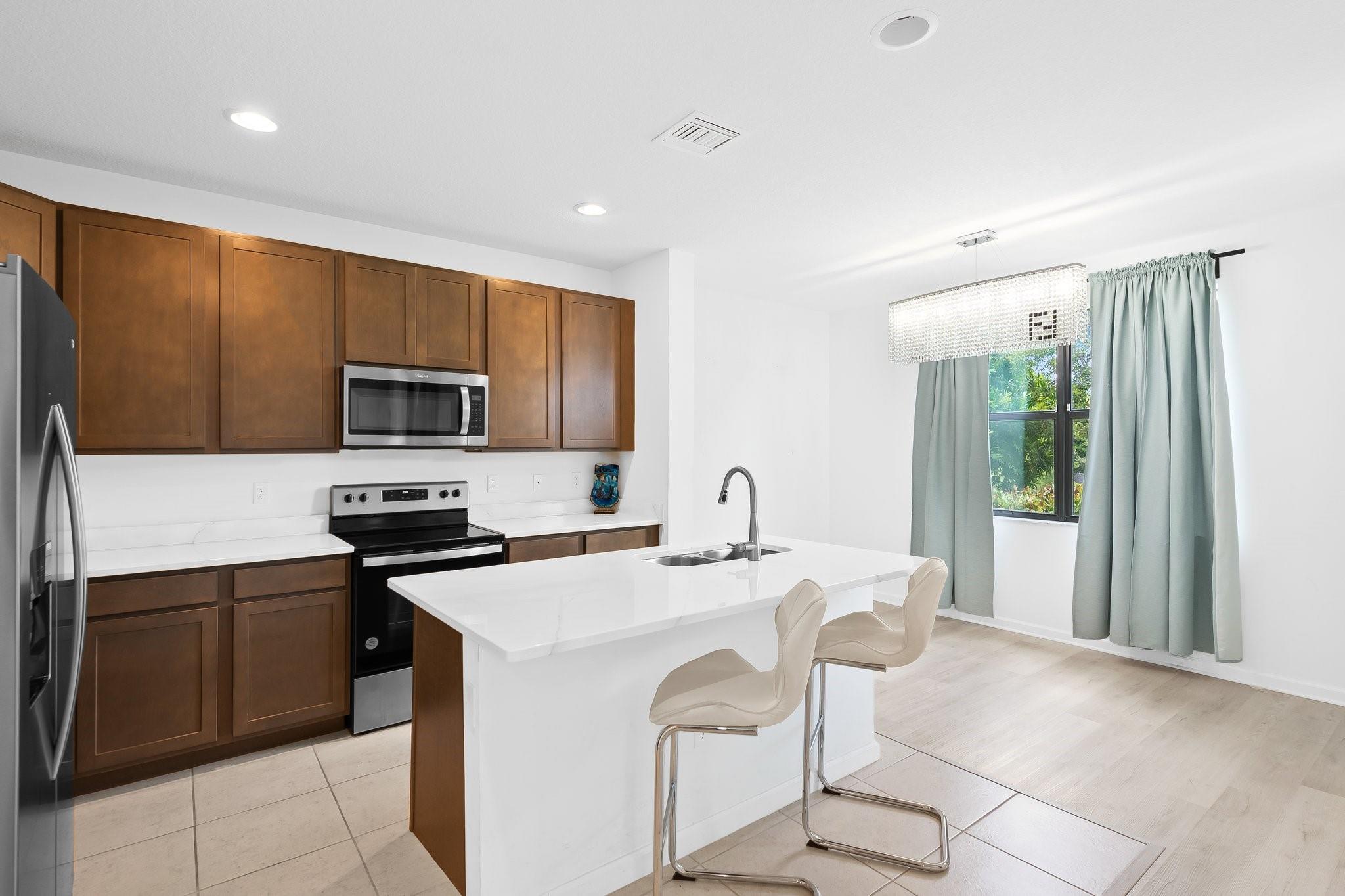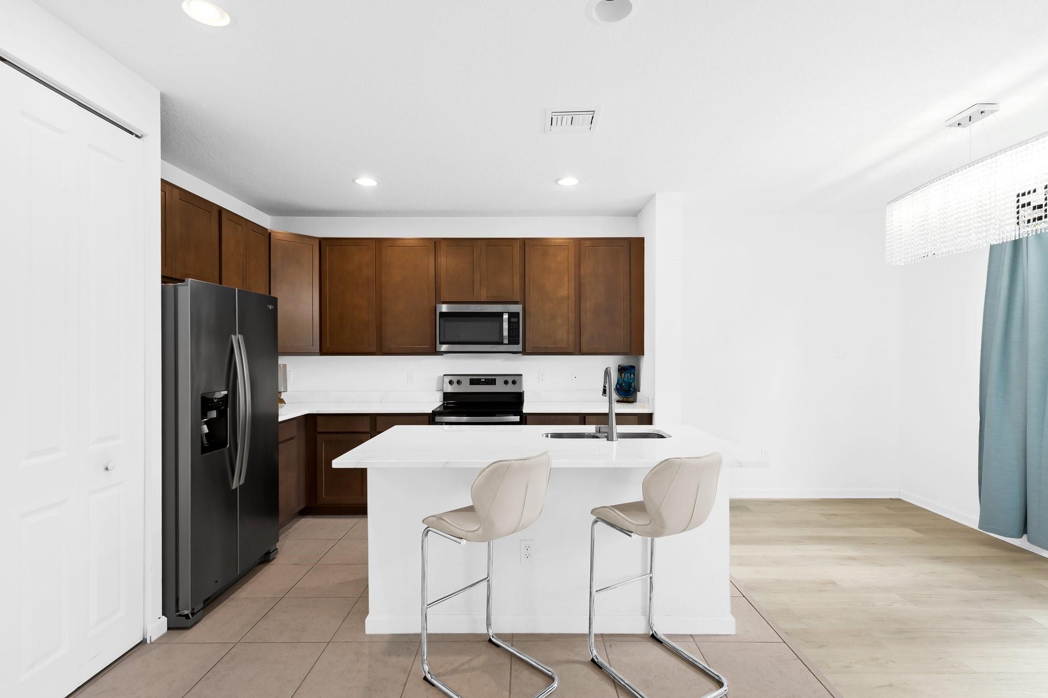 Price Correction! Come check out this roomy two-story waterfront home with double garage located in the gated community of Residences of Palm Aire. Impact windows & doors through the home Association Fee includes Water, Sewer, Trash, Cable Internet and Yard Maintenance. Built in 2022 this beautiful home offers an open kitchen with stainless appliances, stone counters, pantry & kitchen island. A roomy breakfast area is located off the kitchen. Tile floors in kitchen & baths, vinyl plank flooring in living areas. The upstairs master bedroom has a roomy walk-in closet, and a balcony overlooking the waterway. 2nd and 3rd bedrooms are accented with a tray ceiling laundry room with washer & dryer. This home has a nice private back yard with water view.