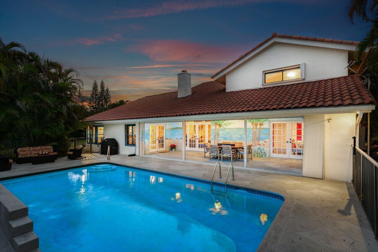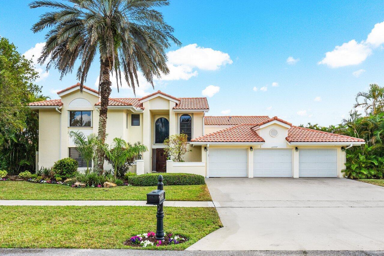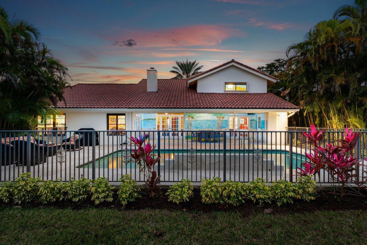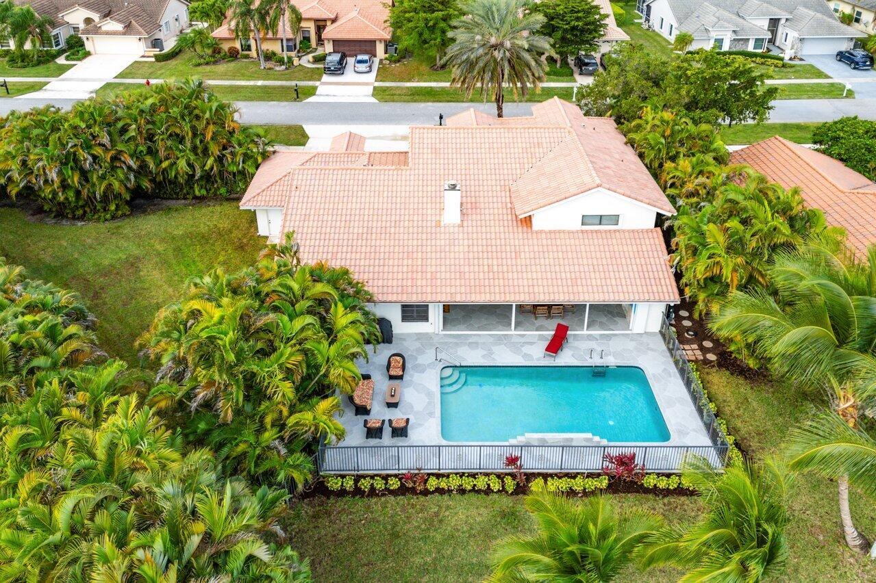 This exquisite residence located on a unique oversized private corner lot has recently undergone a comprehensive renovation just completed in April 2025. The renovation includes a complete repainting throughout, new bathrooms, a new kitchen featuring stainless steel appliances with new granite countertops, new flooring, 2 brand-new A/C units (April 2025), new lighting, a new front entrance and pool decking, new ceiling fans, a new sprinkler pump, and much more. It truly is a must-see.