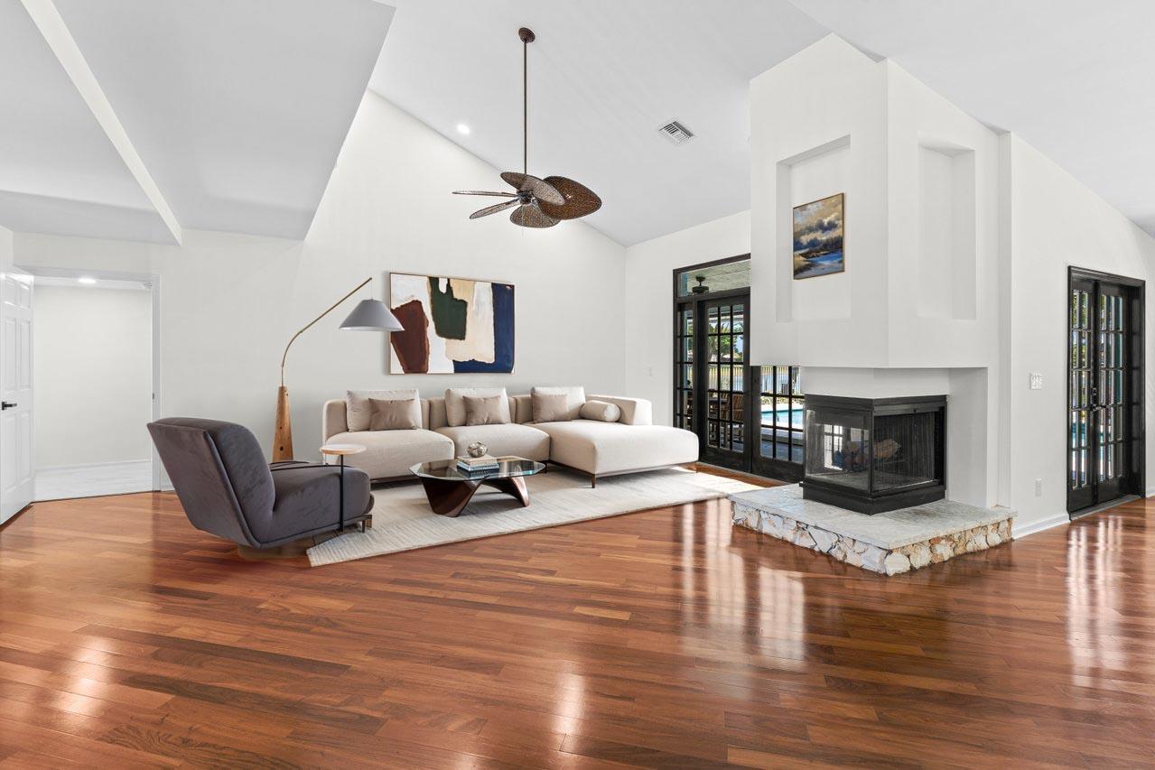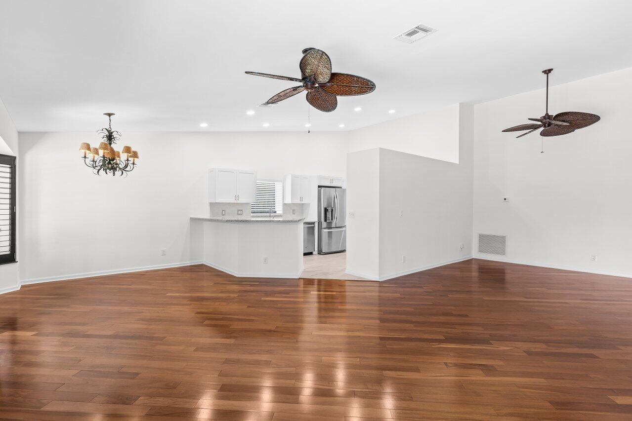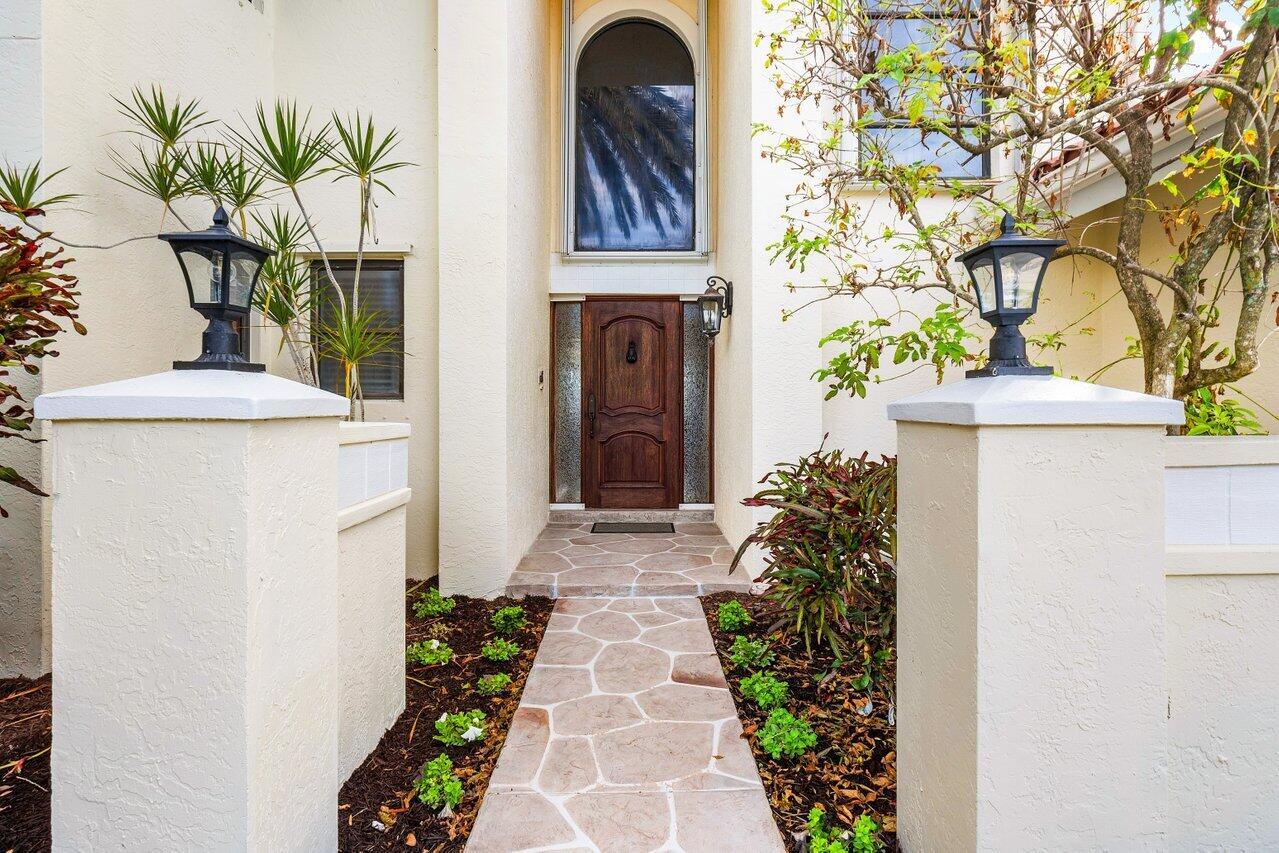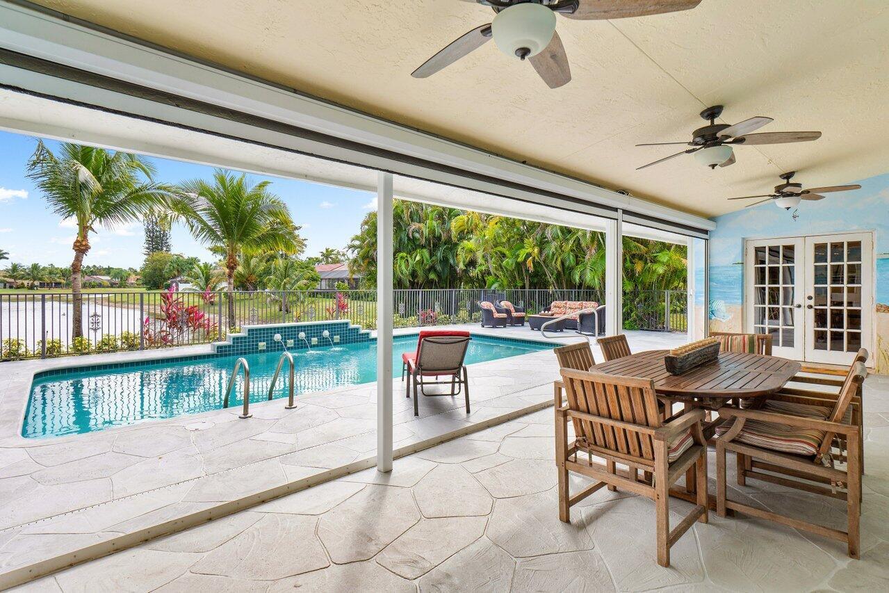 This exquisite residence located on a unique oversized private corner lot has recently undergone a comprehensive renovation just completed in April 2025. The renovation includes a complete repainting throughout, new bathrooms, a new kitchen featuring stainless steel appliances with new granite countertops, new flooring, 2 brand-new A/C units (April 2025), new lighting, a new front entrance and pool decking, new ceiling fans, a new sprinkler pump, and much more. It truly is a must-see.
