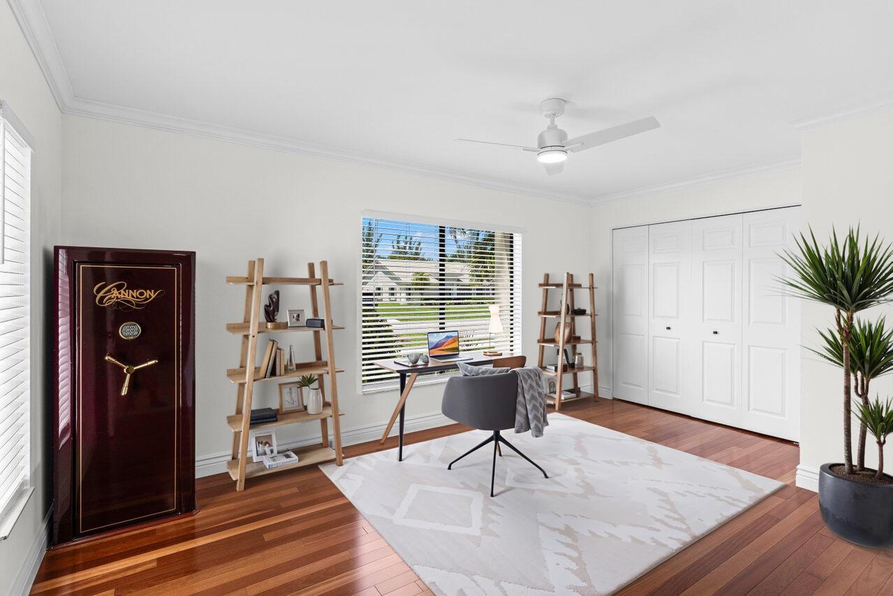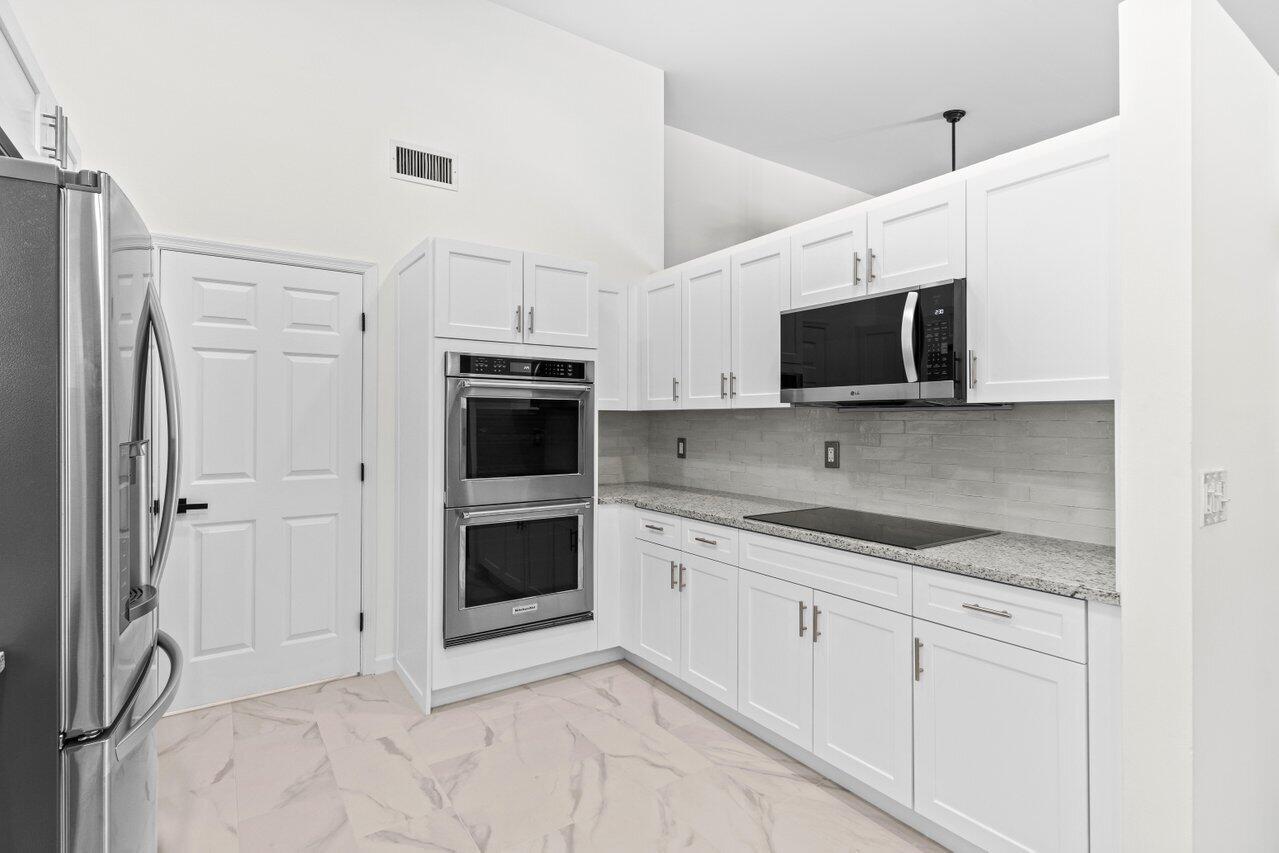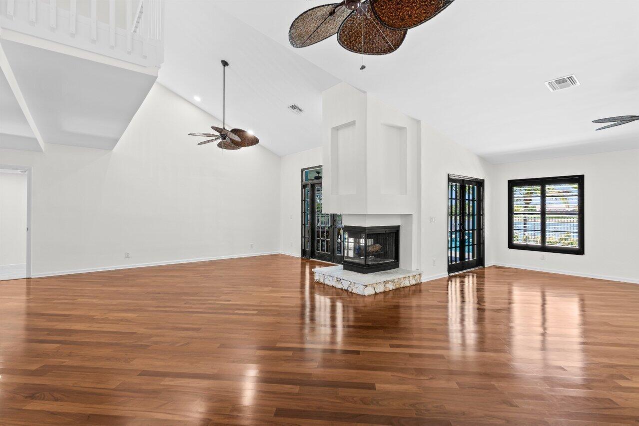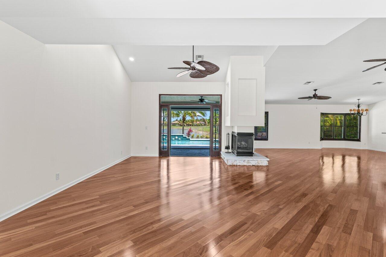 This exquisite residence located on a unique oversized private corner lot has recently undergone a comprehensive renovation just completed in April 2025. The renovation includes a complete repainting throughout, new bathrooms, a new kitchen featuring stainless steel appliances with new granite countertops, new flooring, 2 brand-new A/C units (April 2025), new lighting, a new front entrance and pool decking, new ceiling fans, a new sprinkler pump, and much more. It truly is a must-see.