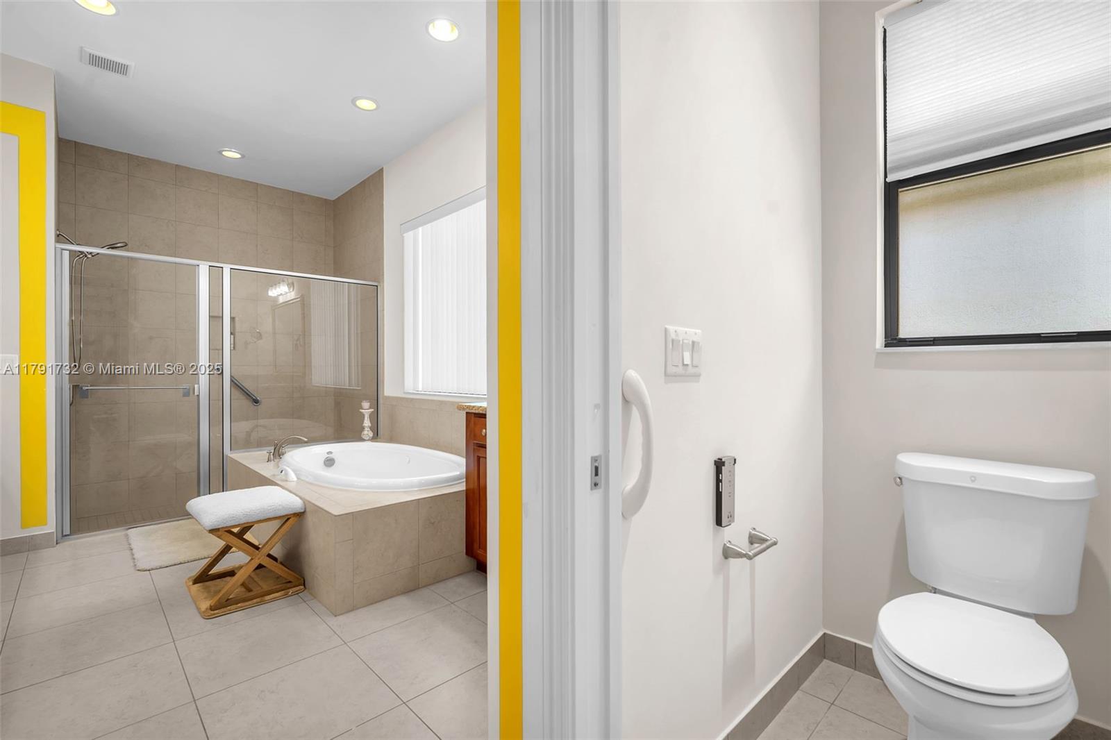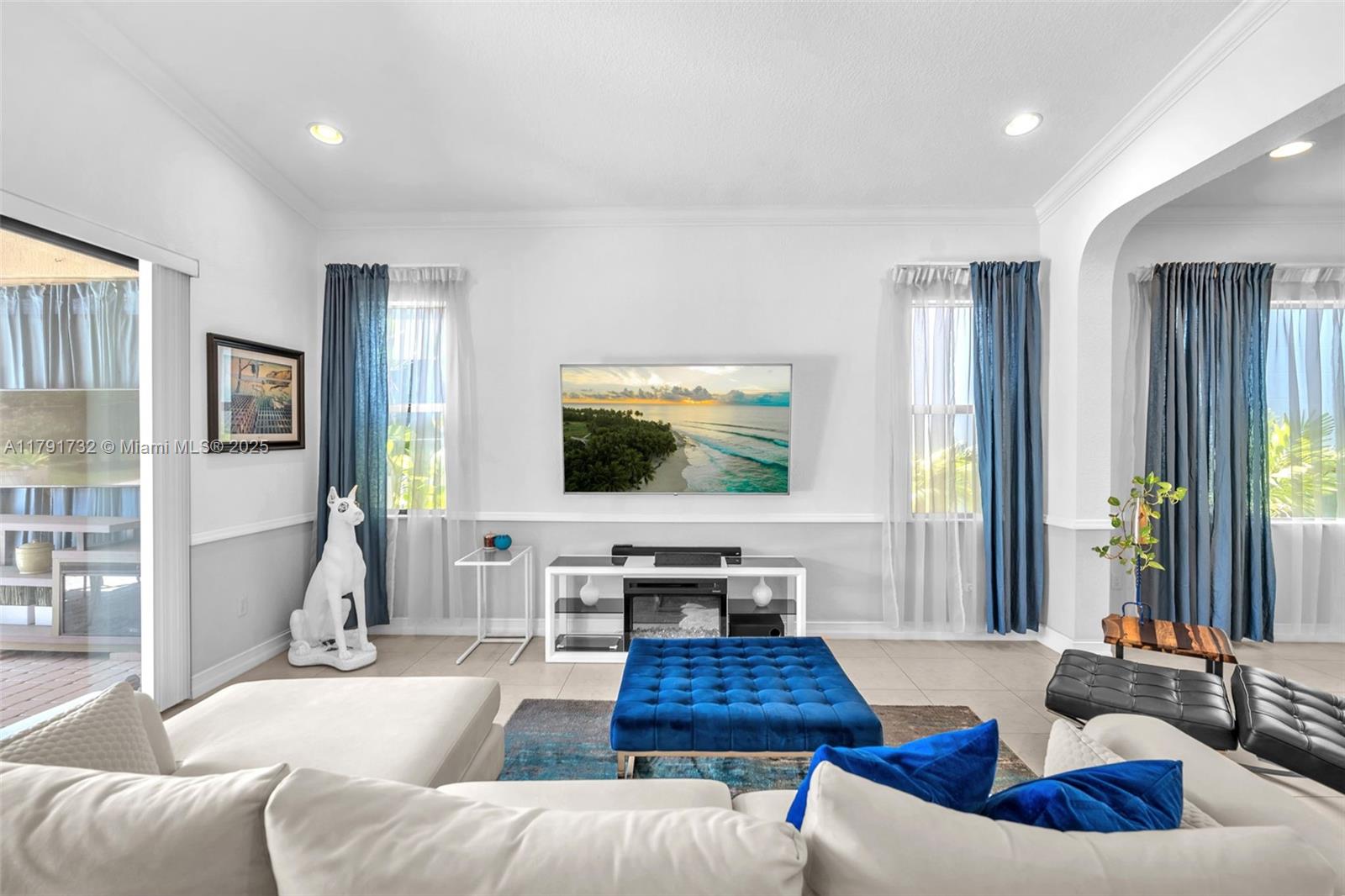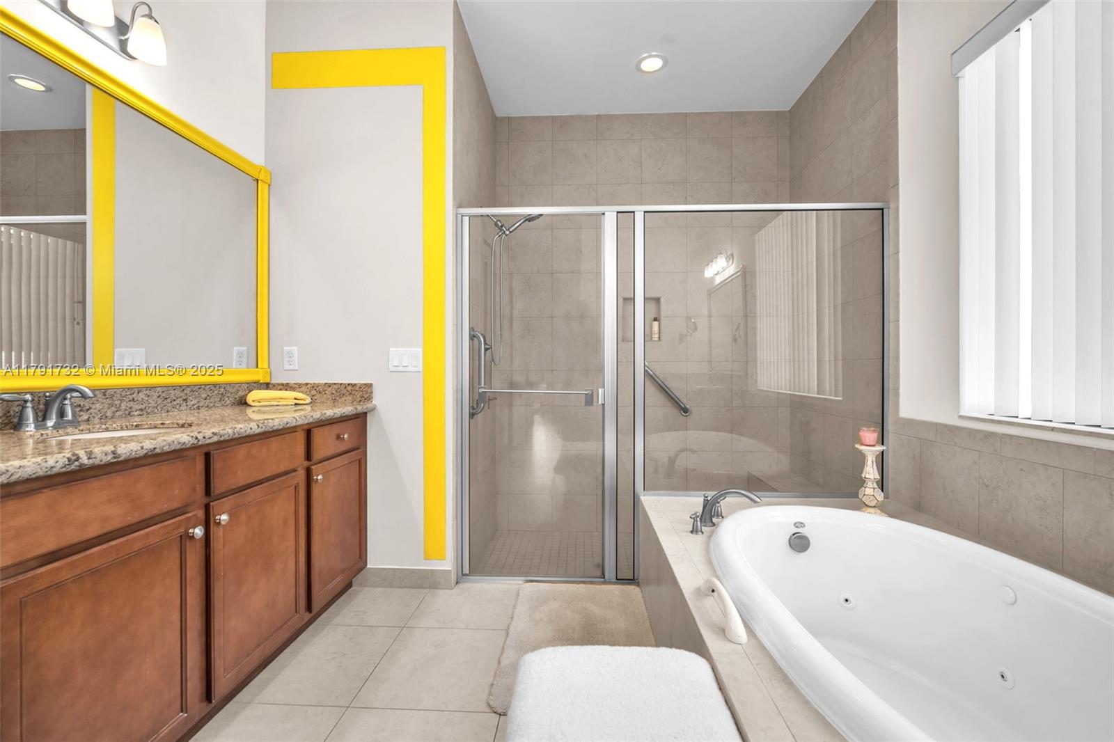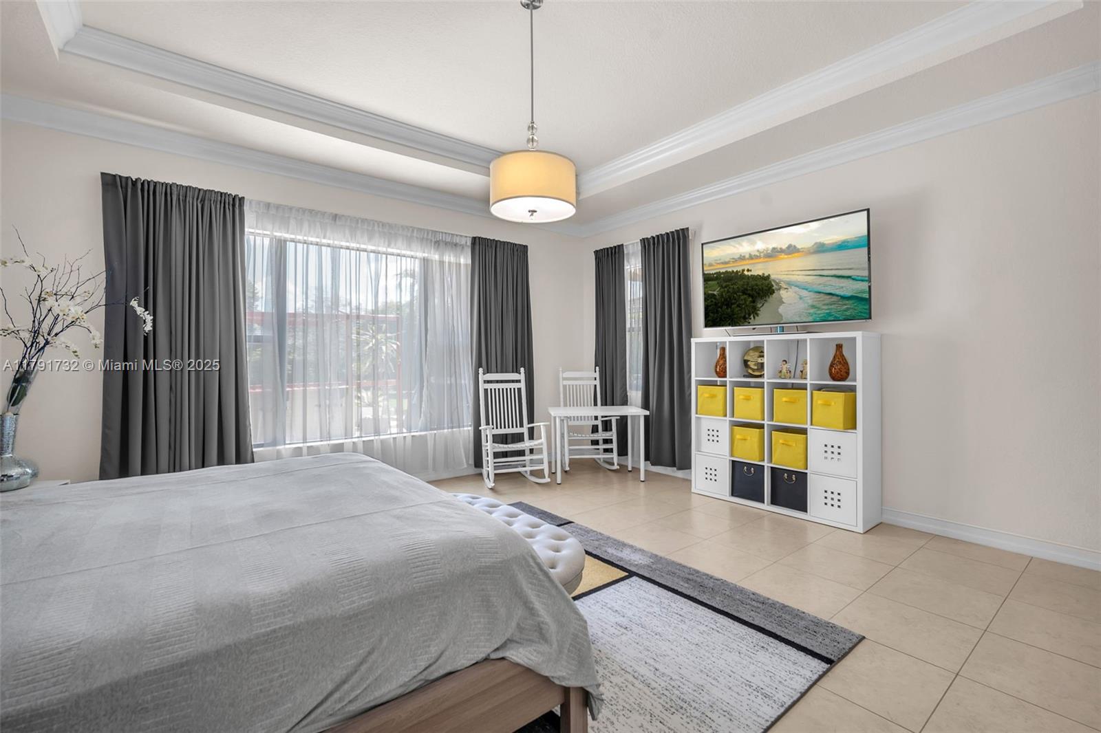Enter this modern, 2015 3/2.5 single floor home via a lush garden with orchid adorned palms & glass patterned door. Notice the wood ceiling trim and large porcelain tiles throughout. Kitchen boasts dark granite counters with contrasting cream cabinets & backsplash + under cabinet lighting & SS appliances. 2421 SF of living space is reflected in the oversized master with glass enclosed shower + jacuzzi & 2 custom closets. Back yard has large, covered lanai with pavers and plenty of space for a pool. The two-car garage is tiled & has AC. Driveway holds 3 cars. This home also includes high impact windows and alarm system. All this in the prestigious & gated Raintree community with gym & heated pool. You will be close to shops, restaurants, services & the I75.