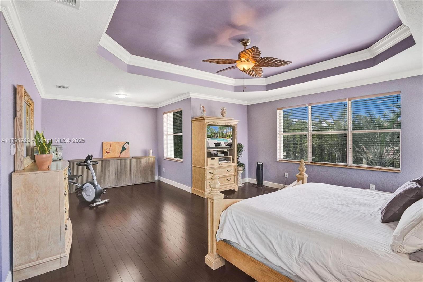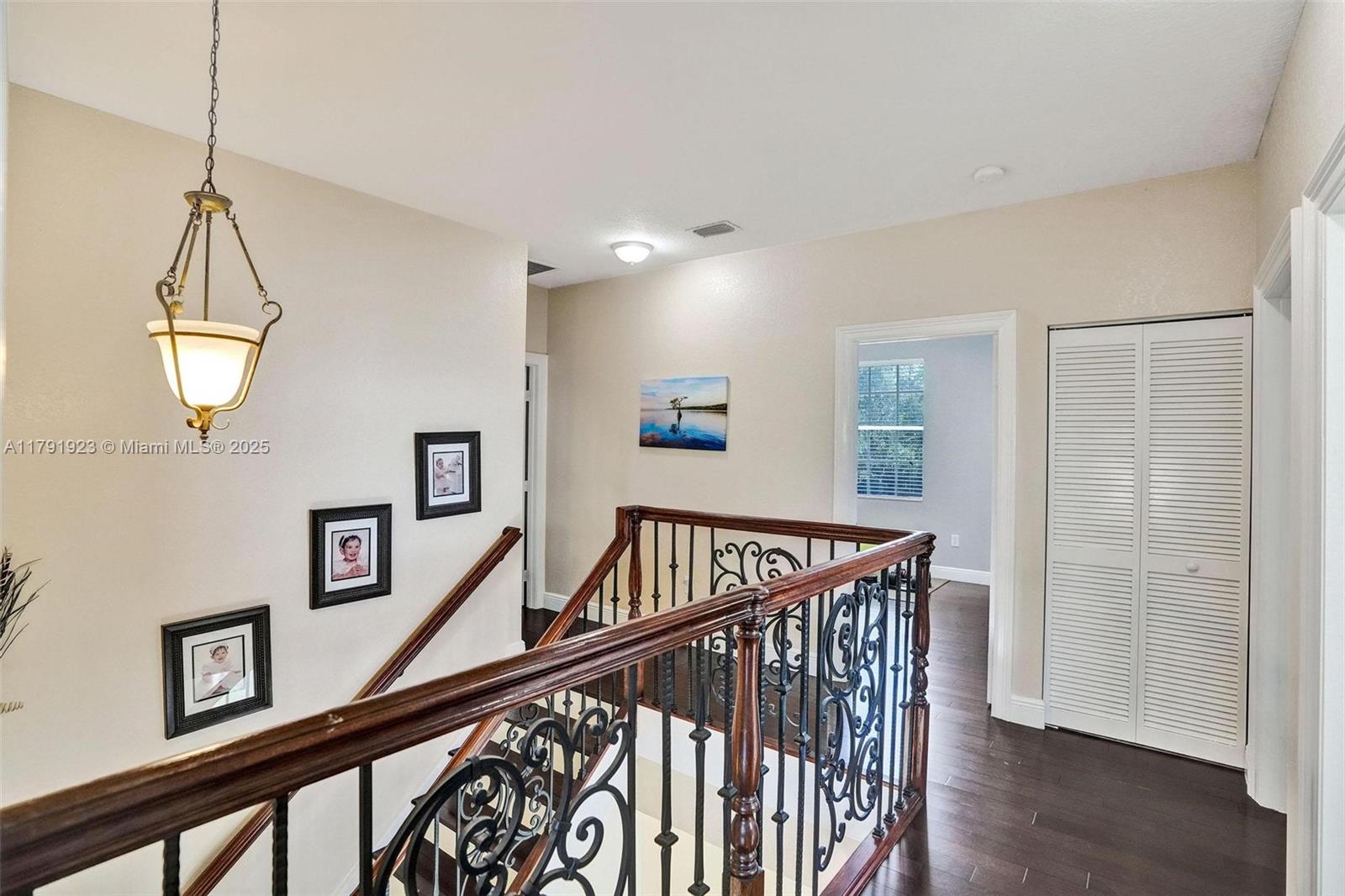 Impeccably updated and maintained by the original owners, this stunning 5 bedroom 3 bath home nestled in the Isles at Sunset Lakes has it all. 2022 metal roof complete with a 25-year transferable warranty. Newer split-zone AC system providing independent climate control for each floor. Beautifully landscaped outdoor space highlighted by a custom-built kitchen and bar, perfect for gatherings. Saltwater pool system, recently resurfaced and equipped with new components. Enormous master suite featuring dual walk-in closets with built-in storage. Solid wood flooring graces the upper level, while elegant tile flows throughout the first floor. 24/hr manned gates with roaming security. All "A" Schools.
