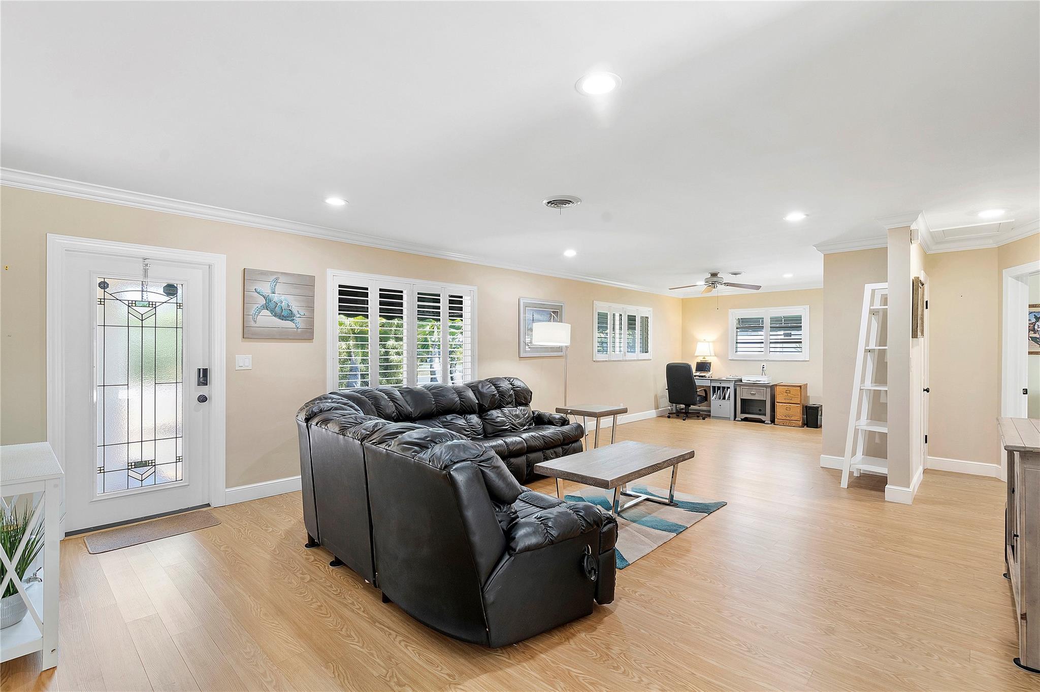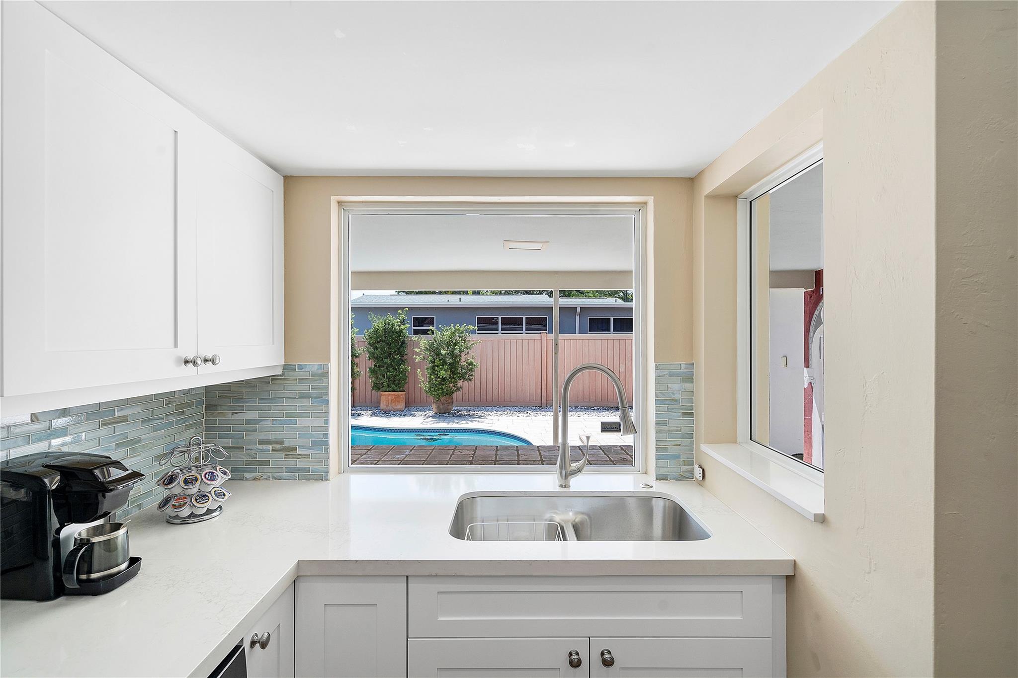 **PRISTINE** renovated one-story single family **NO HOA** pool home with large fully fenced-in yard in sought-after Pompano Beach neighborhood, with attached workshop/man-cave/expanded master closet -- MUST SEE!! This GREAT home features modern upgrades including a white shaker wood kitchen, quartz counter tops, glass backsplash, stainless steel appliances, extended dining room cabinetry/serving area, impact windows & doors plus accordion shutters throughout, wood flooring throughout, upgraded bathrooms, upgraded closet doors with custom closet shelving, plantation shutters throughout, tank-less hot water heater, and **WONDERFUL** salt-water pool & backyard OASIS!! NO restrictions, all ages, & 3 miles to the beach! Make this your new home-sweet-home, investment property, or Airbnb!