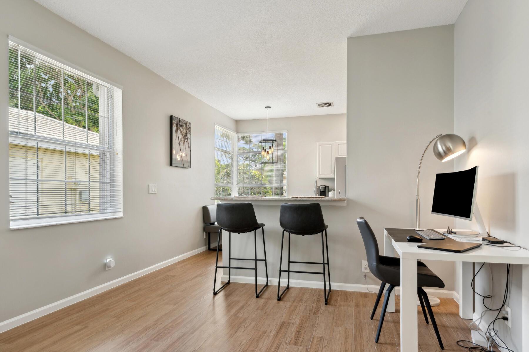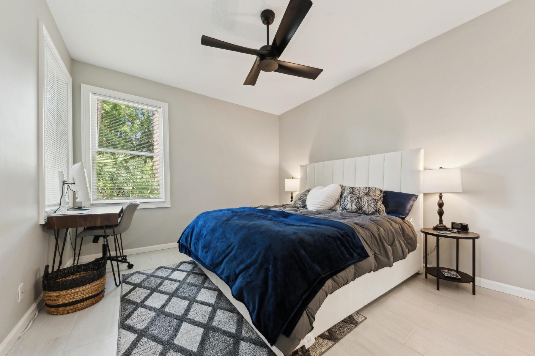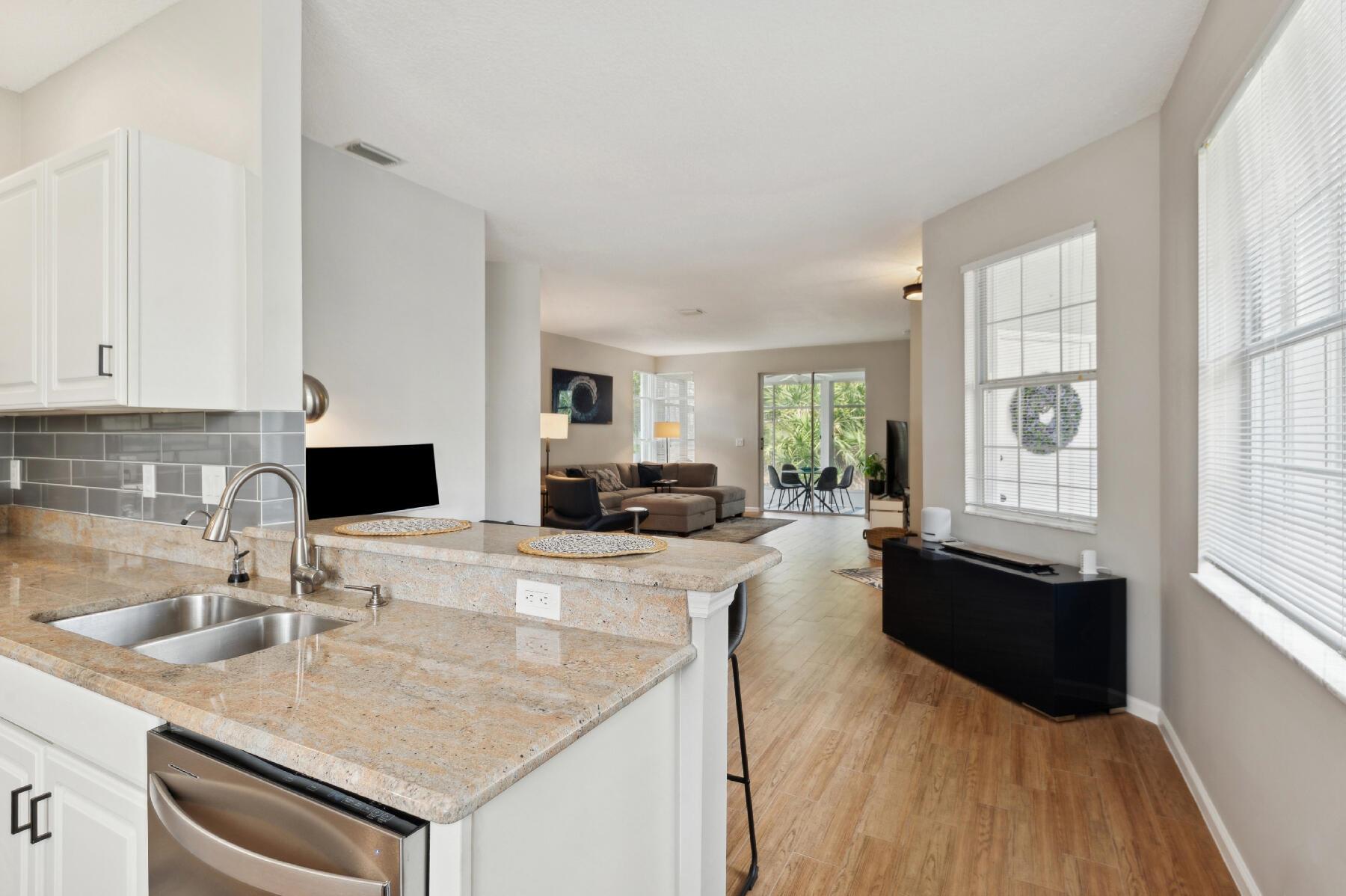 Open floor plan, all tile floors. Clean, modern finishes. Kitchen appliances replaced in 2024 (Induction Oven), large, deep Floor-to-Ceiling Pantry. Contemporary Bathrooms updated in 2024. Split bedrooms, Primary bedroom & Guest bedroom flooring added in 2023. There is a wardrobe in 3rd bedroom for short-stay guests or use this flexible space as an office or den. Plenty of storage with a large closet in the hallway. Tile roof replaced in 2014 and is pressure cleaned twice a year by the HOA, No leaks! Air conditioning system installed in 2009, maintained regularly. A true sanctuary with a preserve in back, lots of butterflies & birds! Accordion Shutters surround the home and the patio also has rolldown shutters. Lawn Care, Fiber Optic Cable/Internet included in HOA fees. Move-in Ready.
