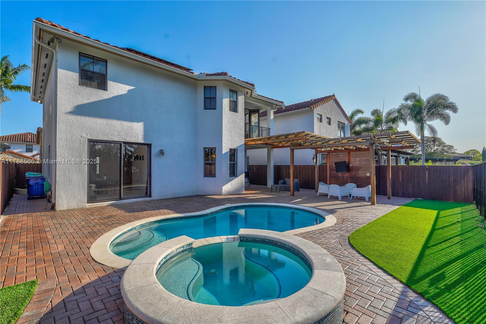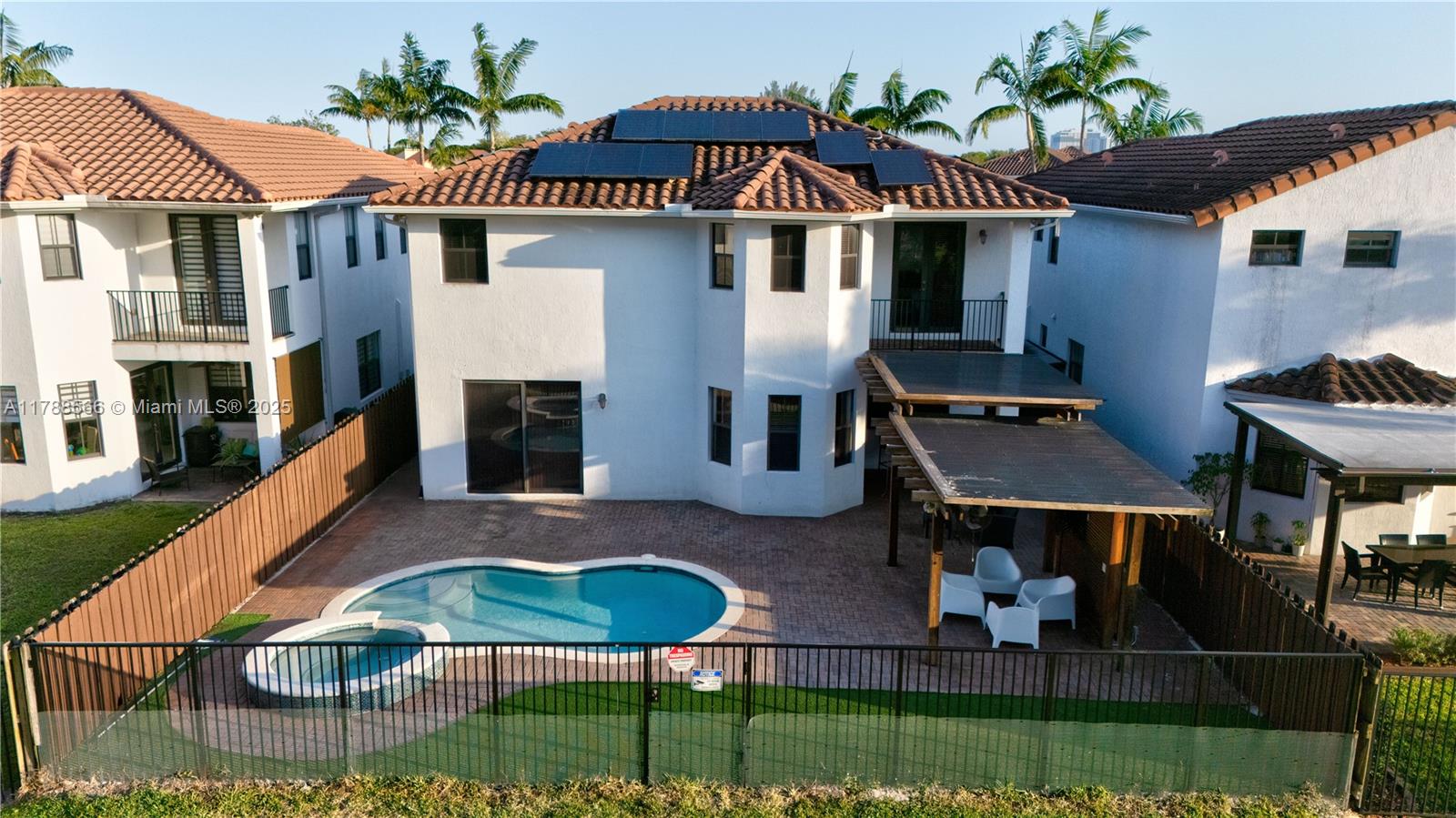 Beautifully maintained 4BR/3.5BA two-story home in the exclusive Las Ramblas community. Features solar panels, porcelain tile flooring, a gourmet kitchen, and spacious living areas. Oversized master suite with balcony and water view. Private backyard oasis with pool, jacuzzi, pergola, and lake views. Community offers 24/7 security, clubhouse, gym, tennis, and playground. Prime location near Dolphin Mall, MIA Airport, and major highways