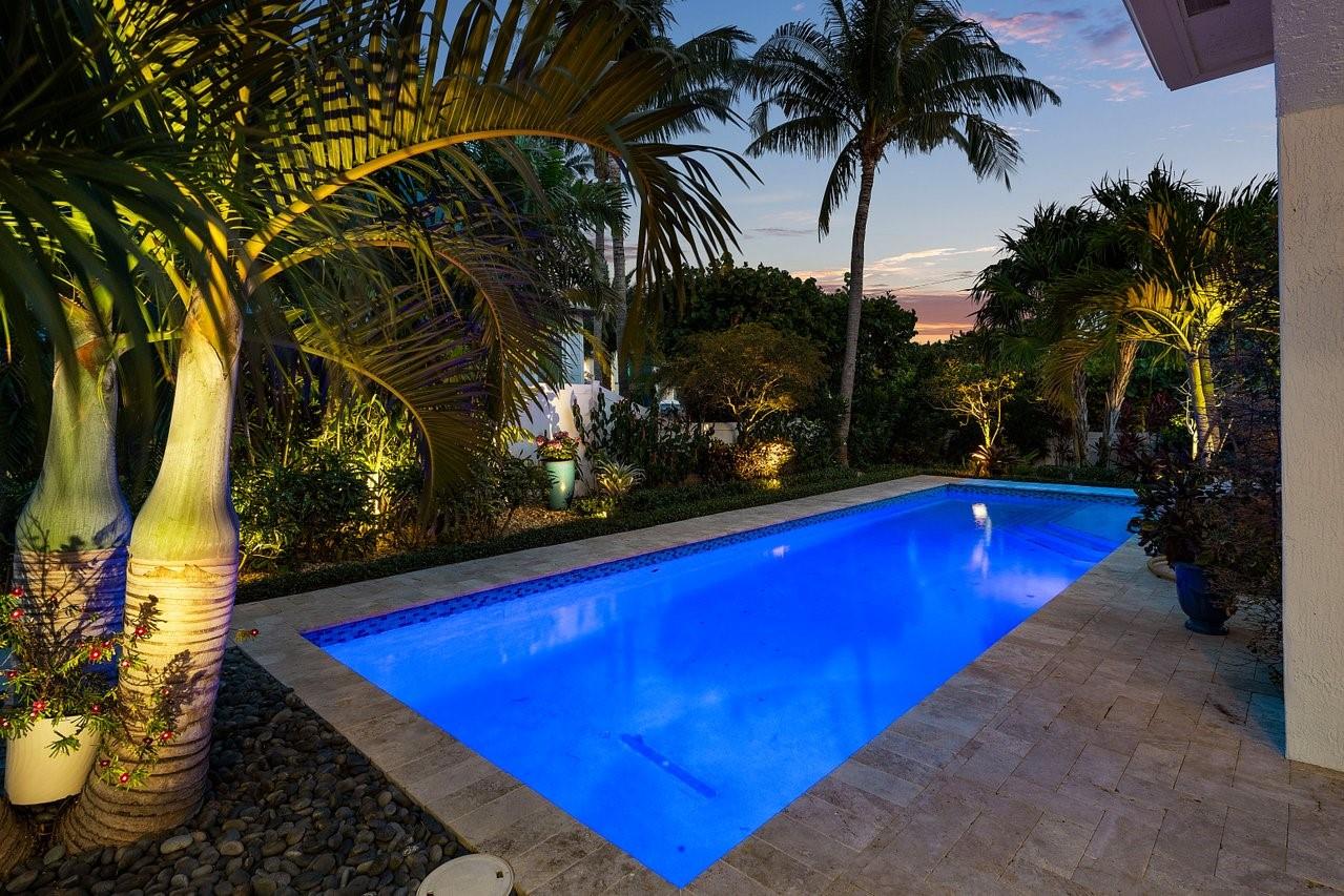 This stunning Key West-style residence captures the essence of coastal living with a perfect balance of formal and relaxed influences. From the moment you arrive with its inviting curb appeal—with its charming front door, shutters, & metal roof you know this home is special. Offerings: Den/Office, Playroom/Gym, Soaring ceilings, Walls of impact windows & Glass doors, 1st Floor primary suite, Sunlit open living spaces, Crisp white island kitchen with premium appliances including a gas range, Whole house water-filtration system (removes fluoride), Wood flooring, Balcony & A seamless indoor-outdoor flow. The tropical backyard features a heated & chilled pool & lush landscaping. The magic begins when the sun sets with landscape lighting. Short stroll to dining, shopping & entertainment.