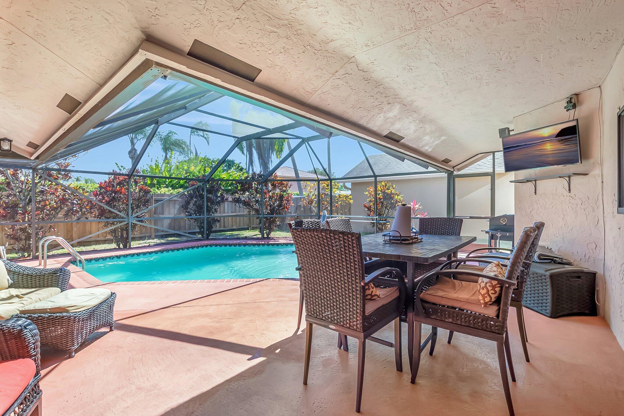 Welcome to this charming 3 bedroom, 2 bathroom home offering 1,459 square feet of well-designed living space in popular West Boca Raton. Step outside to your private, screened-in backyard oasis featuring a sparkling pool and fabulous covered patio ideal for both relaxing and entertaining. This home is walking distance to an elementary, middle and high school, popular shopping centers, and everyday conveniences. Just minutes away, South County Regional Park offers a wide range of amenities including large playgrounds, a dog park, sports facilities, a seasonal water park, live events, and a scenic public golf course. Don't miss the opportunity to put your personal touch on this home and live in one of Boca Raton's most desirable communities!