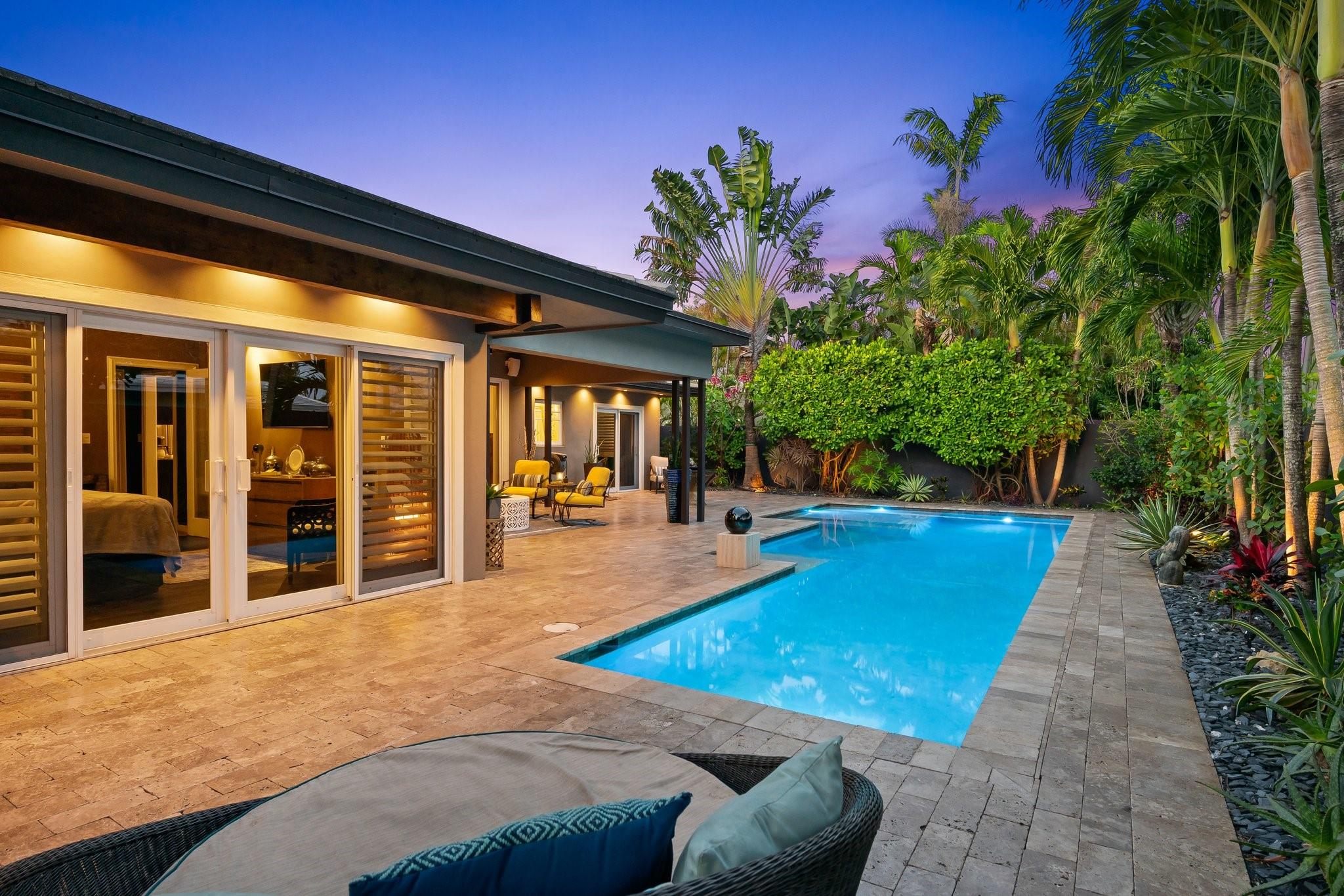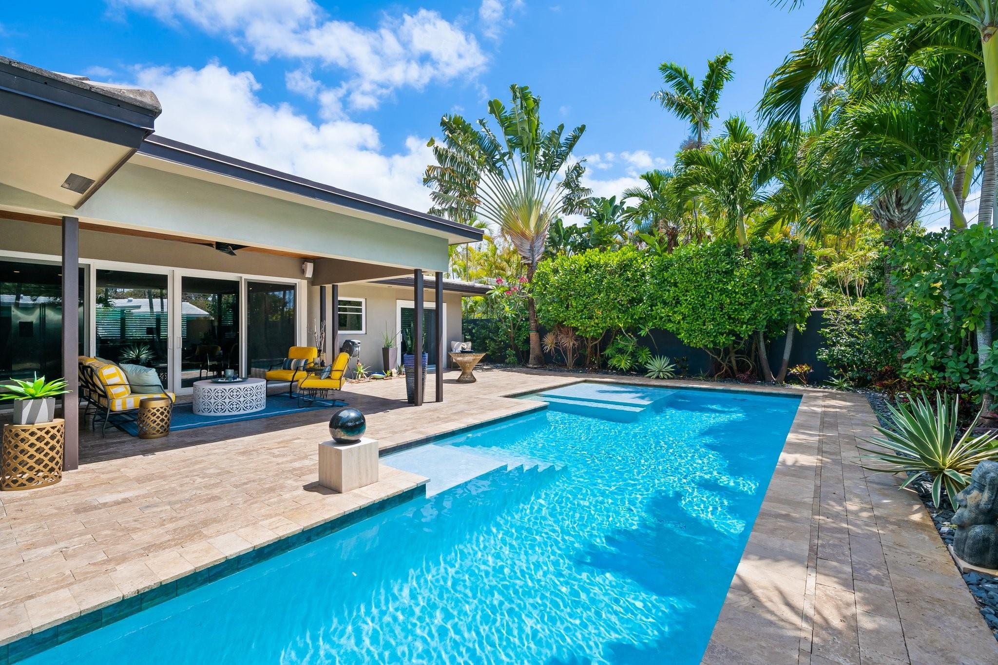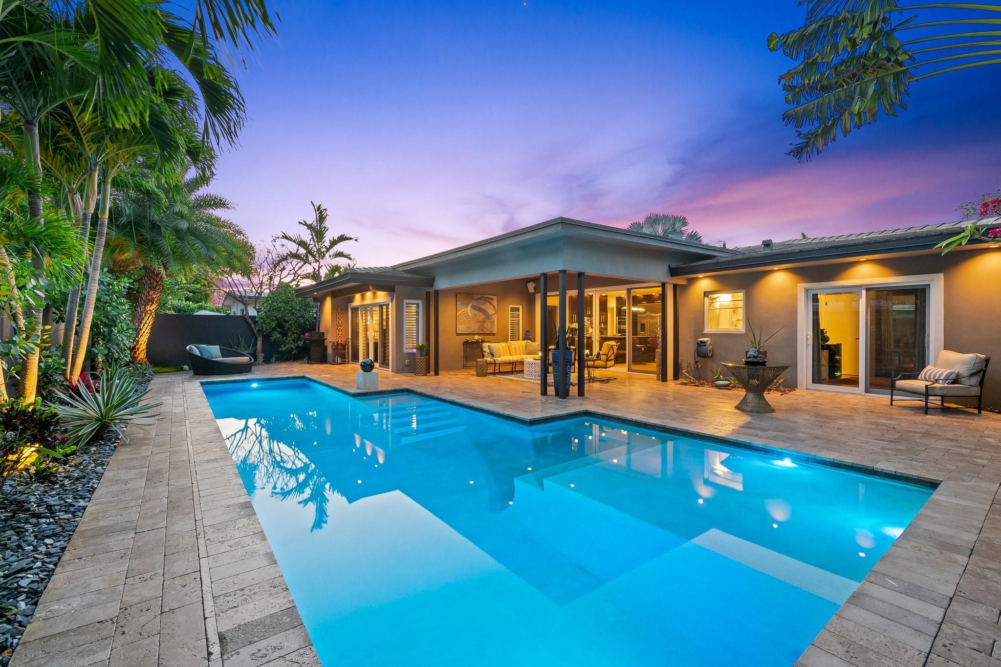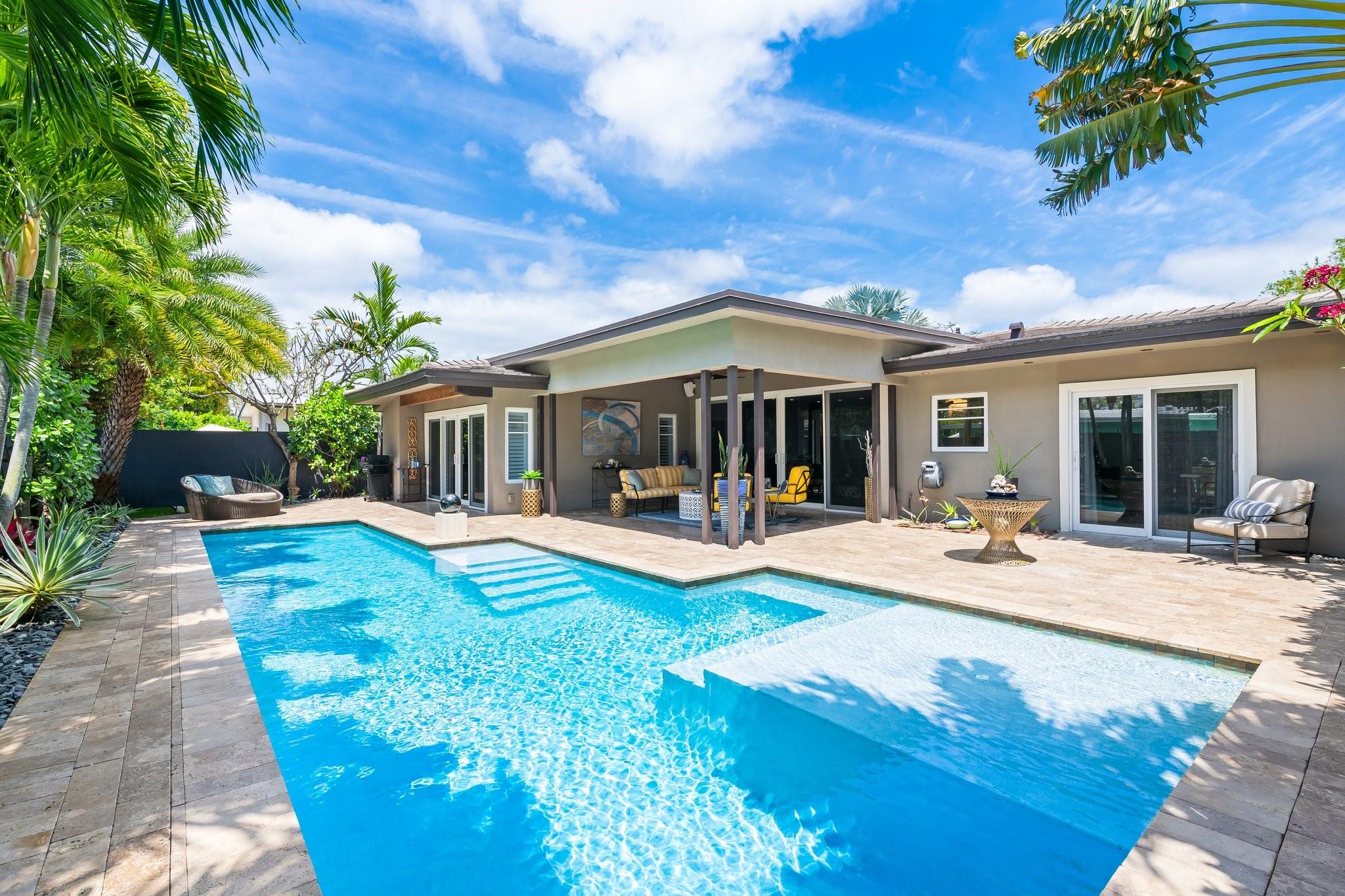 Step into a world of contemporary elegance and tropical charm. With 4 bedrooms & 3 baths, an oversize resort like pool, this meticulously designed home features a vaulted ceiling and abundant natural light, creating an airy, inviting atmosphere. The gourmet kitchen, with its sleek cabinetry and high-end appliances, is a culinary enthusiast's delight. Unwind in the luxurious living spaces, adorned with chic furnishings and artistic touches, spa-like bathrooms, including a stunning glass-enclosed shower with a tropical view, offer a daily retreat. The generously sized bedrooms provide peaceful havens for relaxation. With its perfect blend of style and comfort, this home isn't just a place to live—it's a lifestyle upgrade that reflects your aspirations and success. Minutes to beach & shopping