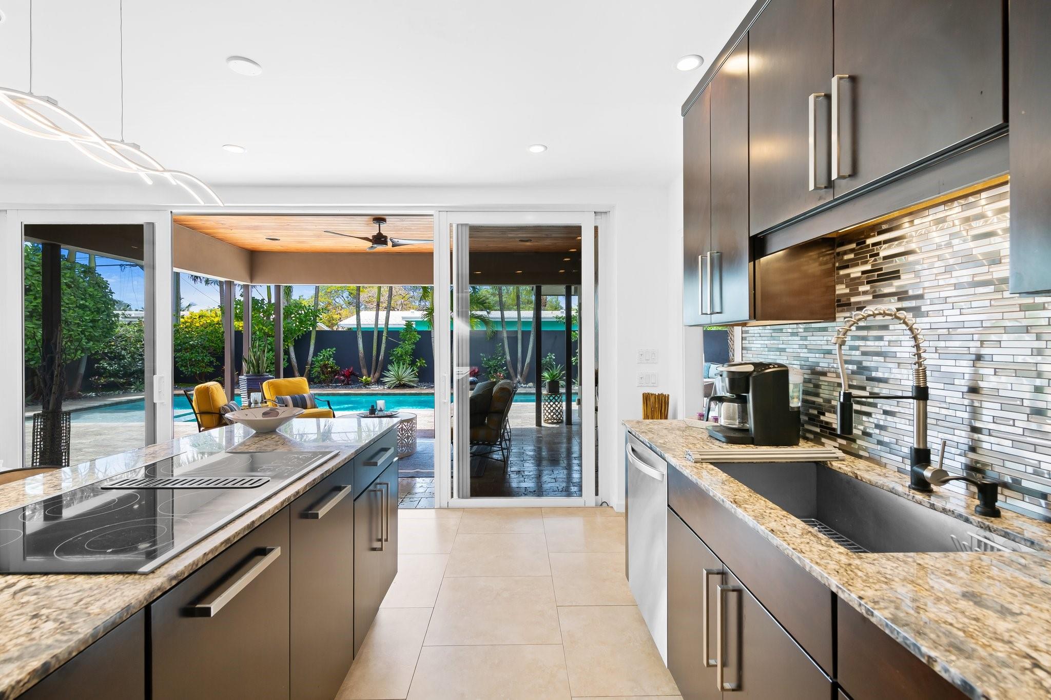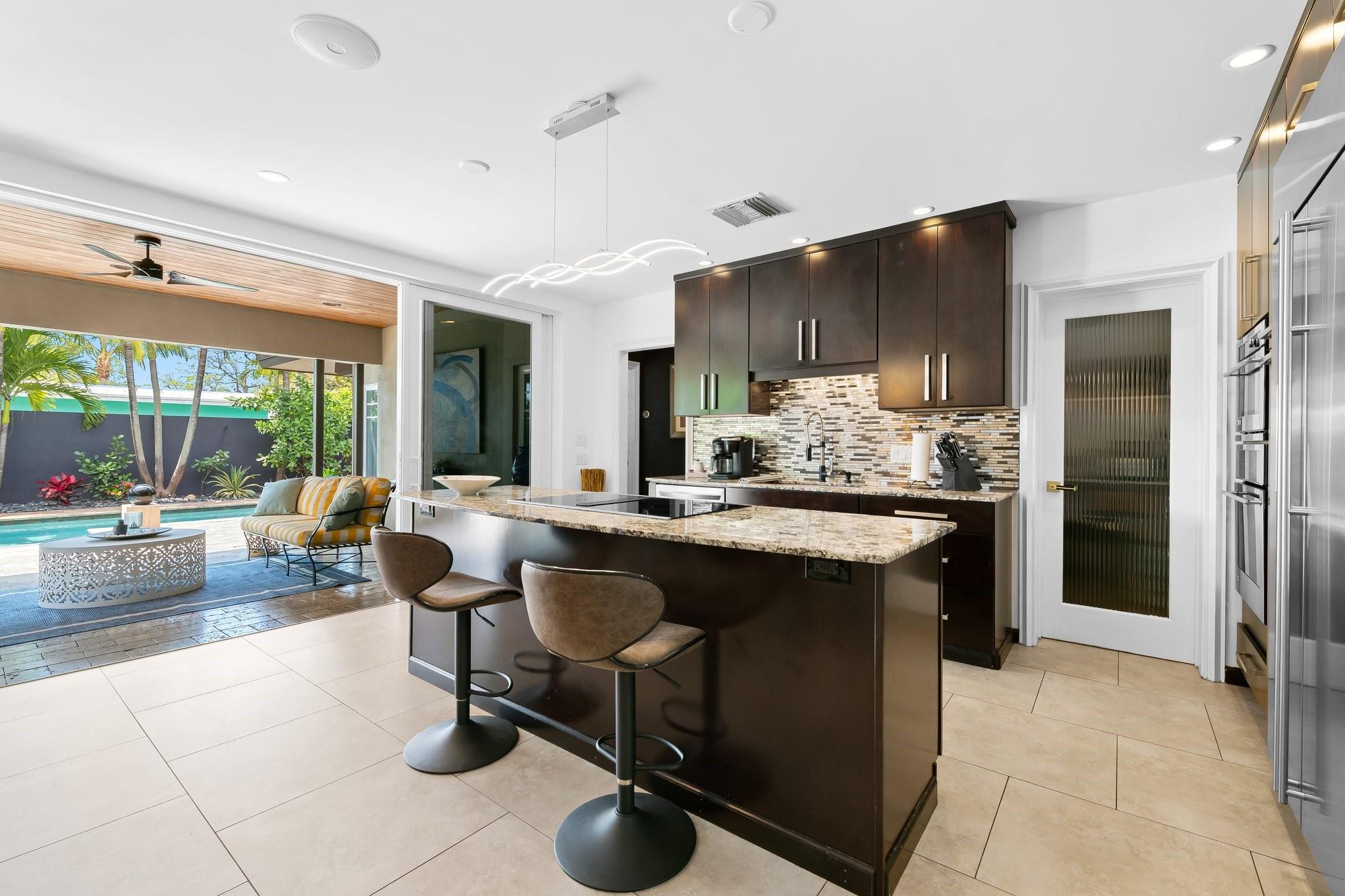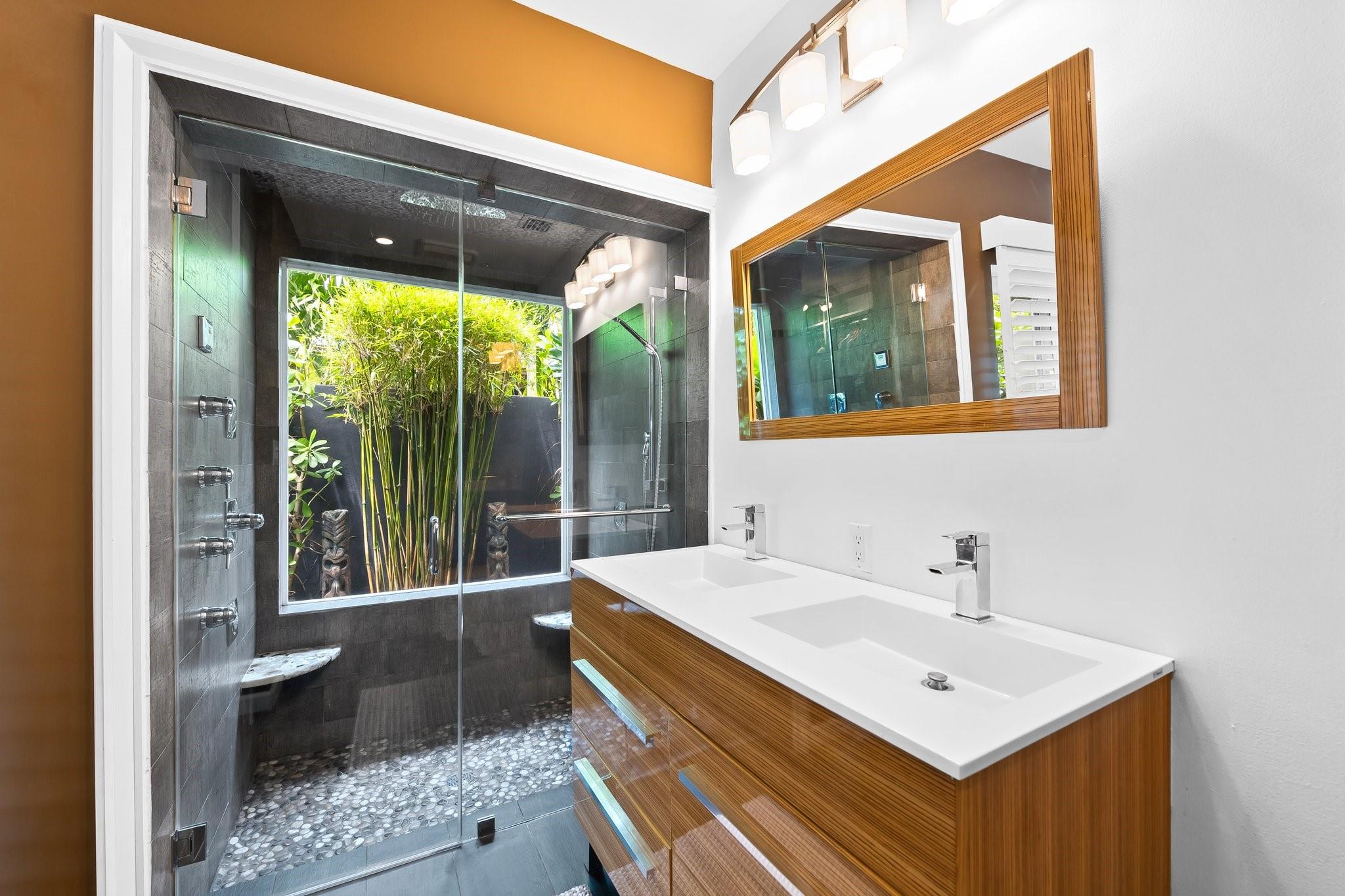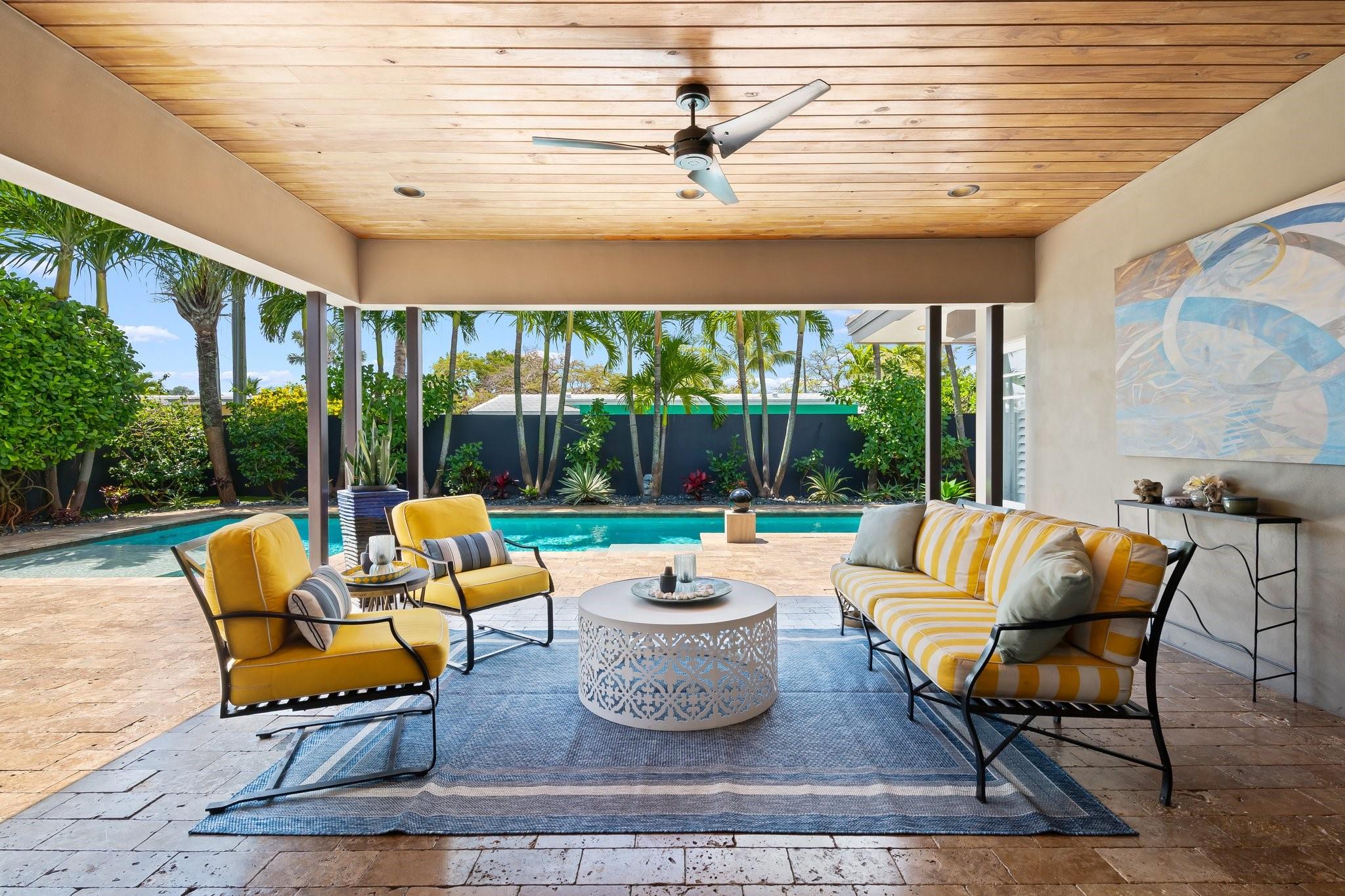 Step into a world of contemporary elegance and tropical charm. With 4 bedrooms & 3 baths, an oversize resort like pool, this meticulously designed home features a vaulted ceiling and abundant natural light, creating an airy, inviting atmosphere. The gourmet kitchen, with its sleek cabinetry and high-end appliances, is a culinary enthusiast's delight. Unwind in the luxurious living spaces, adorned with chic furnishings and artistic touches, spa-like bathrooms, including a stunning glass-enclosed shower with a tropical view, offer a daily retreat. The generously sized bedrooms provide peaceful havens for relaxation. With its perfect blend of style and comfort, this home isn't just a place to live—it's a lifestyle upgrade that reflects your aspirations and success. Minutes to beach & shopping