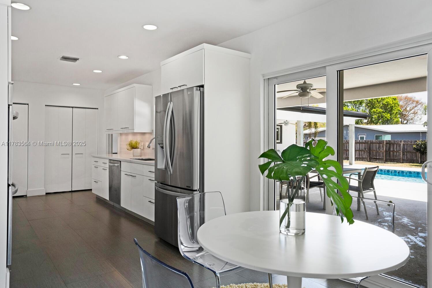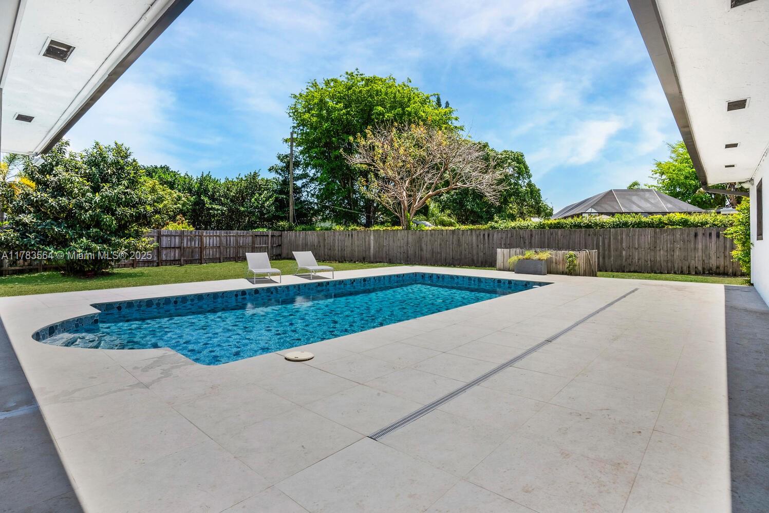 Welcome to this completely remodeled North Palmetto Bay Jennings pool home, situated on a ½-acre fenced corner lot. This spacious 5 bed, 3 bath residence offers porcelain tile throughout, an updated kitchen with white cabinetry, marble countertops, and stainless steel appliances. Renovated bathrooms, recessed lighting, and natural light add to the home's appeal. Exterior upgrades include a new metal roof, impact windows/doors, and a beautifully tiled pool with two covered patio areas—ideal for relaxing or entertaining. Other features include indoor laundry, ample storage, a garage converted with A/C (easily reversible), PVC plumbing, underground electric, and a new septic drain field. Just minutes from top-rated schools, shops, and dining. Move-in ready!