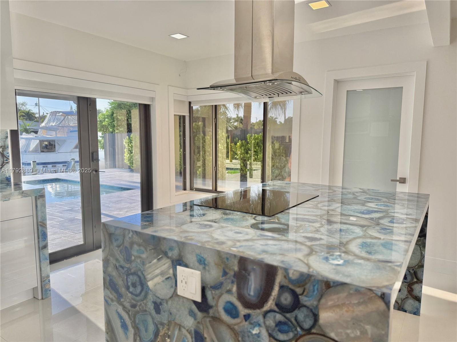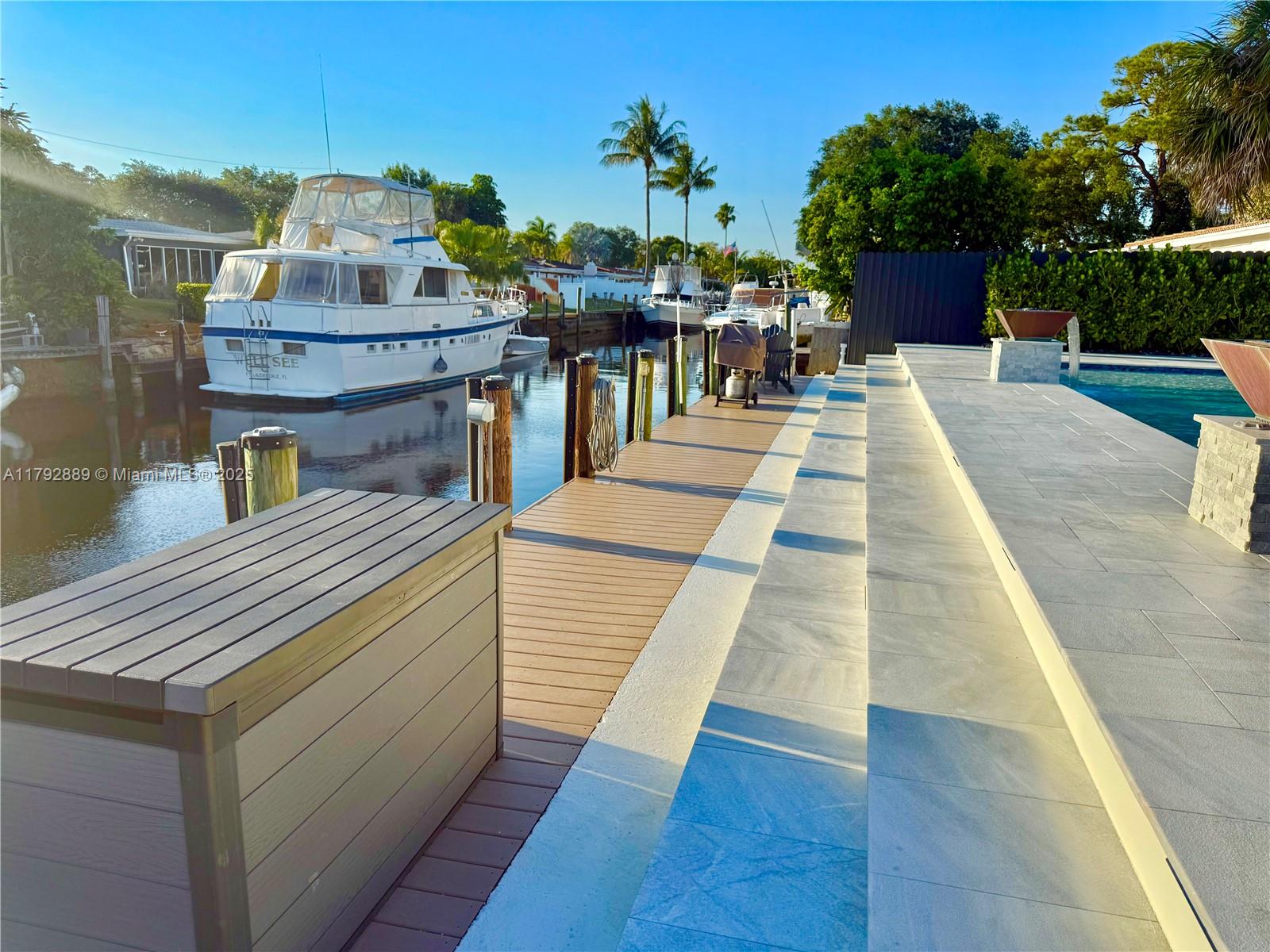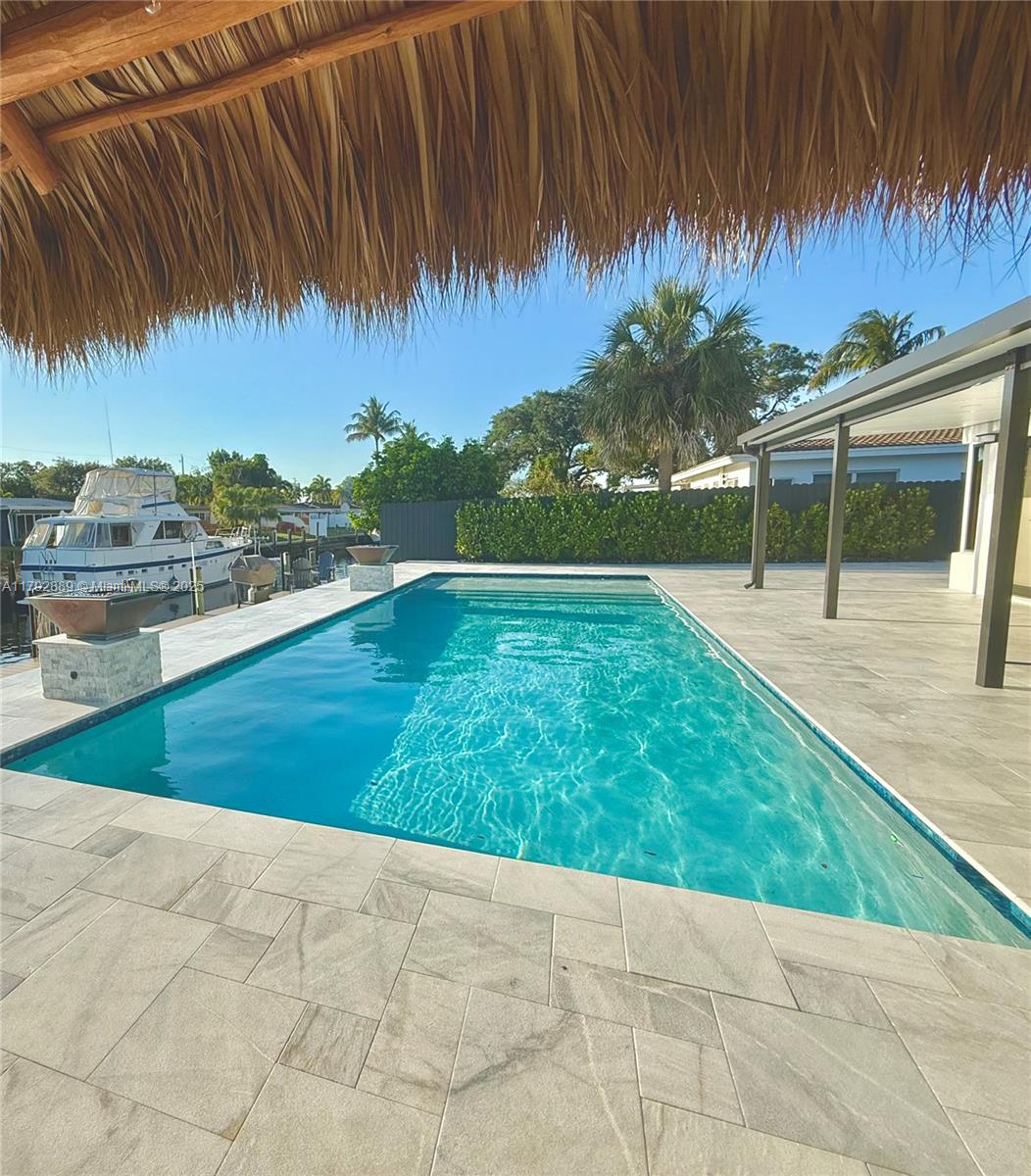 NO FIXED BRIDGES in charming FLAMINGO PARK. This home features 70Ft. of waterfront. All Impact windows and doors, tile roof, big backyard with a big pool. The kitchen is adorned with exquisite semi-precious natural stone countertops, including a rare illuminated blue agate centerpiece, creating a luxurious and sophisticated atmosphere.EQUIPPED WITH DOUBLE WASHERS-perfect for those who value their time and prefer a more streamlined laundry experience. The dock includes water and power for your boat.This is a 3/2, split floor plan design, Electric & plumbing updated. The property is situated on a quiet cul-de-sac,ensuring limited traffic flow and a safer,more private environment for residents.Close to 95 & 595airport10 minaway. DowntownFort Lauderdale, Beaches,Las Olas are ashort drive away.