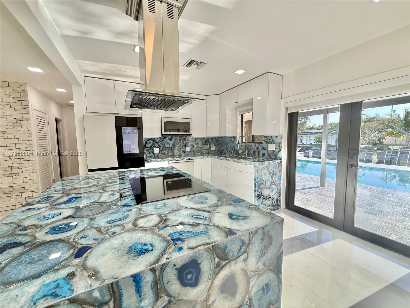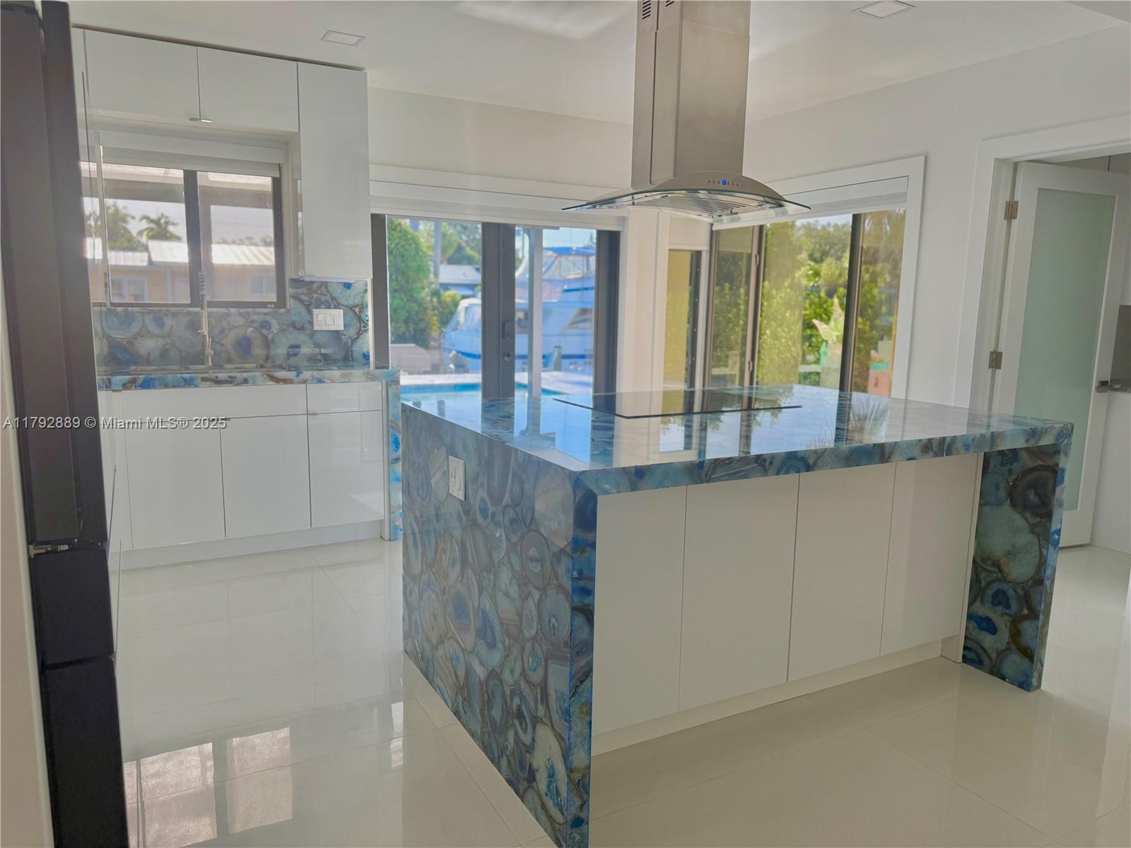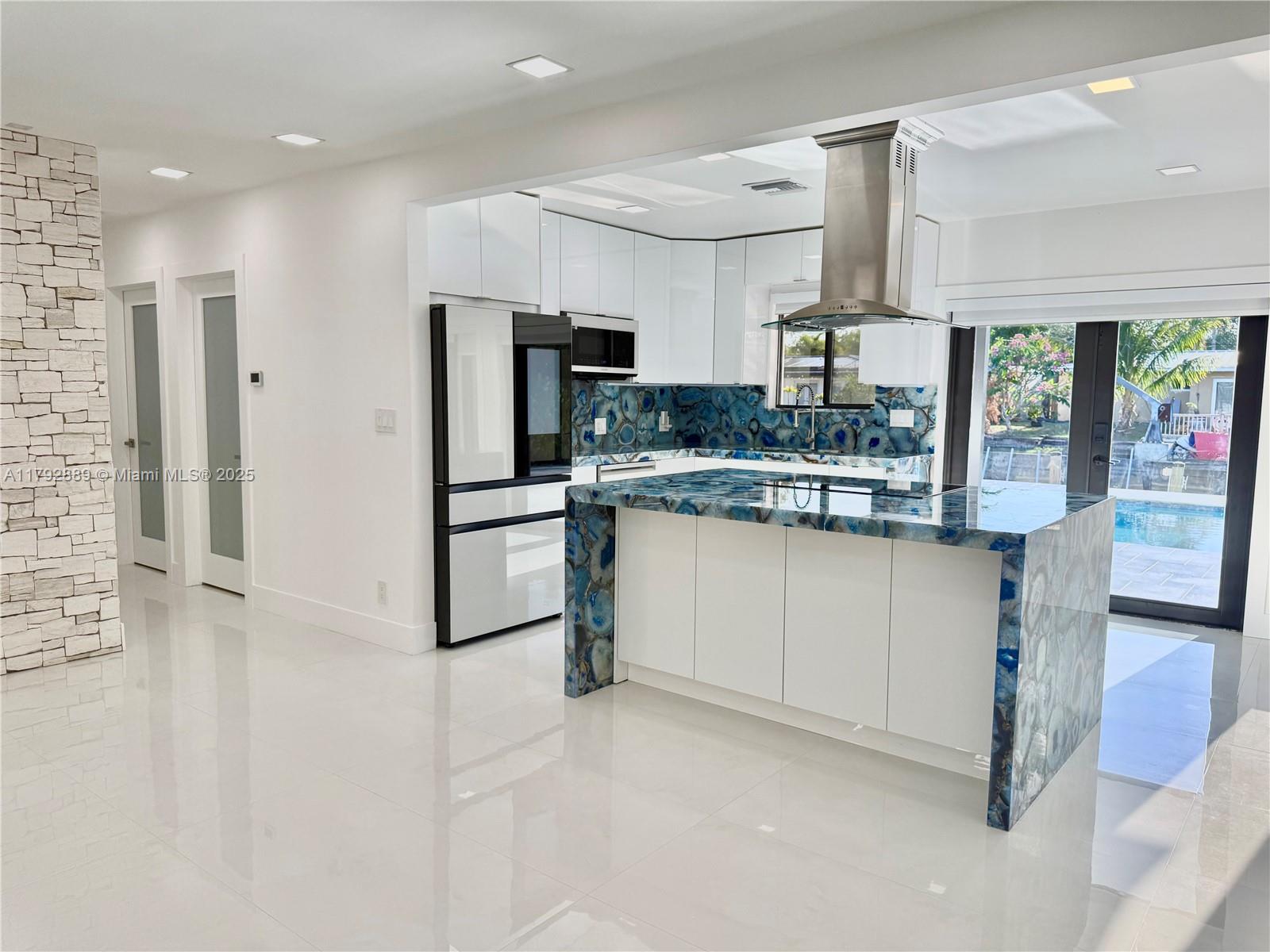 NO FIXED BRIDGES in charming FLAMINGO PARK. This home features 70Ft. of waterfront. All Impact windows and doors, tile roof, big backyard with a big pool. The kitchen is adorned with exquisite semi-precious natural stone countertops, including a rare illuminated blue agate centerpiece, creating a luxurious and sophisticated atmosphere.EQUIPPED WITH DOUBLE WASHERS-perfect for those who value their time and prefer a more streamlined laundry experience. The dock includes water and power for your boat.This is a 3/2, split floor plan design, Electric & plumbing updated. The property is situated on a quiet cul-de-sac,ensuring limited traffic flow and a safer,more private environment for residents.Close to 95 & 595airport10 minaway. DowntownFort Lauderdale, Beaches,Las Olas are ashort drive away.