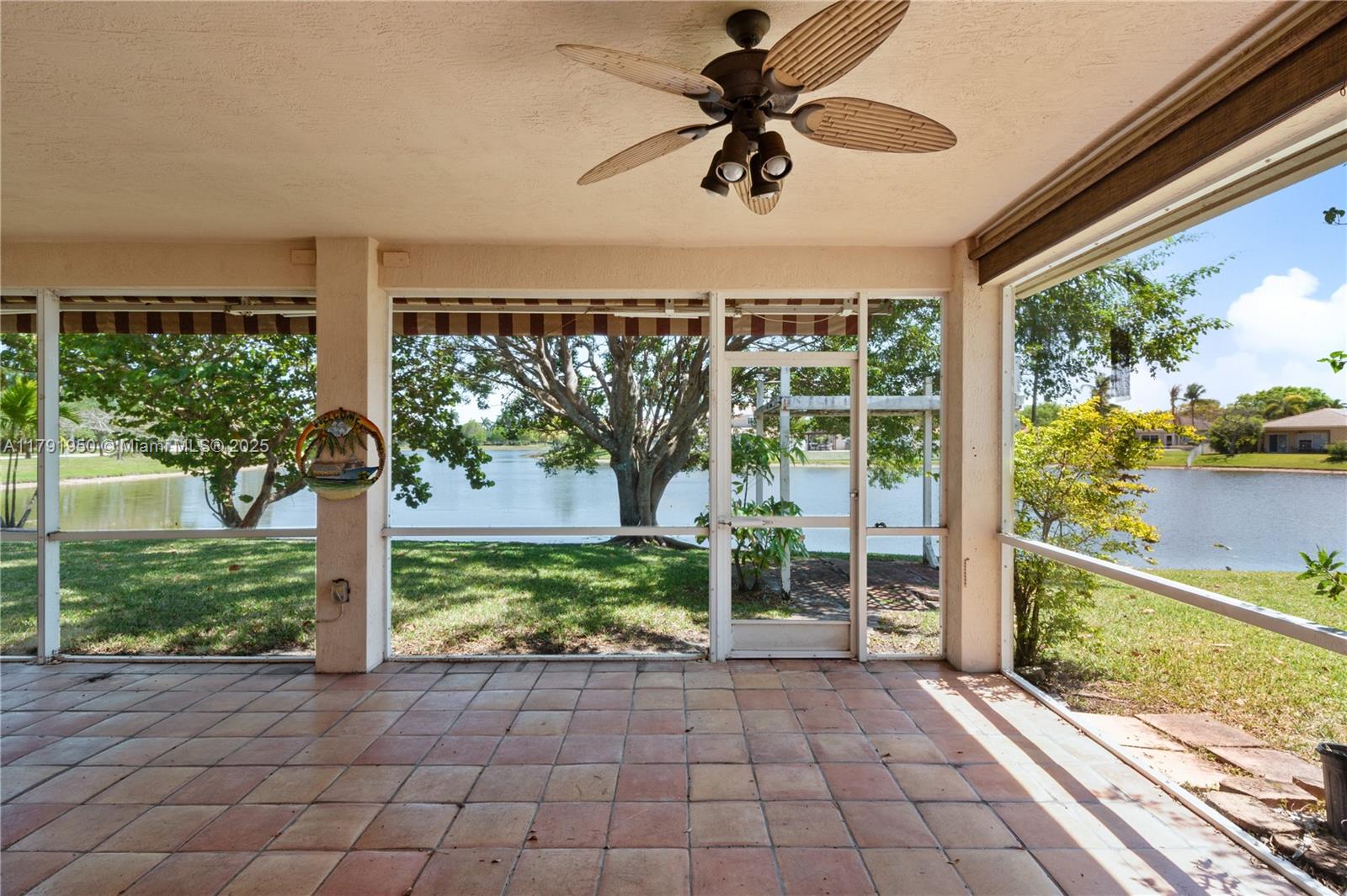 Located in Bimini Bay at Pembroke Falls, this waterfront Carmel model features 3 bedrooms (split floor-plan), 2 1/2 bathrooms, 2 car-garage, formal living & dining rooms, open kitchen overlooking the family room w/ an island & breakfast nook. Additional features include 11ft volume ceilings, tile throughout main living areas, wood flooring in the primary suite w/ plantation shutters, primary bathroom w/ Roman tub, dual sinks, & separate shower, laundry room, and an oversized extended screened patio w/ solid roof overlooking tranquil lake views. Resort-style amenities include clubhouse, pool, 8 tennis courts, basketball courts, & fitness center. Monthly HOA fee covers 24-hr manned guard gates, cable, internet, alarm, and other amenities. Capital contribution of $1,500 to HOA at closing.