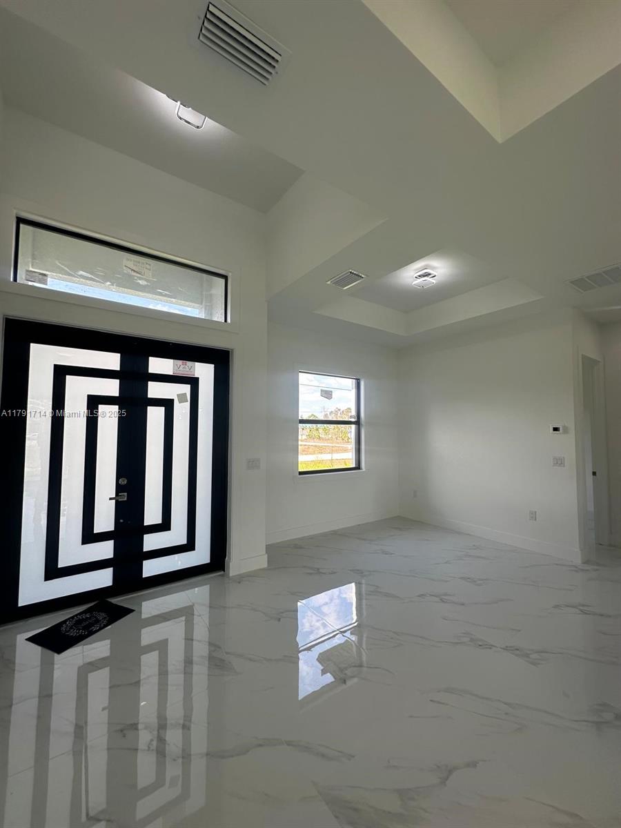 BRAND NEW CONSTRUCTION ON A CANAL LOT New 3 Bedroom/2 Bathroom/Den and 2 Car Garage 1/4 Acre Lot In Lehigh Acres. The kitchen features quartz countertops, soft-close shaker cabinets, and stainless-steel appliances, including a refrigerator, range, dishwasher, and microwave. Designed with convenience and comfort in mind, the home includes impact-resistant doors and windows, ceiling fans in every room, a full size laundry room, master suite boasts dual sinks and a walk-in shower. A two-car attached garage and room for a pool add to the property’s appeal. Also have gutters around all the house and irrigation system. The property is equipped with a surveillance system. Epoxy Coating In The Garage And On The Open Lania. No HOA and CDD