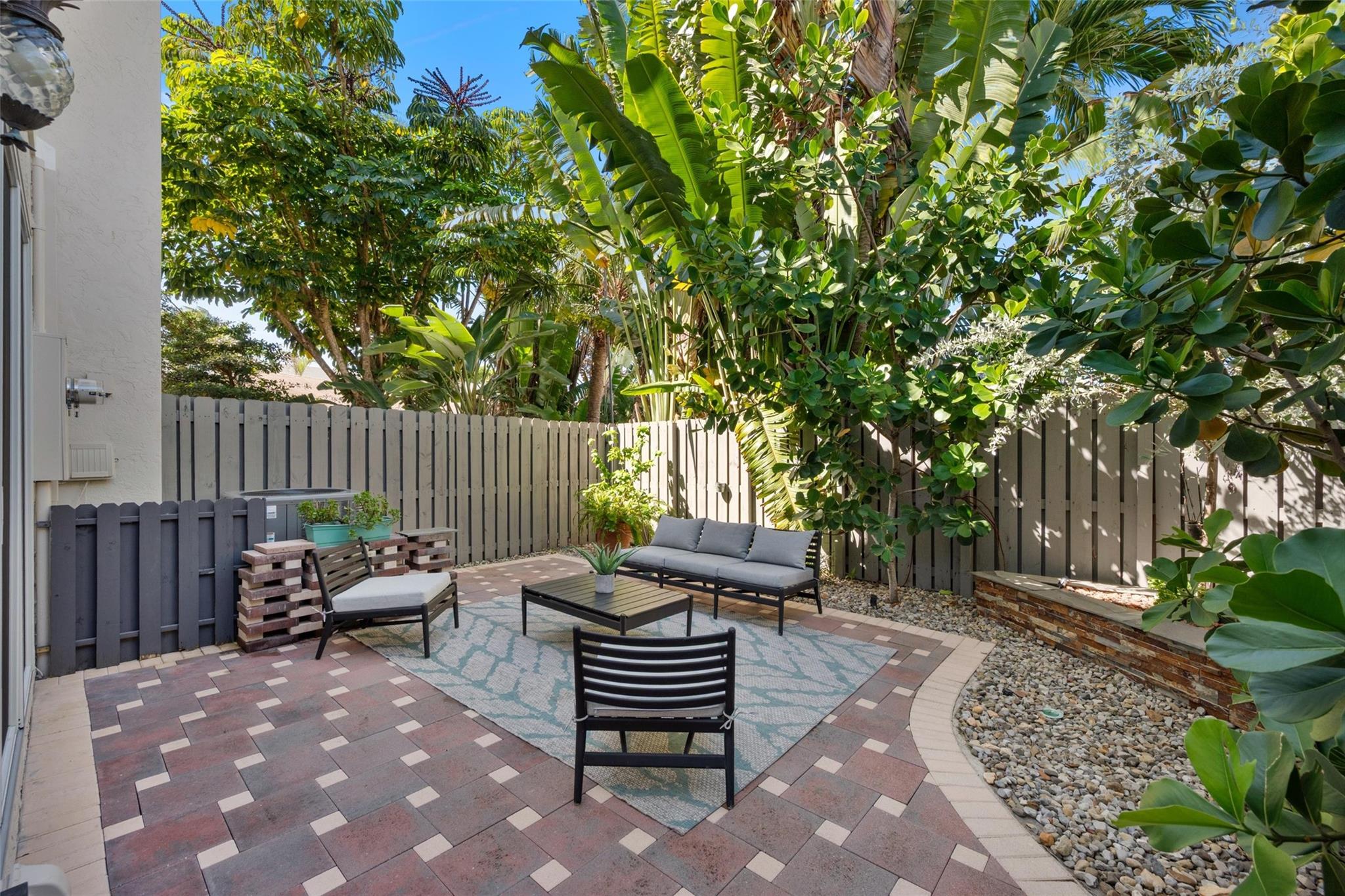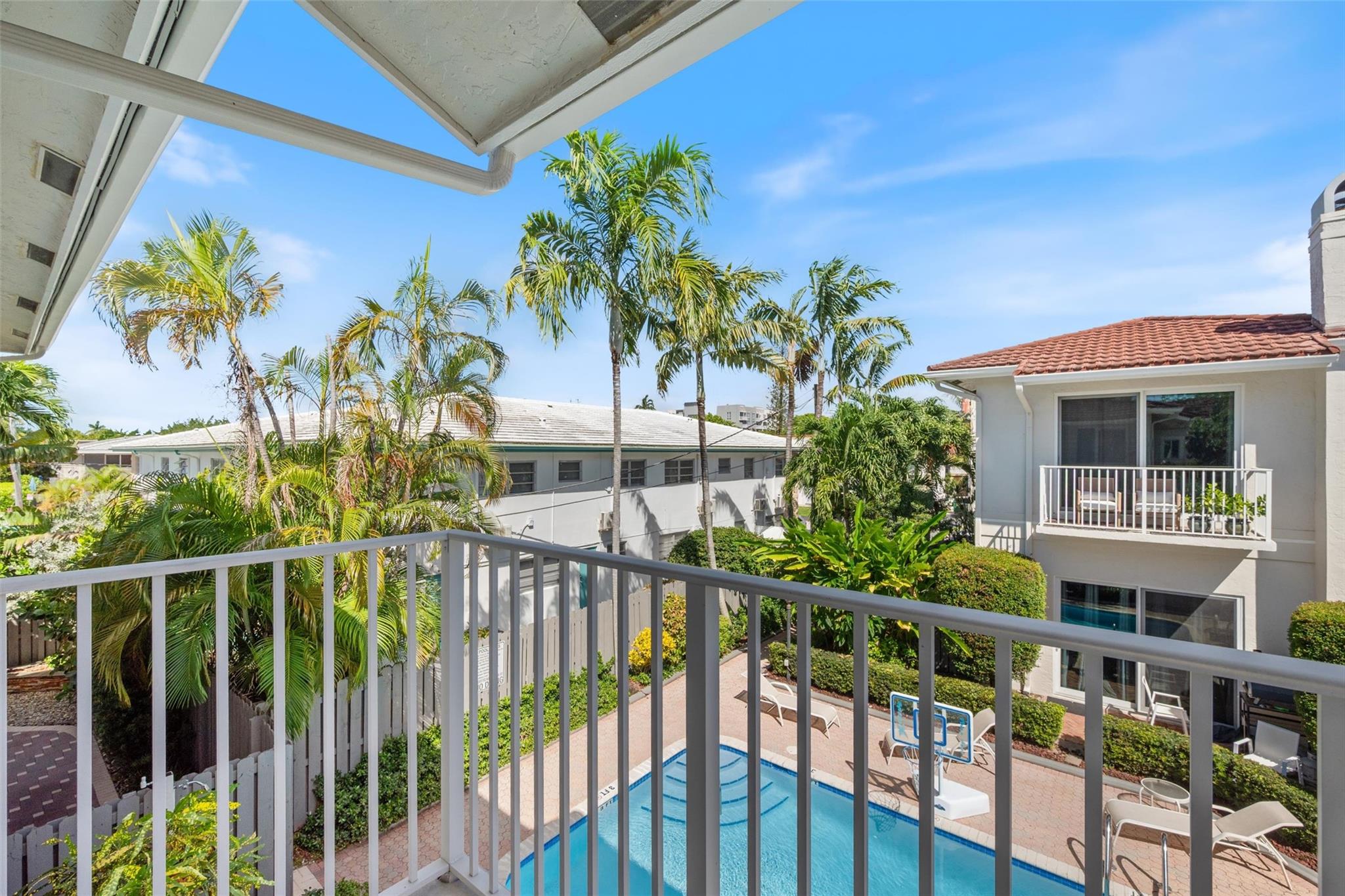 Bright and spacious interior corner townhome in gated Villa Victoria. Enjoy three sun-filled exposures, 10’ ceilings, impact windows and doors (2021), updated interiors, newer AC (2022), and many newer appliances. Private gated courtyard entry opens to foyer, sunny breakfast room, and large living/dining area with fireplace. Tropical, low-maintenance backyard is ideal for entertaining. Upstairs features two large ensuite bedrooms with generous closets; the primary offers a balcony overlooking the pool. Pet friendly and perfectly located near Las Olas, beaches, parks, shopping, and dining! Rare opportunity to own over 1,500 square feet of living space in sought after Victoria Park for under $600k!!
