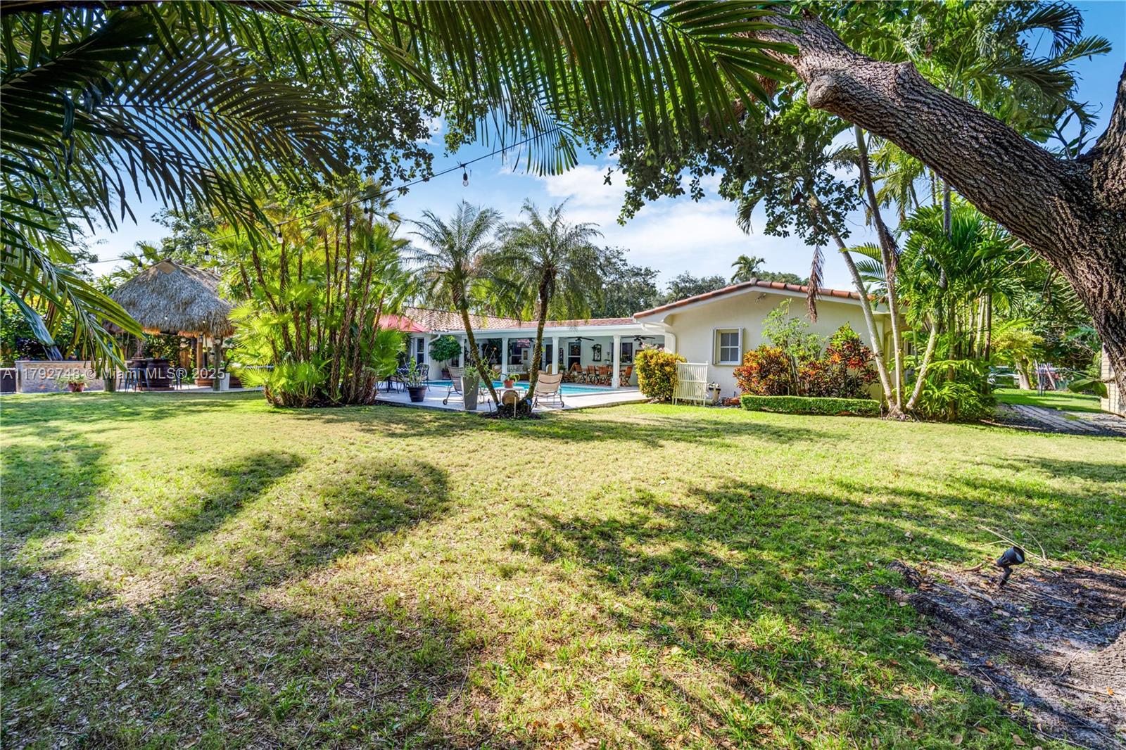 Welcome to your dream home in Pinecrest! This beautifully renovated 5-bed/3-bath residence offers the perfect blend of modern comfort and timeless style. Upon entering, you’re greeted by an expansive family room with serene views of the pool and backyard area. The heart of the home is the stunning kitchen, completely remodeled in 2022 and equipped with Bosch stainless steel appliances, custom shaker wood cabinetry, and sleek quartz countertops. The split-bedroom layout offers a private primary suite and office, plus 3 beds and 2 baths on the opposite side. All PVC! Step outside to your own private oasis featuring a large covered patio, a sparkling pool, and a lush yard. The Chiki hut and fully equipped outdoor BBQ area offer a true resort-style experience, perfect for long summer days.