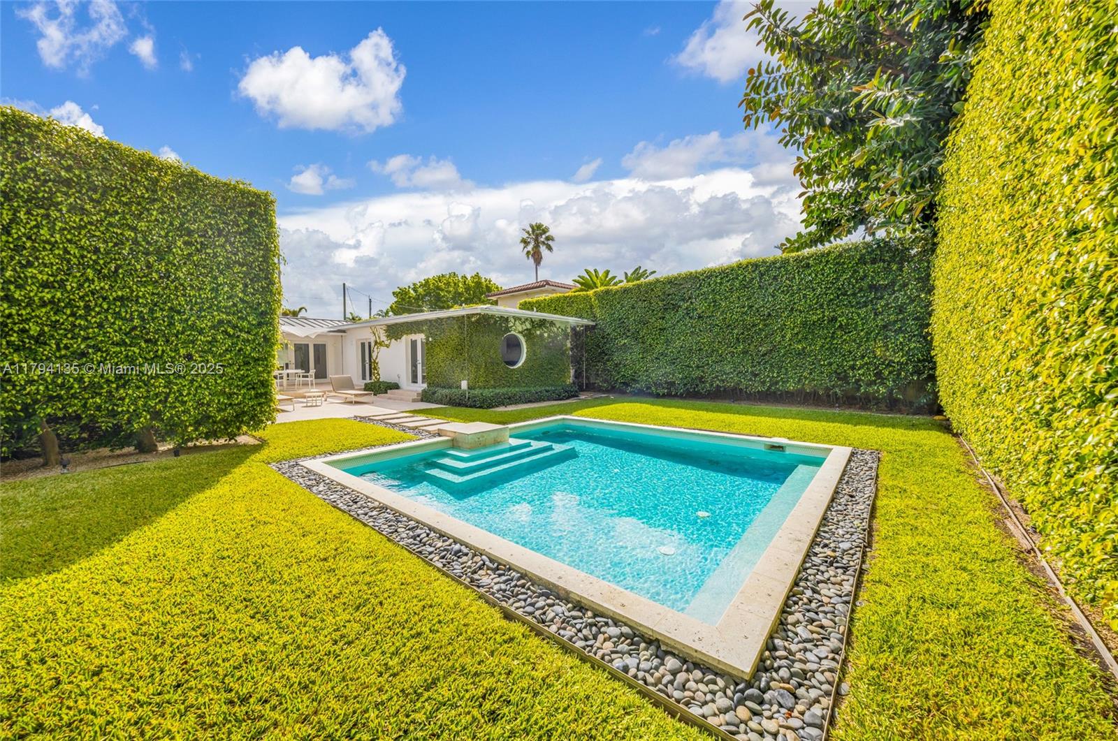 Mid-Century Modern Oasis in the Heart of Miami Beach featuring 2 Bedrooms plus 1 Office space, 2.5 Bathrooms. living area 2,766 SF on 8,629 SF Lot. Gourmet chef’s kitchen with custom minimalist cabinetry, Sub-Zero appliances, wine cooler, and an oversized center island perfect for hosting. Beautifully landscaped, backyard offering complete privacy and an amazing pool your own serene escape for lounging, entertaining, or unwinding. State-of-the-art garage outfitted with built-in workshop cabinetry, ample storage, and a Tesla EV charger a dream setup for car enthusiasts or hobbyists. Gated front entry and manicured grounds that deliver impeccable curb appeal and everyday serenity. Prime central location minutes from beaches, golf courses, dining, and nightlife.