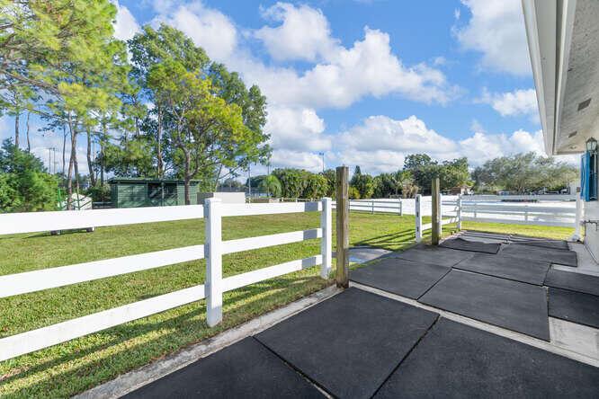 Live Oaks grace this beautiful Saddle Trail equestrian paradise, lending shade and tranquility to this 2+ ac farm located in one of theequestrian world's most sought after neighborhoods. Just a short 10 minute walk/trot hack to the show grounds, the property features a main barn with 412'x12' matted stalls, 2 with walk-outs and all with Nelson automatic waterers; fly system, fans in the 12+' center aisle and stalls; hot & cold water onboth sides of the aisle along with the 2 wash stalls. 12'x24' riders' lounge with full bath; 12'x12' tack room; 12'x12' laundry/utility room; 12'x10' garage;12'x10' hay room all with central AC. There is an additional barn on the property with 2 12'x14' stalls for overflow. You will love riding on the excellent footing
