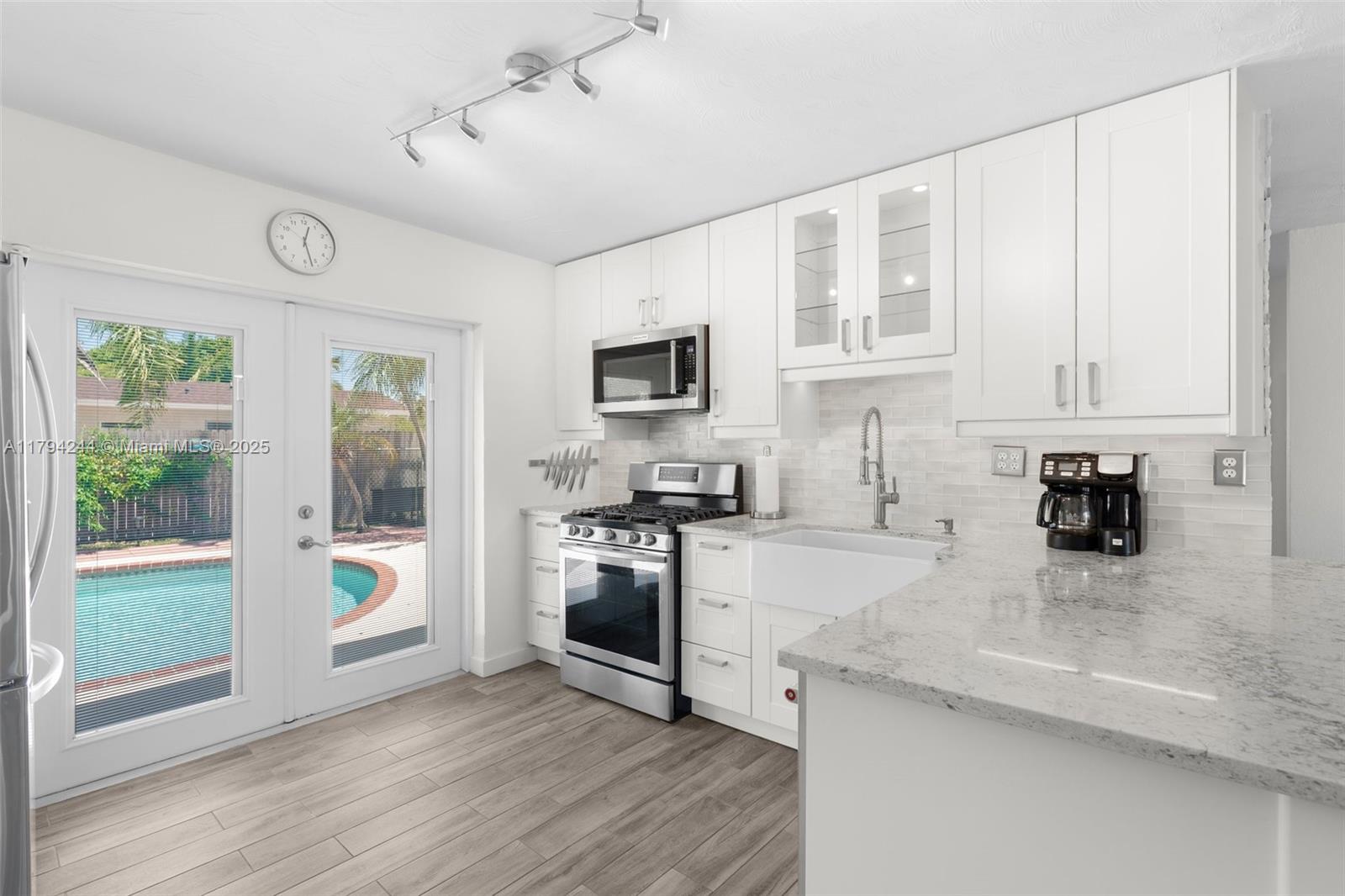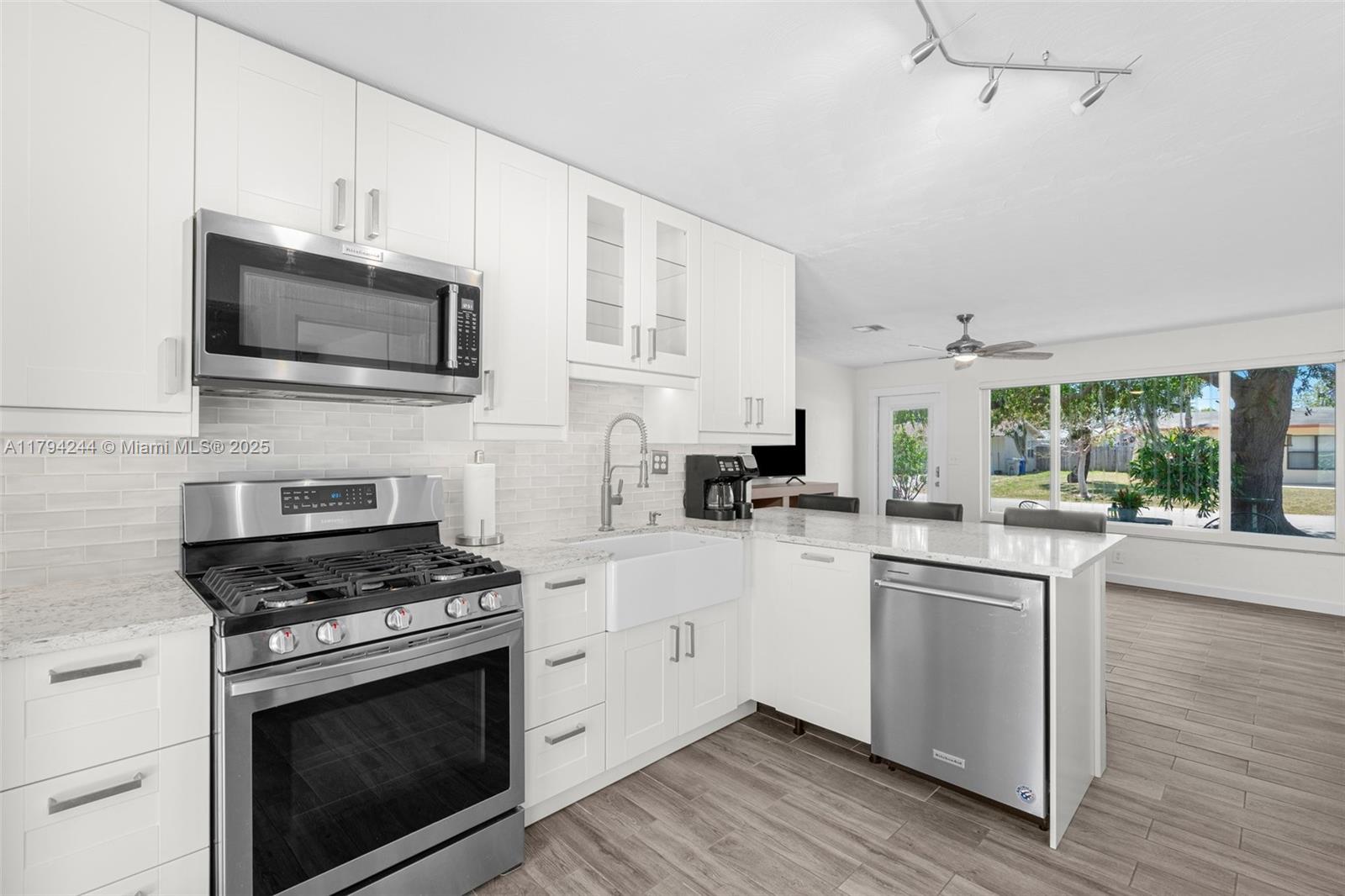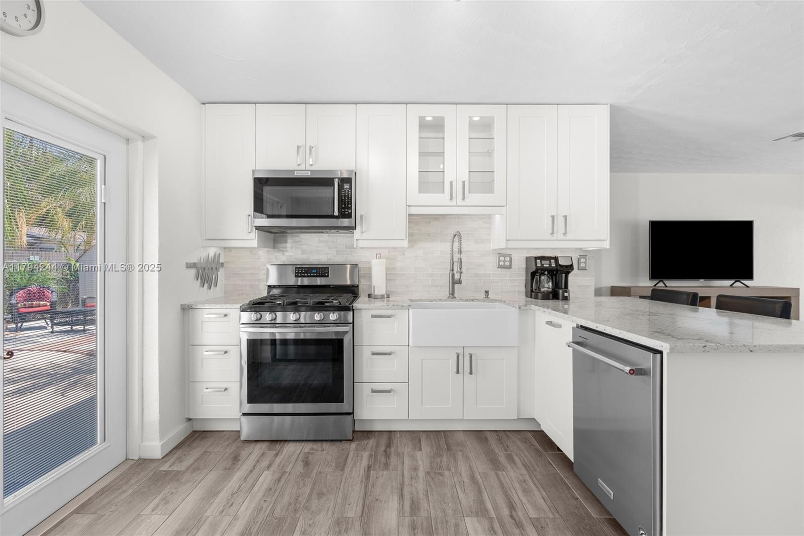 Welcome to this beautifully updated 3/1 single-family pool home featuring a new metal roof, whole-home generator, and tankless water heater for peace of mind and efficiency. Enjoy hurricane impact windows and doors throughout. The modern kitchen boasts white cabinets, quartz countertops, stainless steel appliances with a gas cooktop—perfect for the home chef. Stylish wood-look tile flooring complements the elegant stack stone accent wall. The fully fenced yard offers privacy and plenty of space to entertain. The expansive paver driveway is awaiting your cars, boat and/or RV. Best of all, there’s no HOA, giving you the freedom to live how you choose. This home blends comfort, safety, and style—inside and out. FHA/VA/Conventional financing. Ask me for full list of all PERMITTED upgrades.